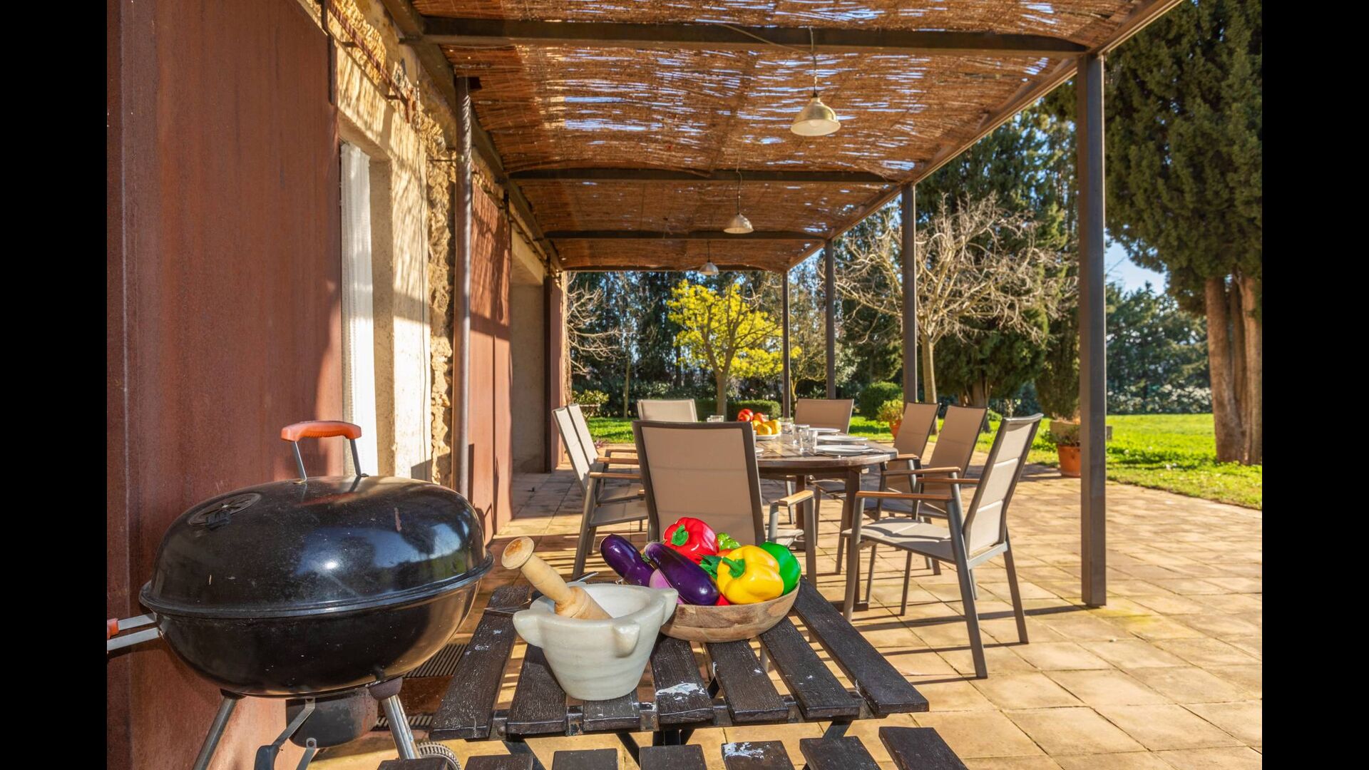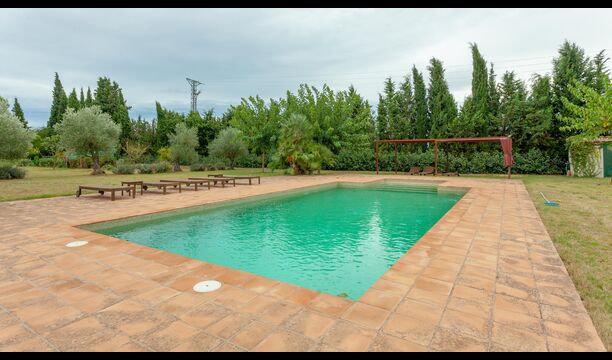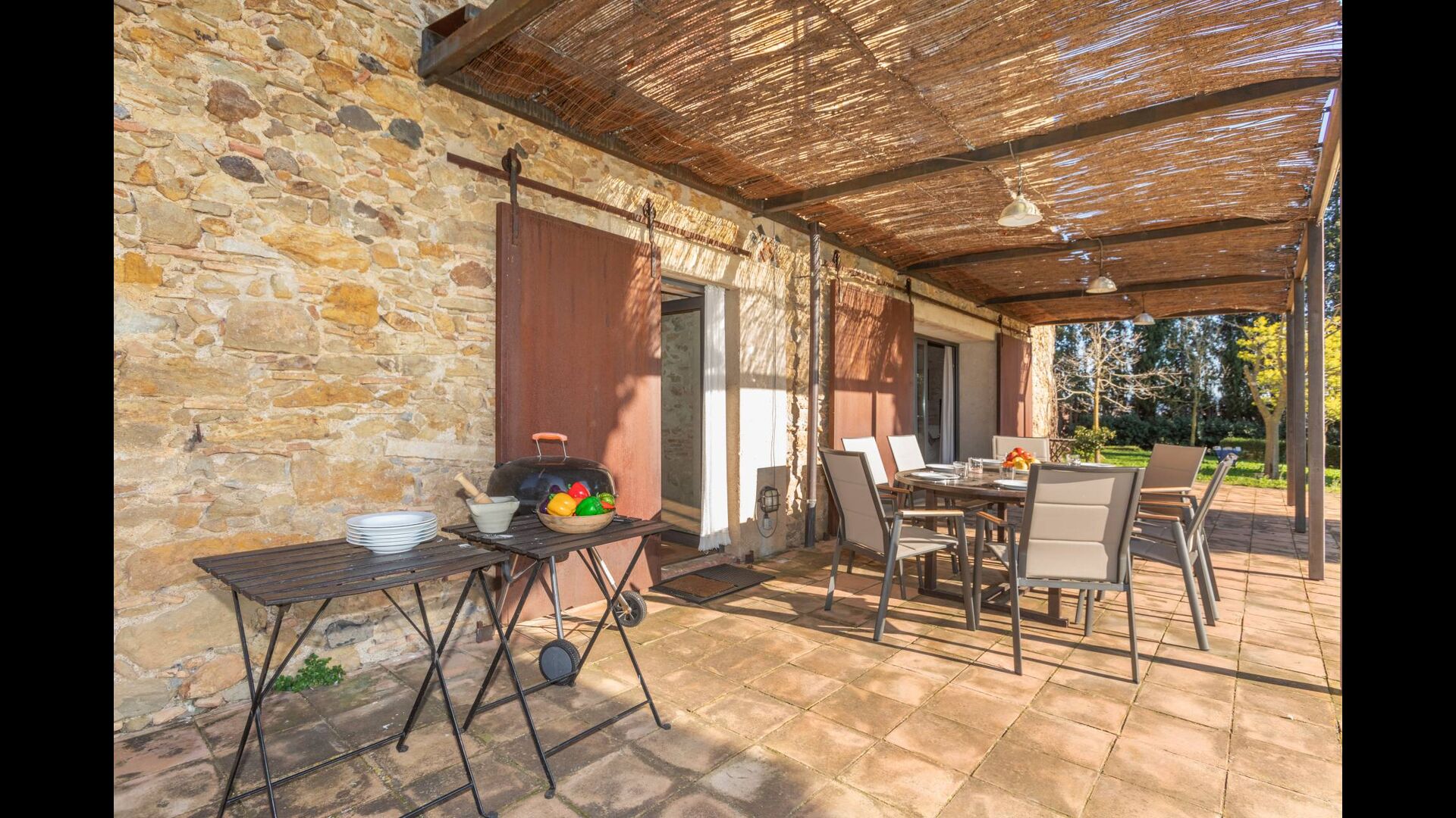 En el exterior destacan la piscina privada y varias terrazas y porches que ofrecen espacios ideales para relajarse, disfrutar de comidas al aire libre y contemplar las vistas abiertas al paisaje del Empordà.