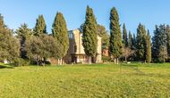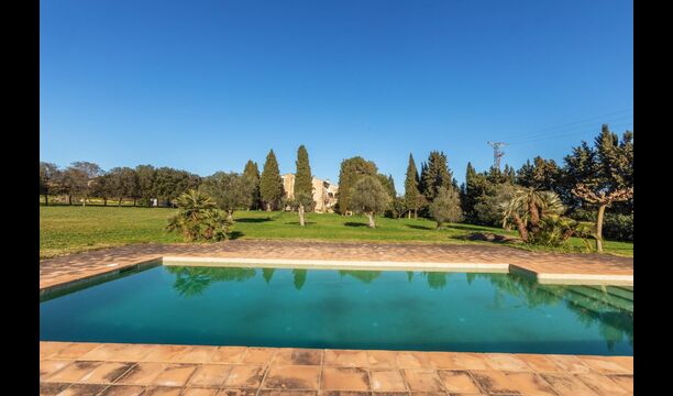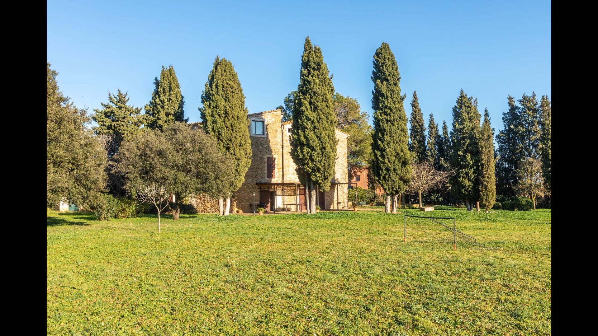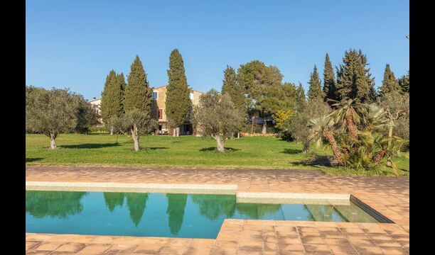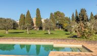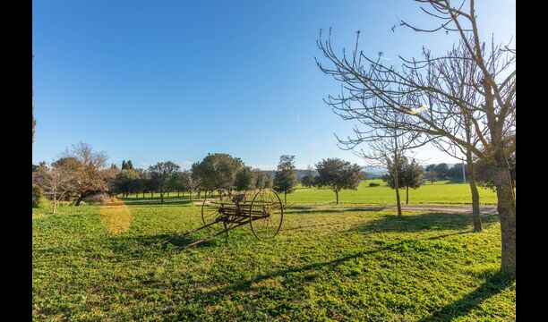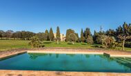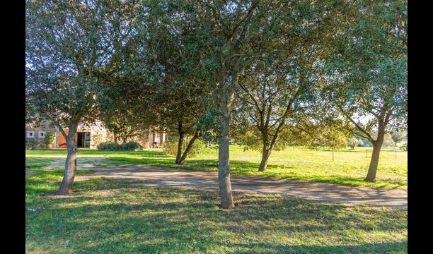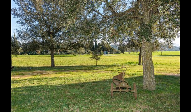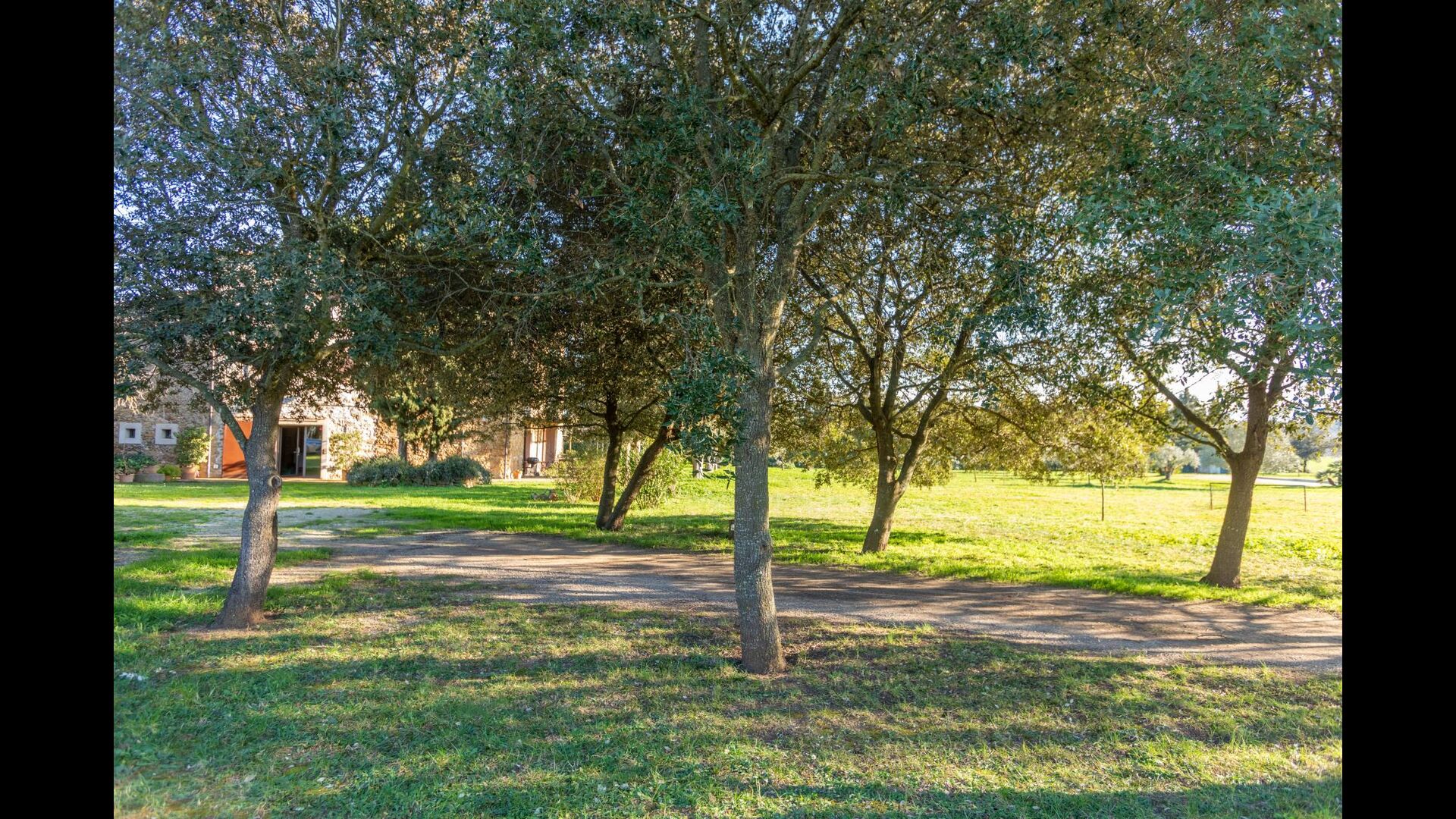 A la propiedad se accede a través de una avenida arbolada que conduce hasta la masía, rodeada por 30.000 m² de terreno privado y jardines.