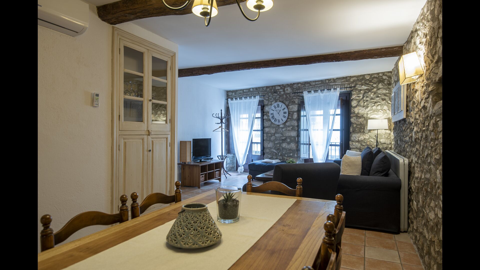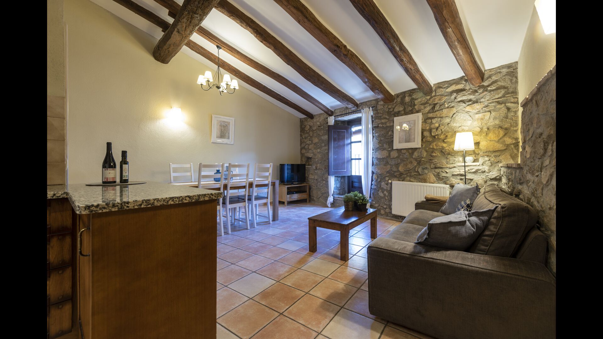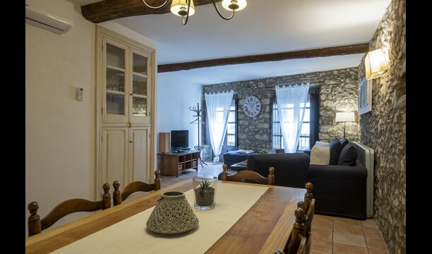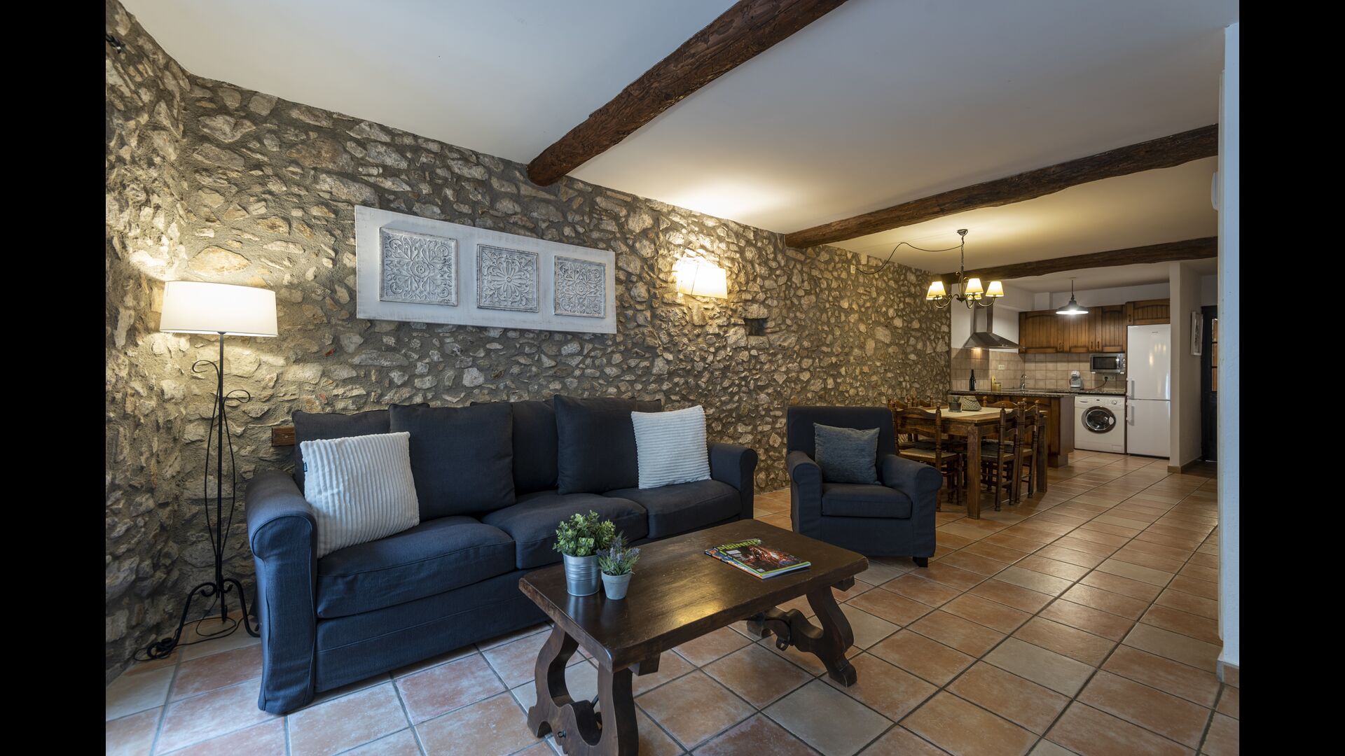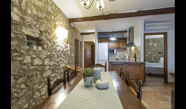 La villa fue cuidadosamente restaurada hace algunos años, conservando todo el encanto y el carácter de la casa original mientras ofrece comodidades modernas. La propiedad está dividida en cuatro apartamentos independientes—Canigo, Salines, Requesens y Albera—cada uno diseñado para ofrecer una experiencia rural auténtica y acogedora. Los cuatro apartamentos están totalmente equipados para la autosuficiencia.
