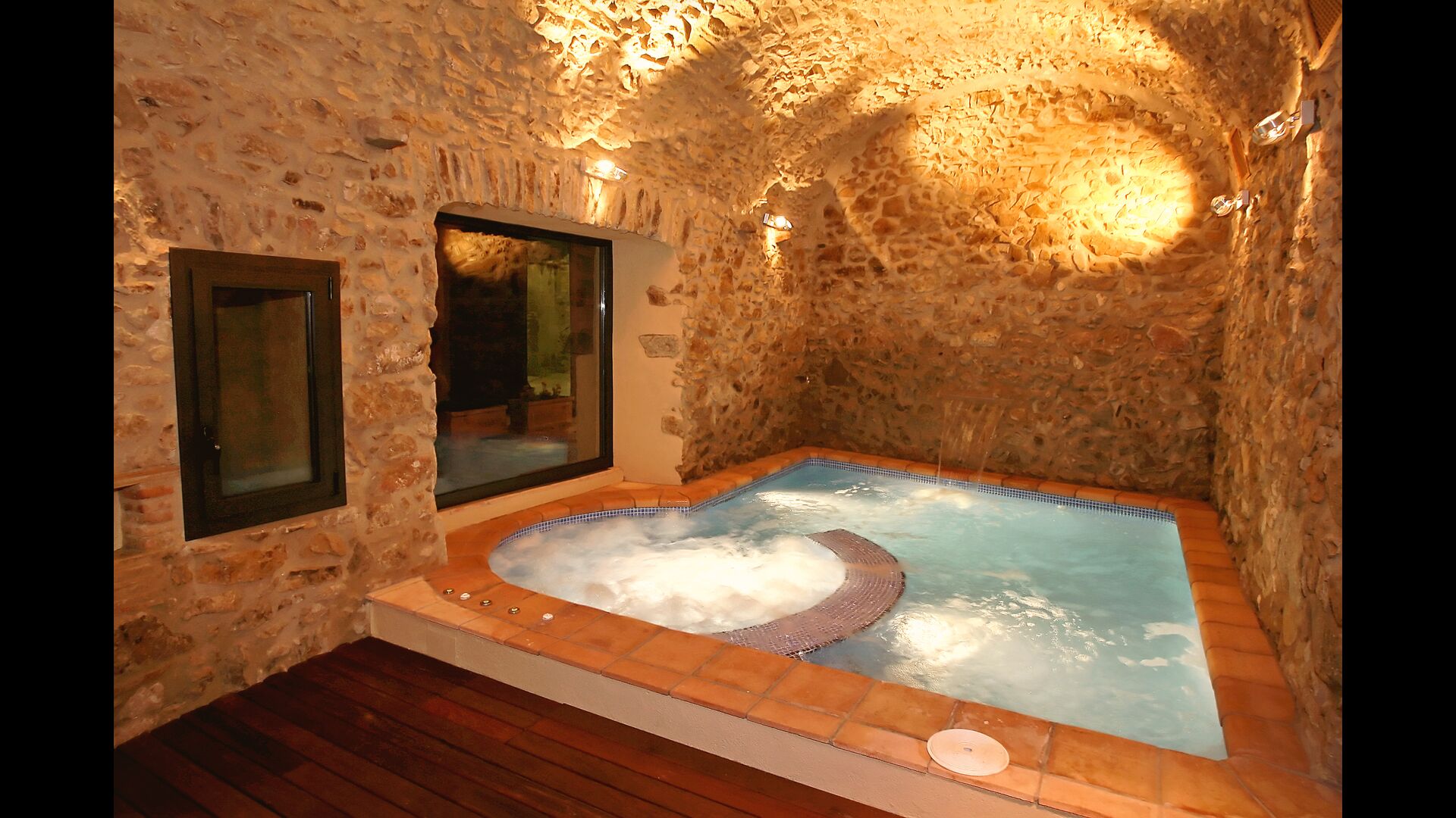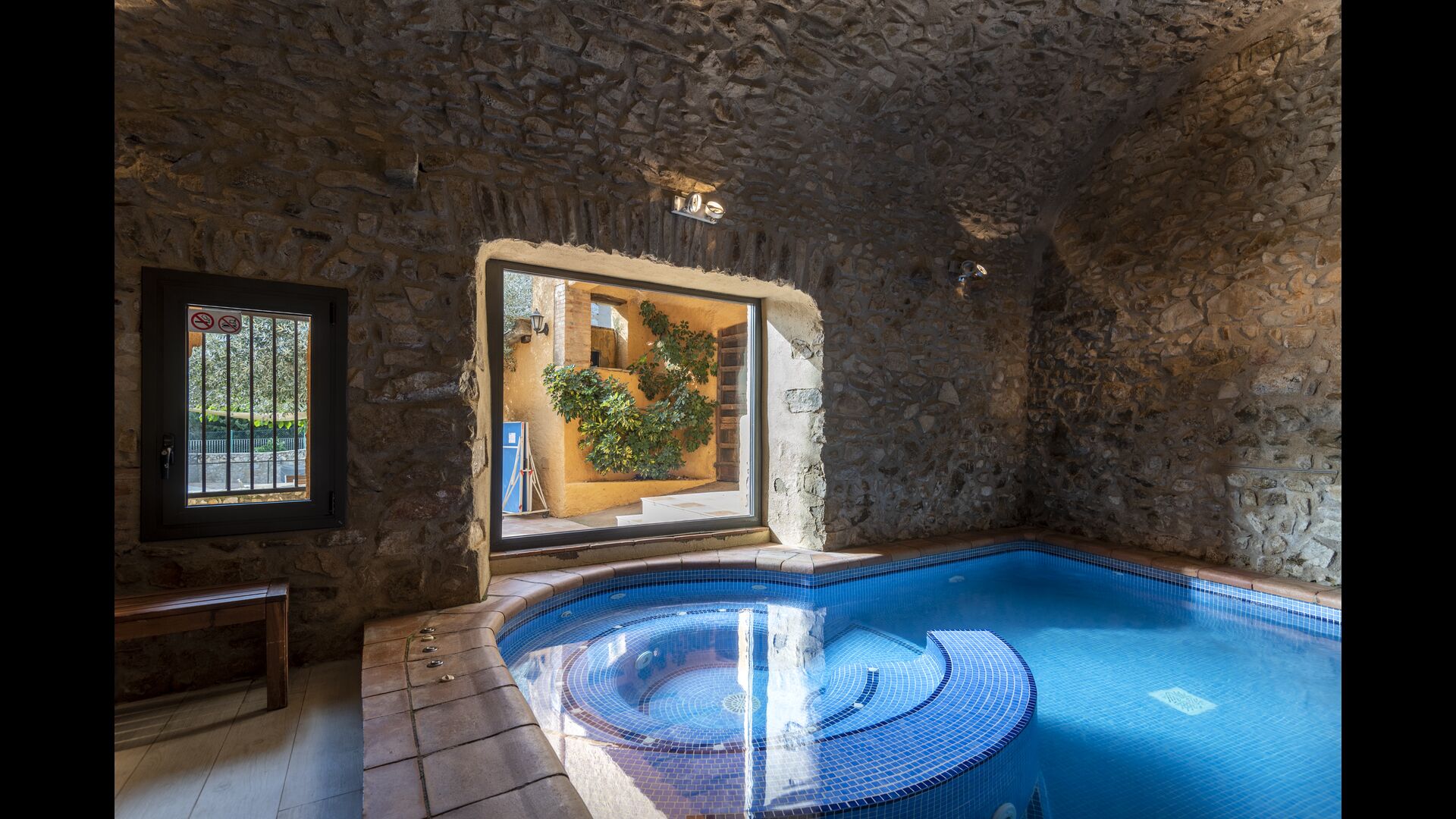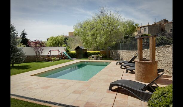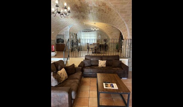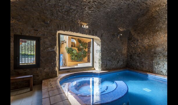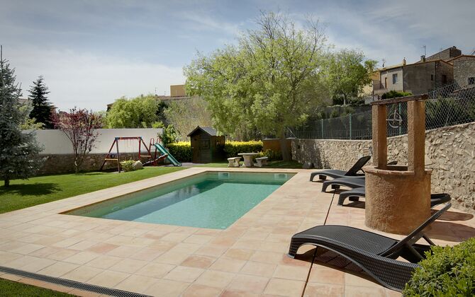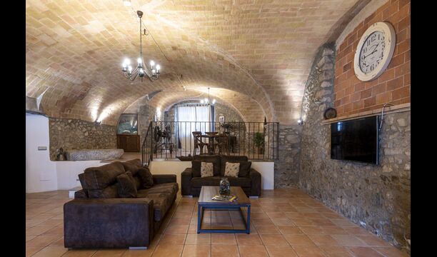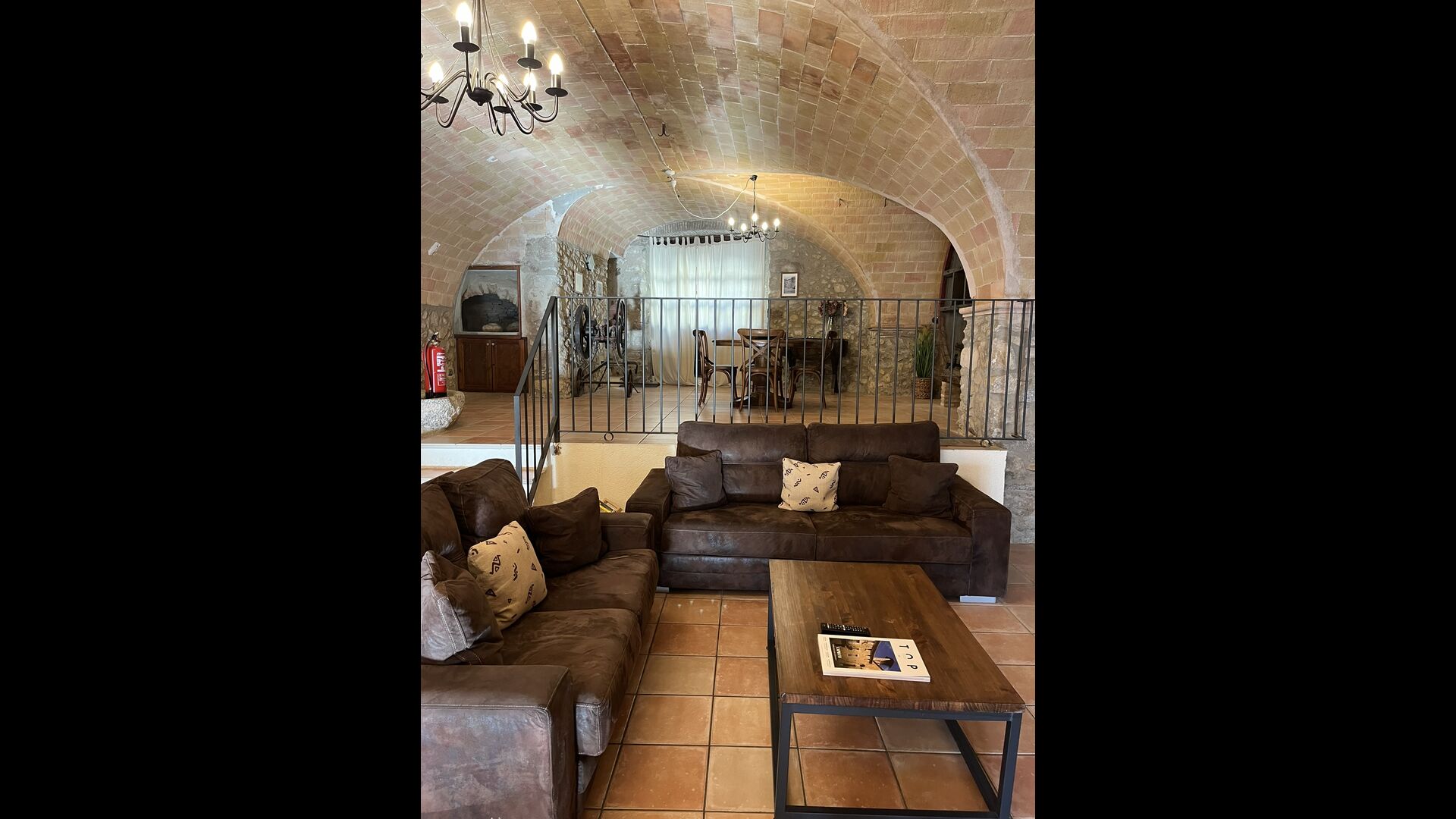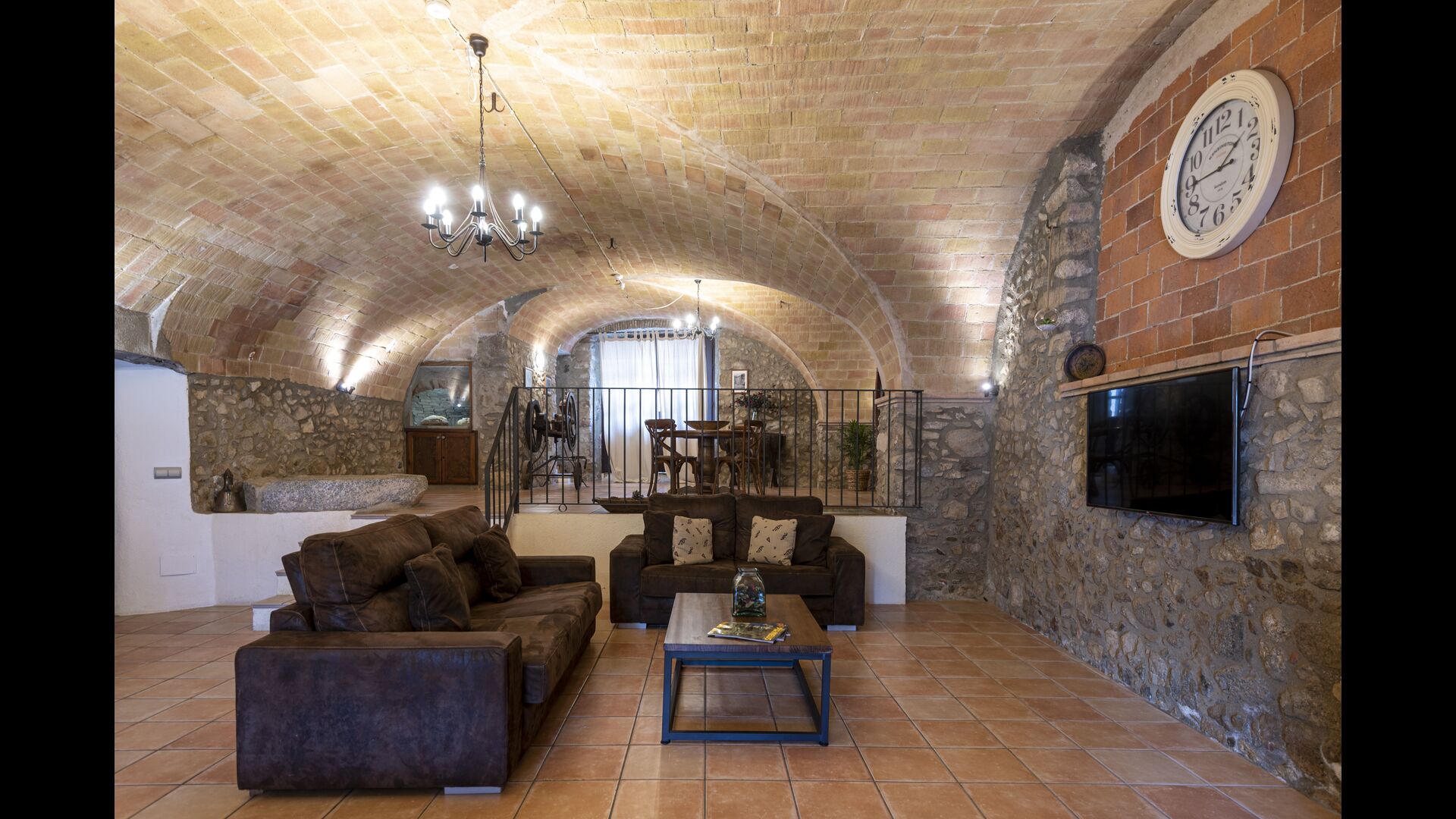 En la planta baja, puedes disfrutar de amplias áreas comunes con techos abovedados catalanes y paredes de piedra. Las comodidades incluyen una gran sala de estar con zona de TV, sistema de sonido estéreo y mesa de billar. En la parte trasera, hay acceso a un jardín vallado con zona de barbacoa, una piscina exterior de agua salada, una mesa de ping-pong y una zona de juegos para niños. Además, hay una piscina climatizada cubierta con jacuzzi disponible para relajarse.