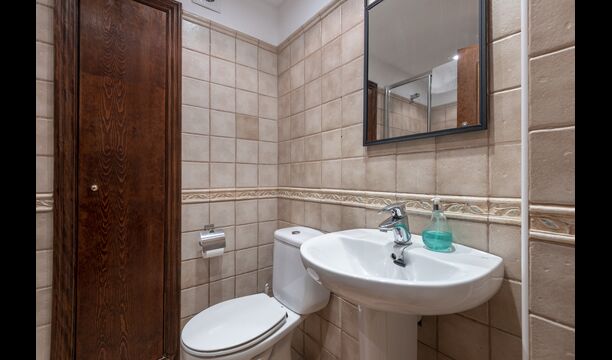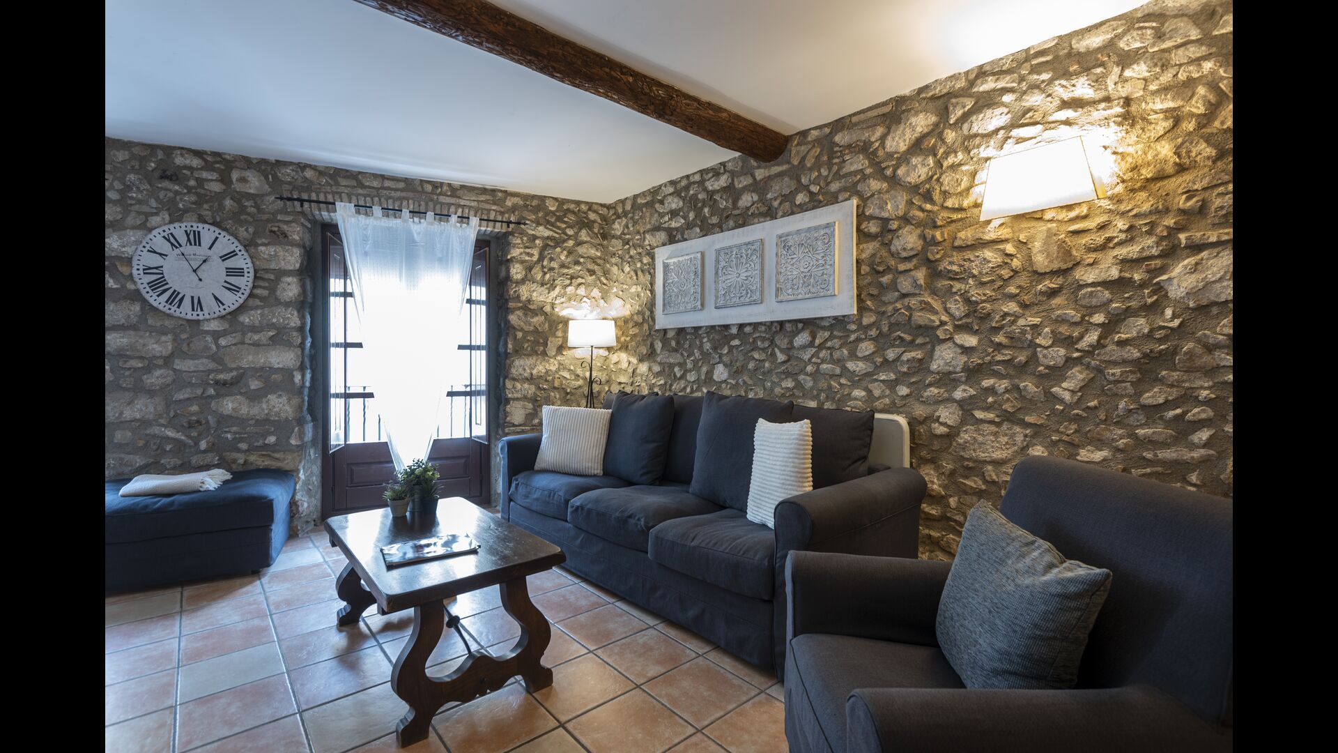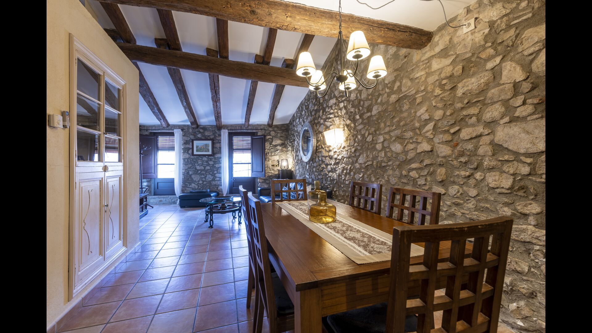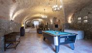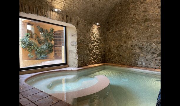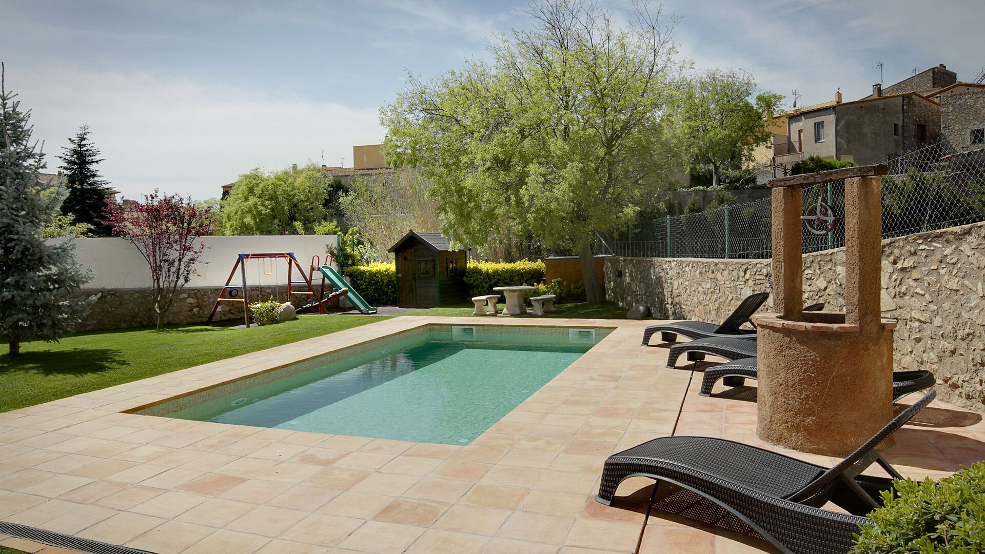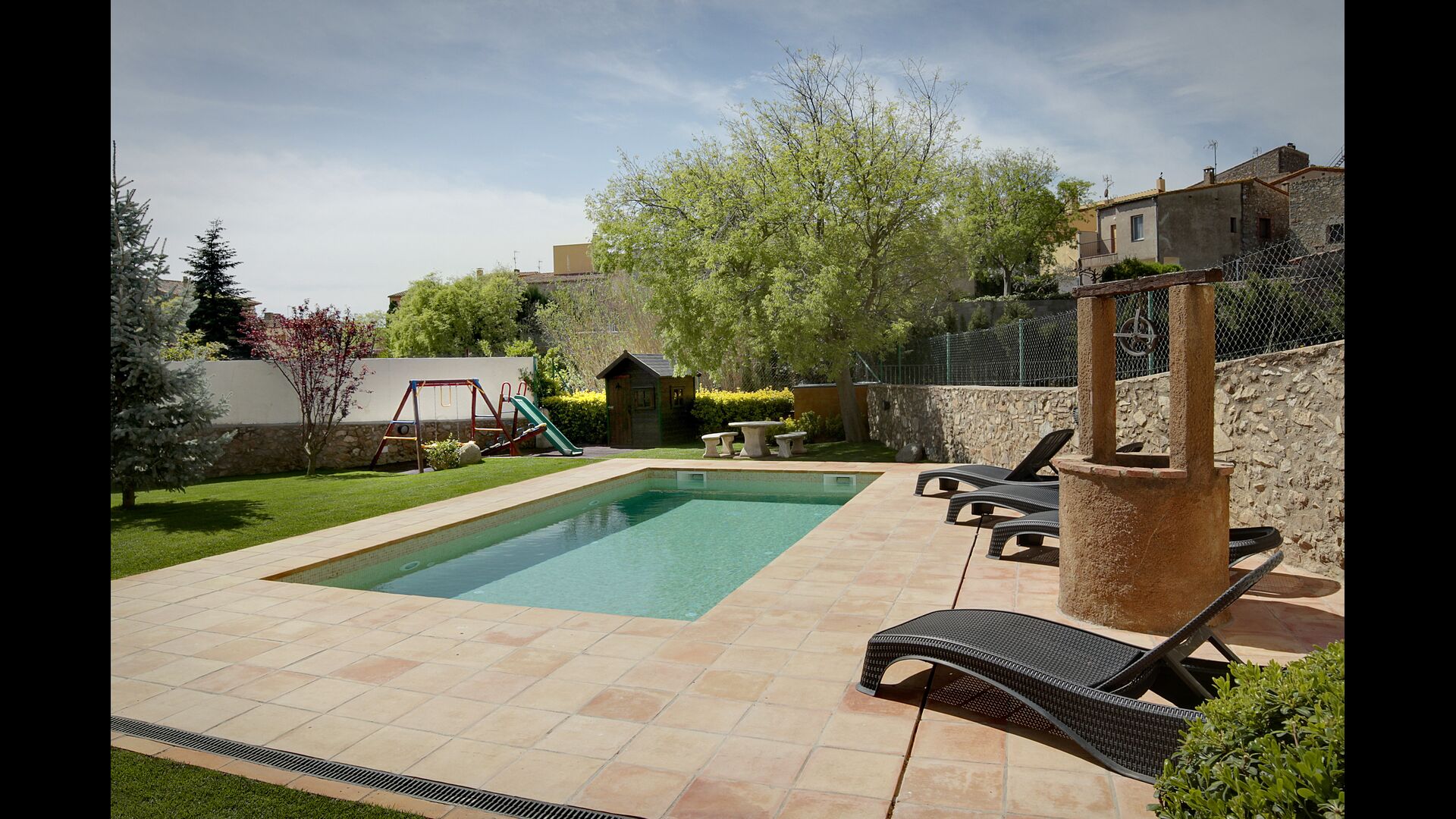En la planta baja, puedes disfrutar de amplias áreas comunes con techos abovedados catalanes y paredes de piedra. Las comodidades incluyen una gran sala de estar con zona de TV, sistema de sonido estéreo y mesa de billar. En la parte trasera, hay acceso a un jardín vallado con zona de barbacoa, una piscina exterior de agua salada, una mesa de ping-pong y una zona de juegos para niños. Además, hay una piscina climatizada cubierta con jacuzzi disponible para relajarse.