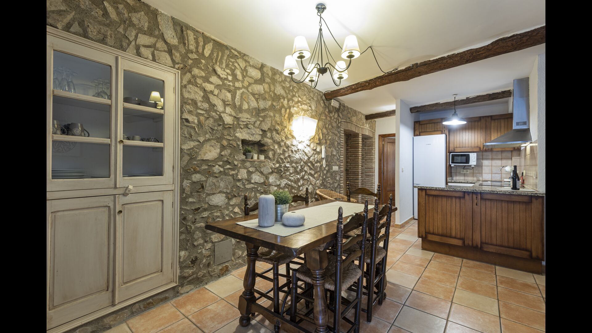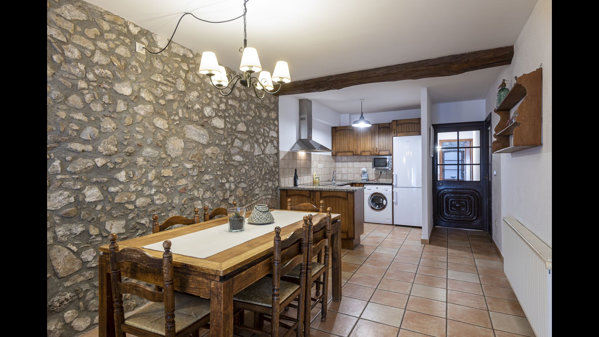 Cuando se alquila toda la casa, el propietario proporciona dos mesas plegables que se pueden usar como extensión de una de las mesas del comedor para que todo el grupo pueda comer junto.