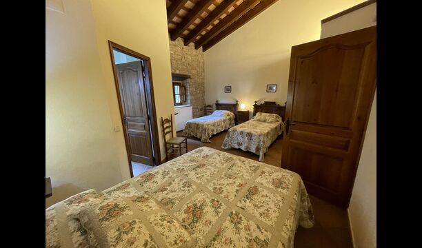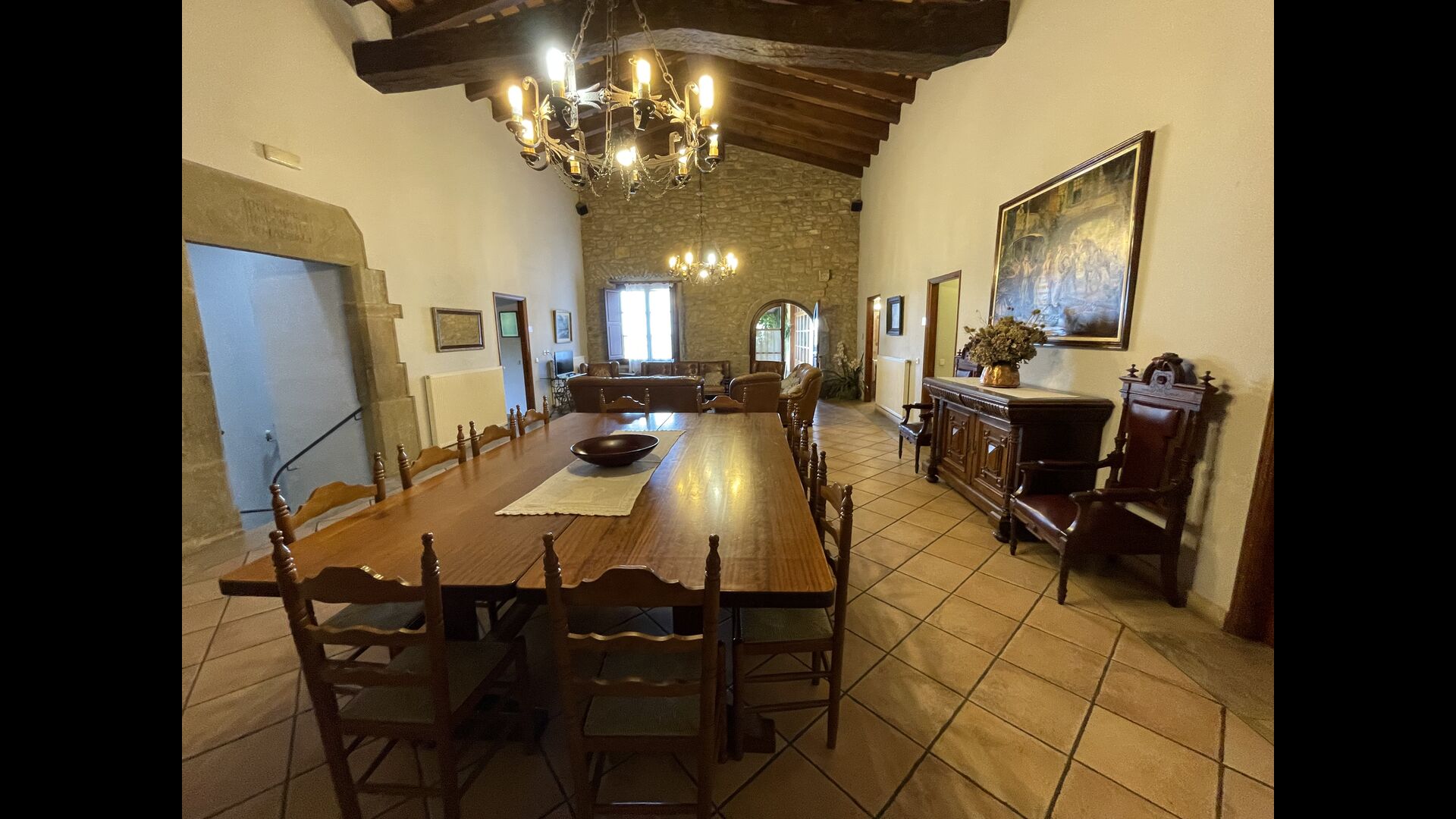 Masia Tapire consta de tres apartamentos separados: "Exida" con 5 habitaciones, "Truit" y "Mirador", ambos con tres habitaciones. Cada apartamento tiene su propio comedor, cocina y sala de estar. Hay techos altos en Masia Tapir, lo que te hace sentir que estás en un antiguo castillo o mansión. Los grandes y hermosos comedores y salas de estar, todos amueblados con un buen respeto por el estilo tradicional catalán, enfatizan la hermosa sensación. Masia Tapir tiene no menos de 12 habitaciones y tiene capacidad para 25 personas +6. Hay 12 baños, nueve de los cuales tienen baño privado. Las habitaciones están decoradas en un hermoso estilo tradicional catalán y los baños son grandes.