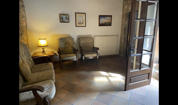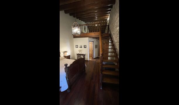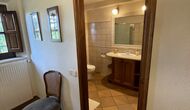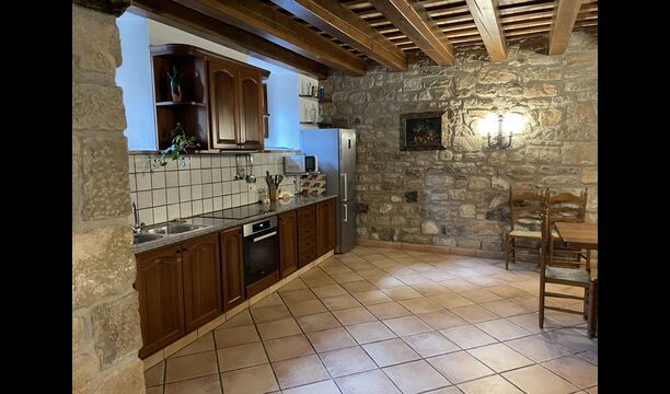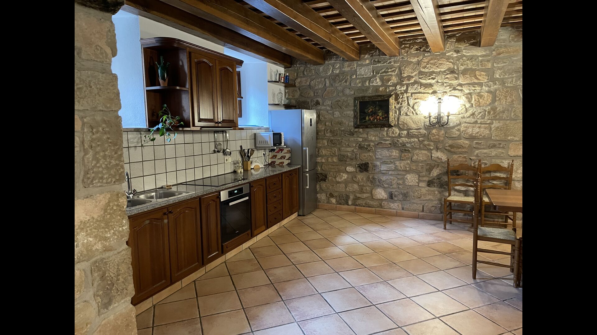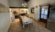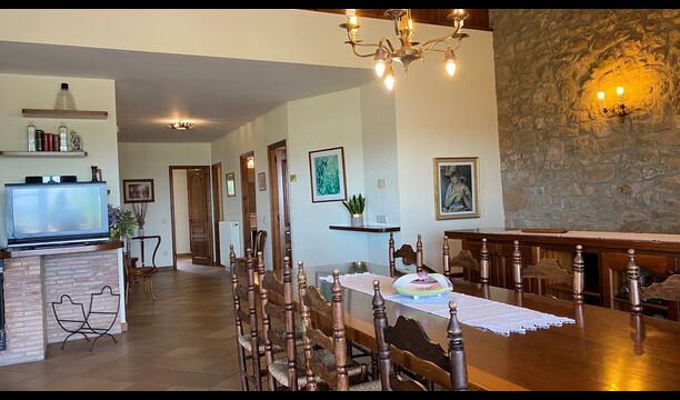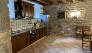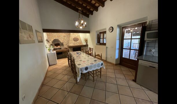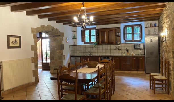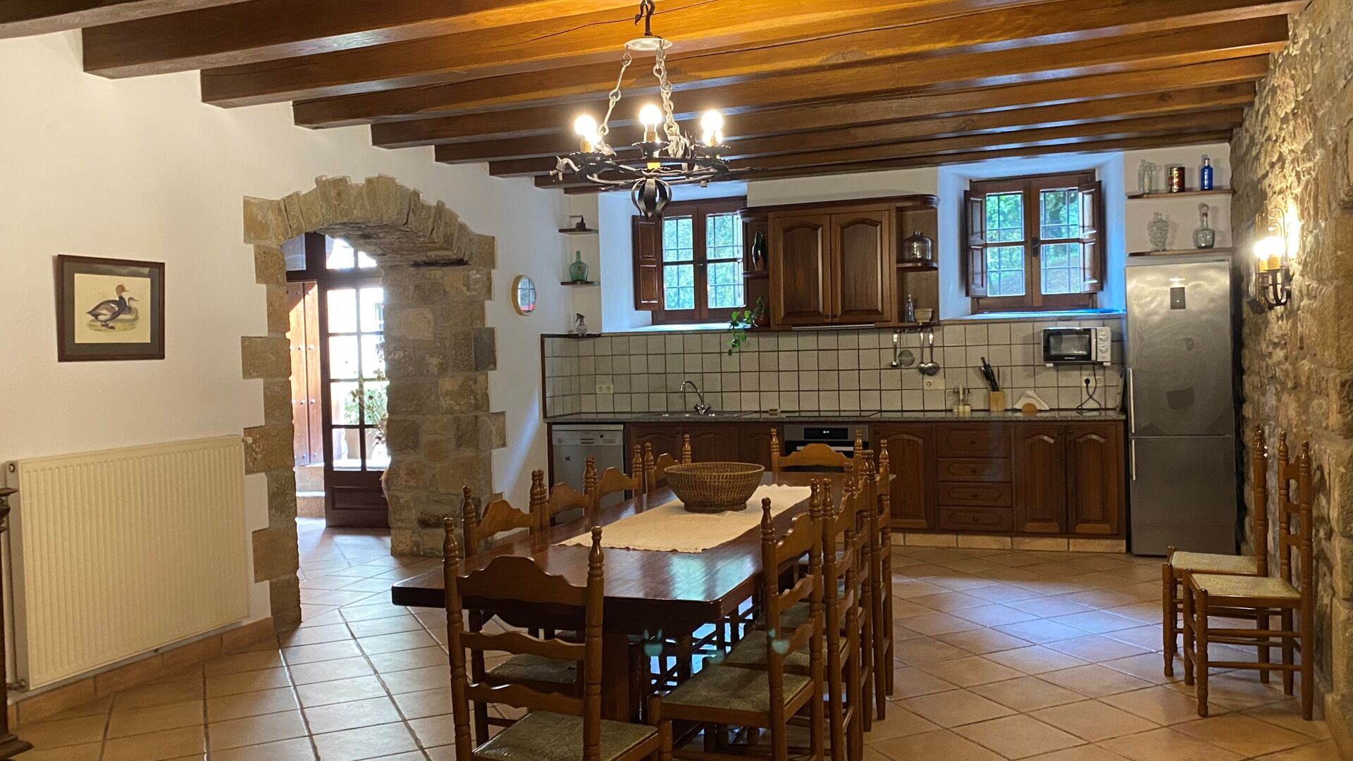 Desde el otro lado de la casa, también en el primer piso, ingresa a la unidad "Exida". La primera sala es una gran sala común con una mesa de comedor doble, un baño. Hay una zona de comedor y otra cocina totalmente equipada con lavavajillas, horno, fogones, microondas, etc. Como decoración, el viejo horno construido en la pared para hacer pan se ha conservado.