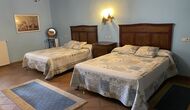 Por otro lado, en el mismo nivel, se encuentran las habitaciones. Hay una habitación doble con cama doble y baño privado y dos habitaciones enormes con dos camas dobles en cada una, y también con baño privado.