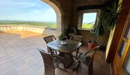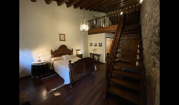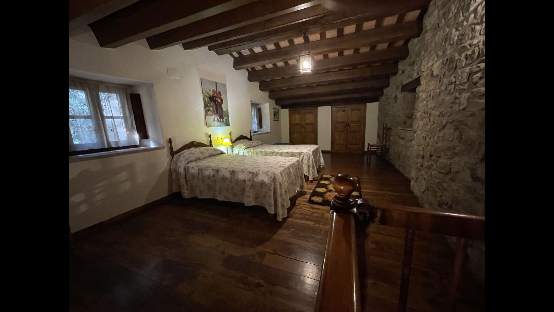 Al subir las escaleras hasta el primer piso, ingresa a la unidad "Mirador". Este apartamento tiene una gran terraza con una vista maravillosa sobre el paisaje. Es el lugar obvio para reunirse, cuando eres un grupo grande. Además, la sala común en el interior es enorme y con techos altos. Hay una mesa de comedor, un rincón de sofá con TV y acceso a la cocina separada con otra zona de comedor y lavavajillas, horno, placas eléctricas, microondas, etc. Hay acceso a 3 habitaciones, una habitación doble, una habitación doble y una habitación individual. . Hay un baño con ducha.