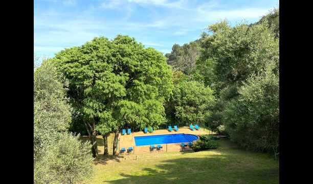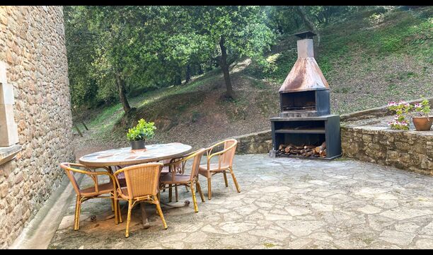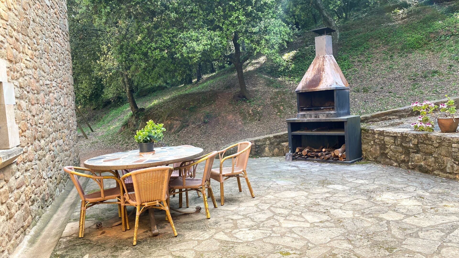 El área de la piscina está situada en un entorno verde fantástico debajo de la casa. Está casi situado en un campo de olivos. Está bien equipado con muchas tumbonas y una terraza cubierta. También los naranjos y mandarines se suman a la sensación de estar solo en la naturaleza catalana. Para los niños, el jardín tiene una pequeña pista de fútbol con porterías de fútbol. La casa tiene tres grandes terrazas con asientos y tumbonas. Hay varias zonas de barbacoa.