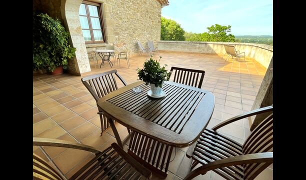 Al llegar al gran patio de Masia Tapirs, con vistas a un paisaje increíblemente hermoso y abierto, inmediatamente siente que la casa es bastante única. Aquí hay un hermoso jardín de 10.000m2, un olivar privado, una casa decorada de 1000m2, cuatro terrazas y una fantástica zona de piscina con una vista divina. Junto a la piscina también hay baños y vestuarios. ¡Masia Tapir puede ser el marco definitivo para el grupo vacacional realmente grande!
