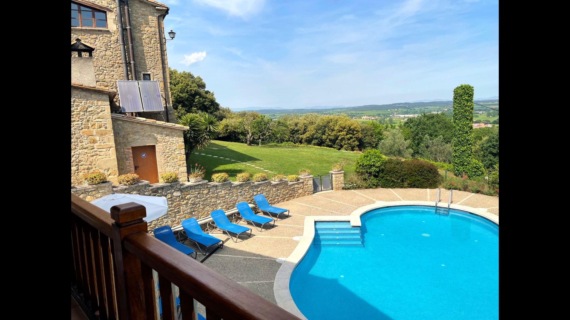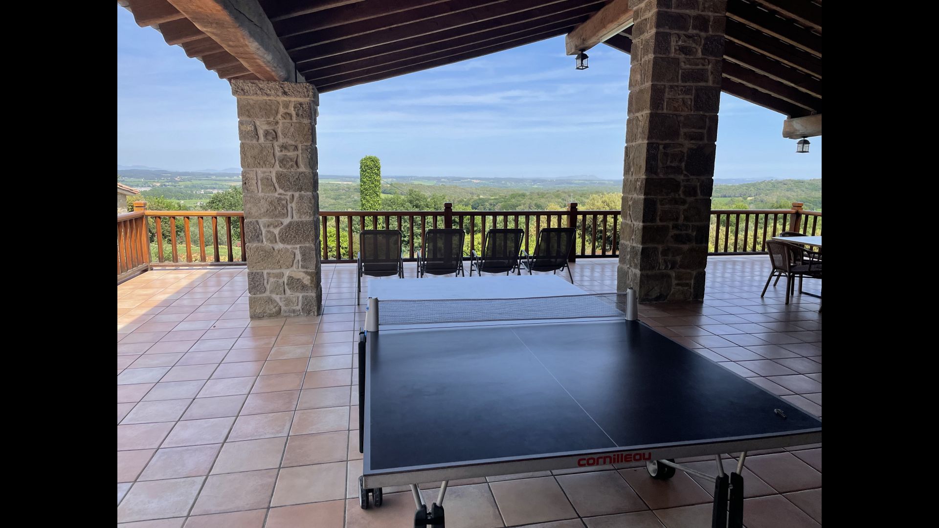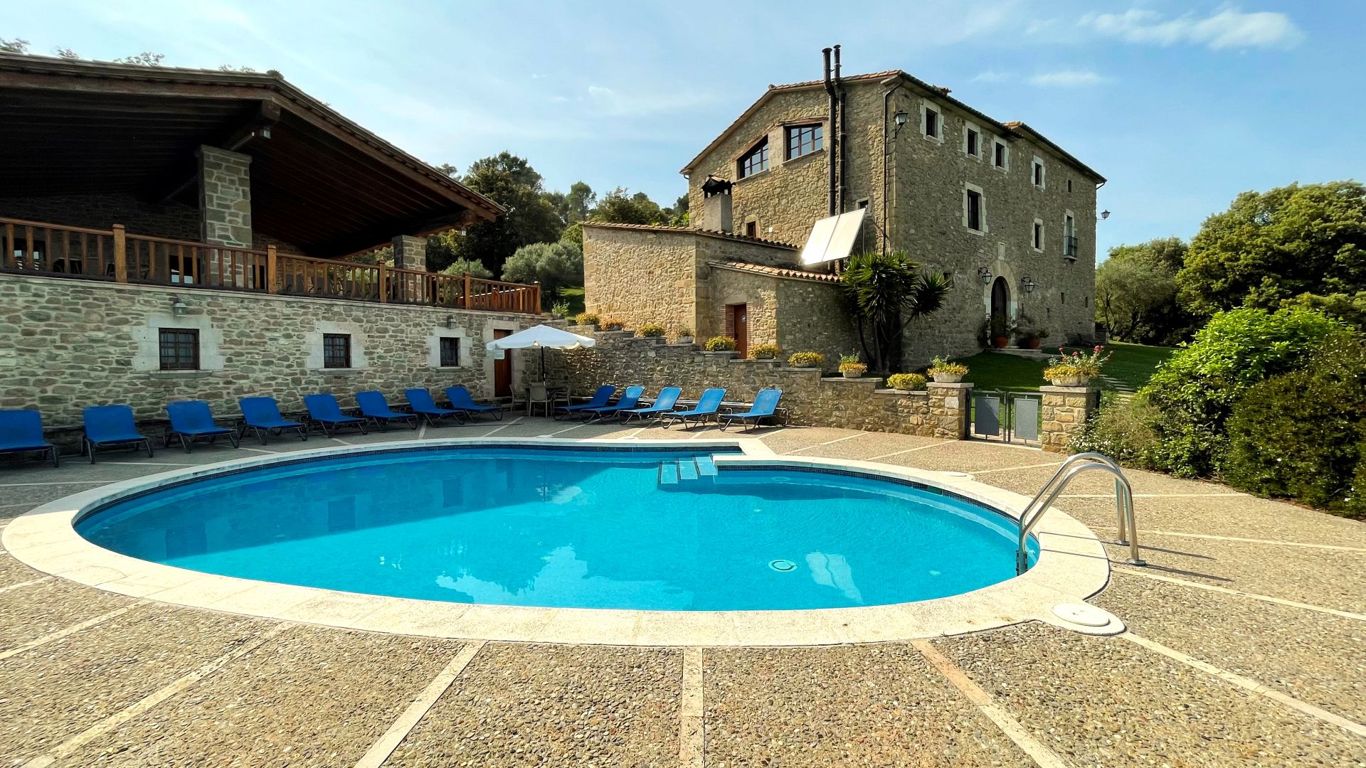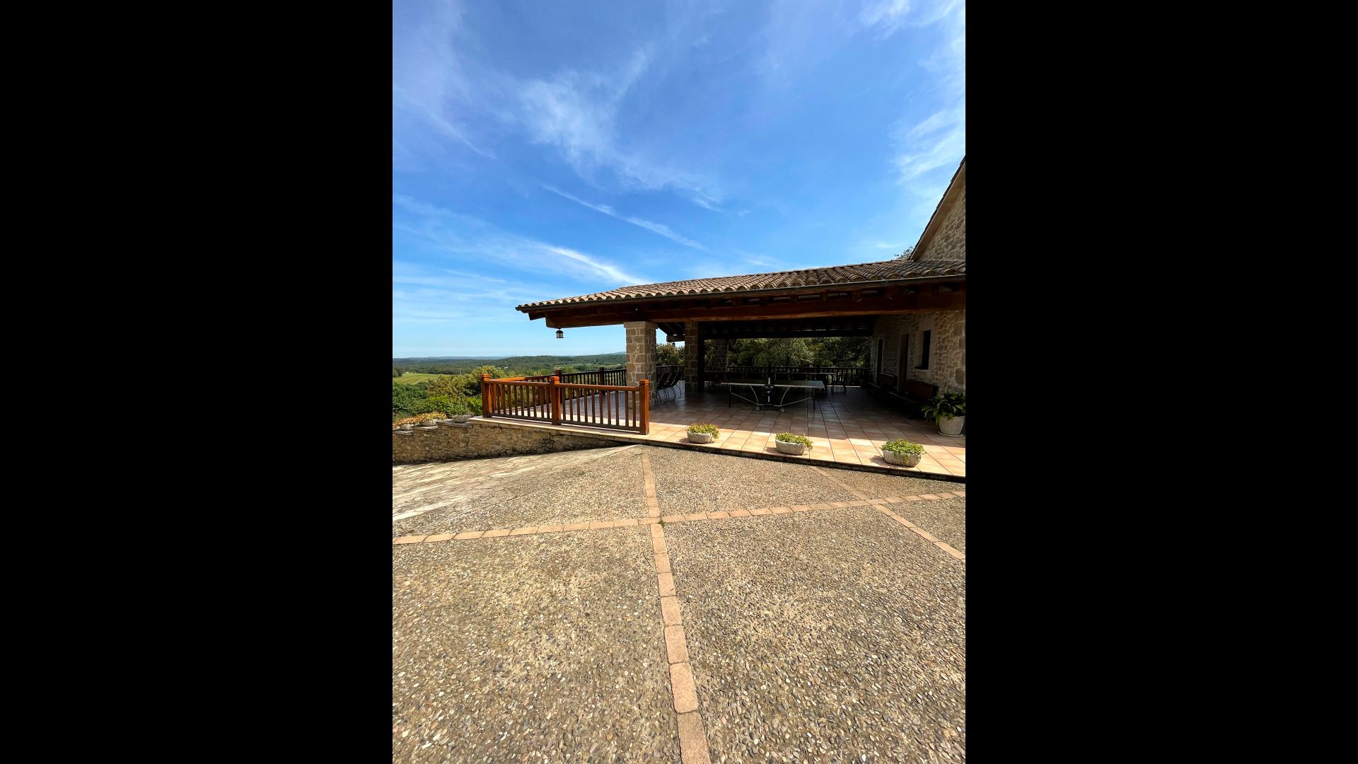 Desde la carretera, siguiendo a lo lejos la orilla del idílico lago de Banyoles, gire a la derecha para conducir cuesta arriba a través de un pequeño bosque hasta llegar a la impresionante entrada frente a la casa. La casa tiene dos edificios, el edificio principal y el edificio lateral también llamado Masover. Debajo del edificio, tiene la gran área de la piscina con tumbonas, o si prefiere la sombra, puede disfrutar de la vida en la gran terraza un nivel por encima del área de la piscina.