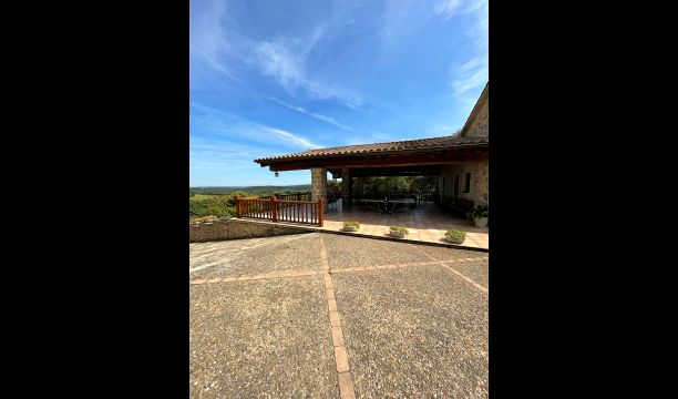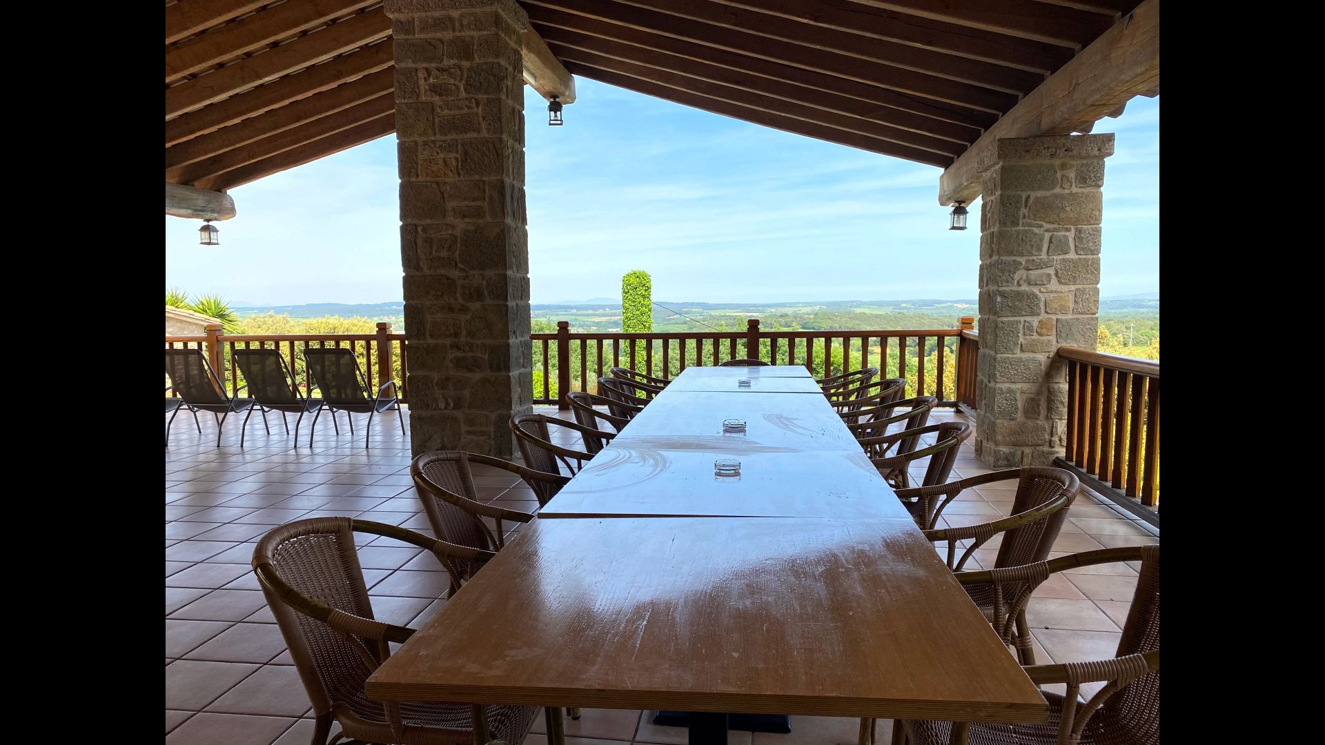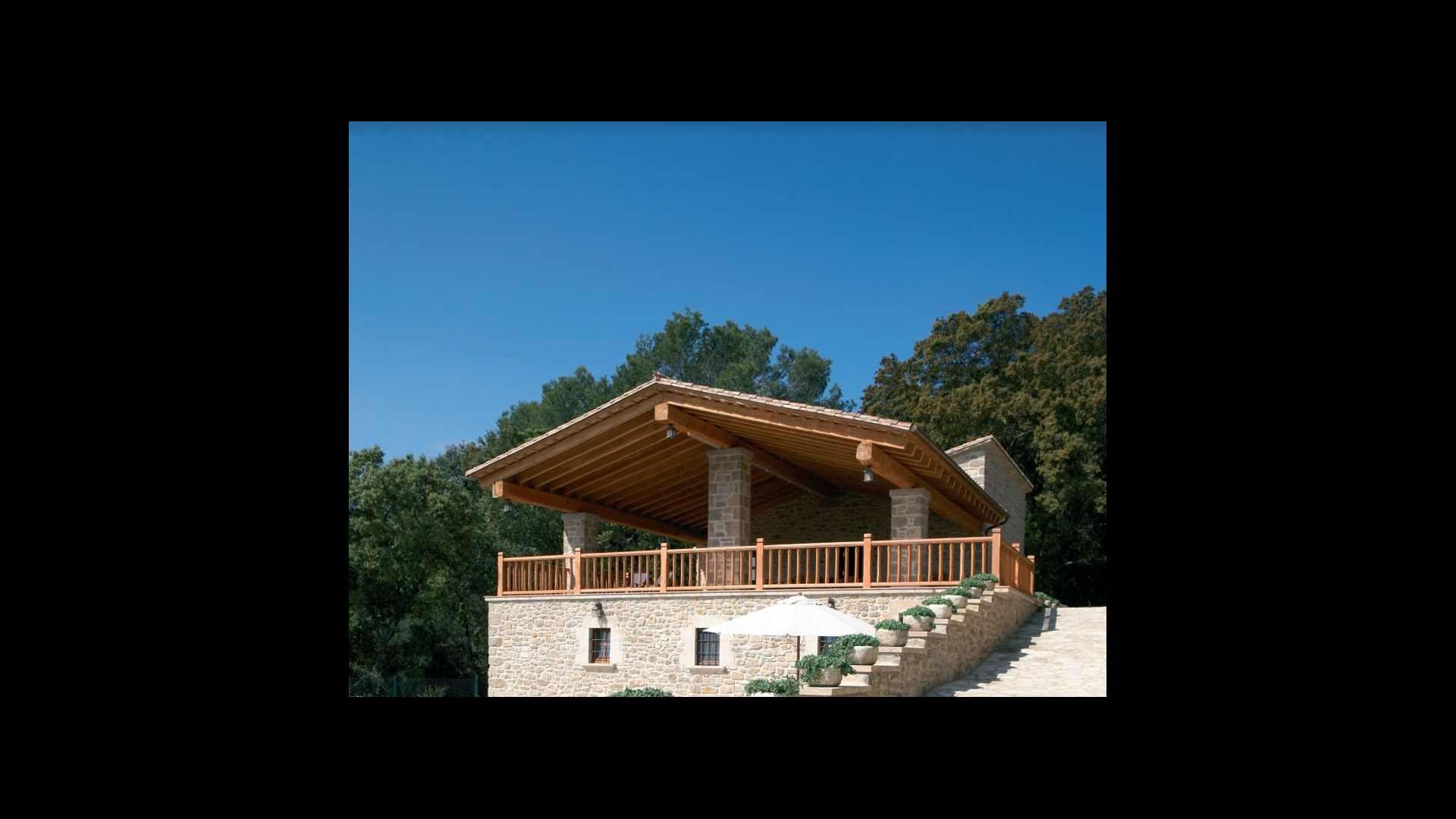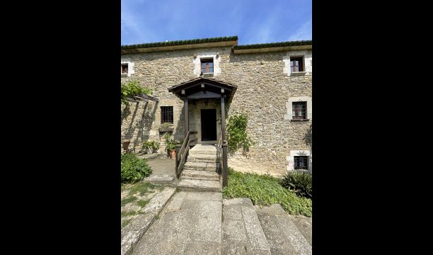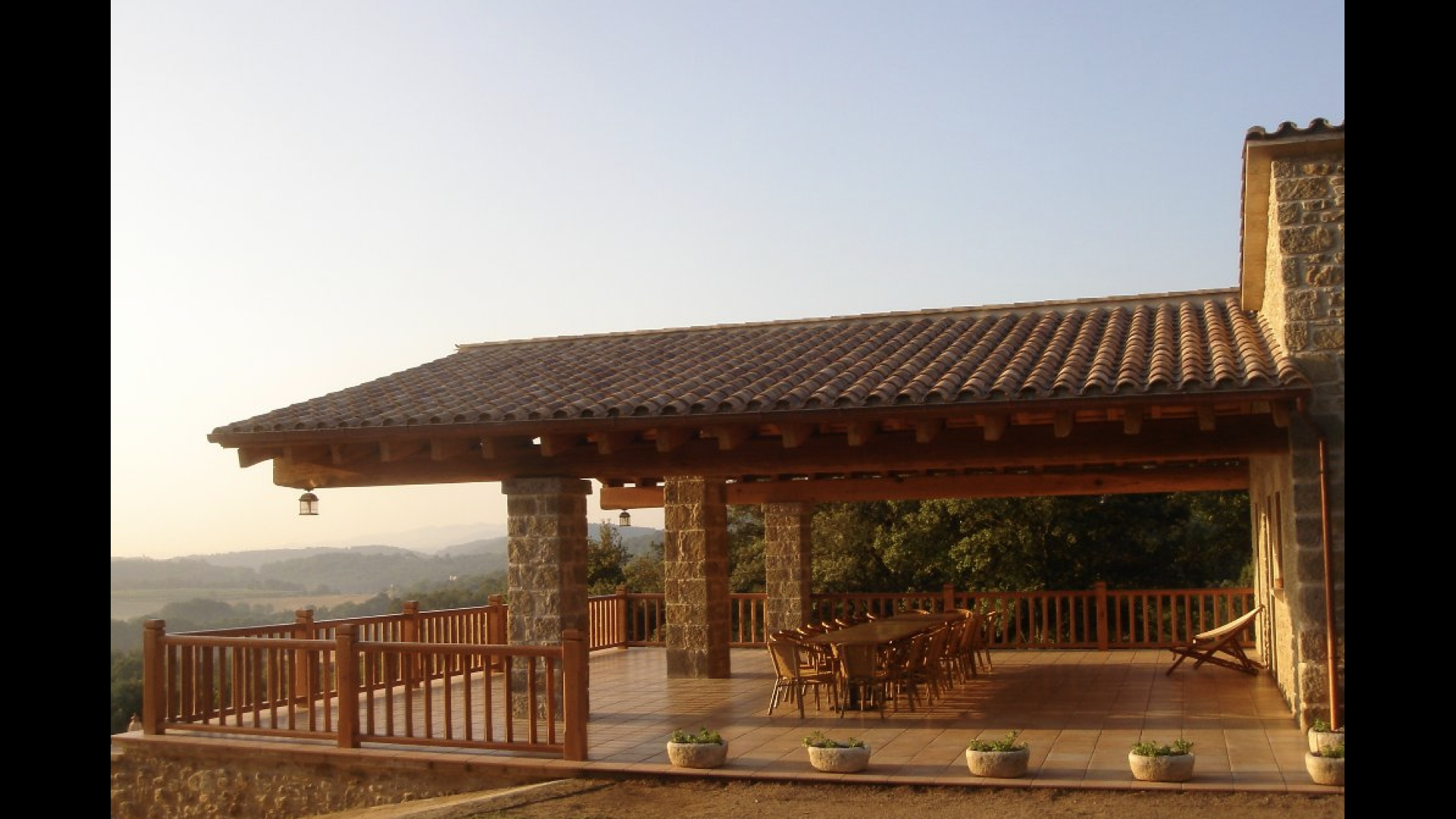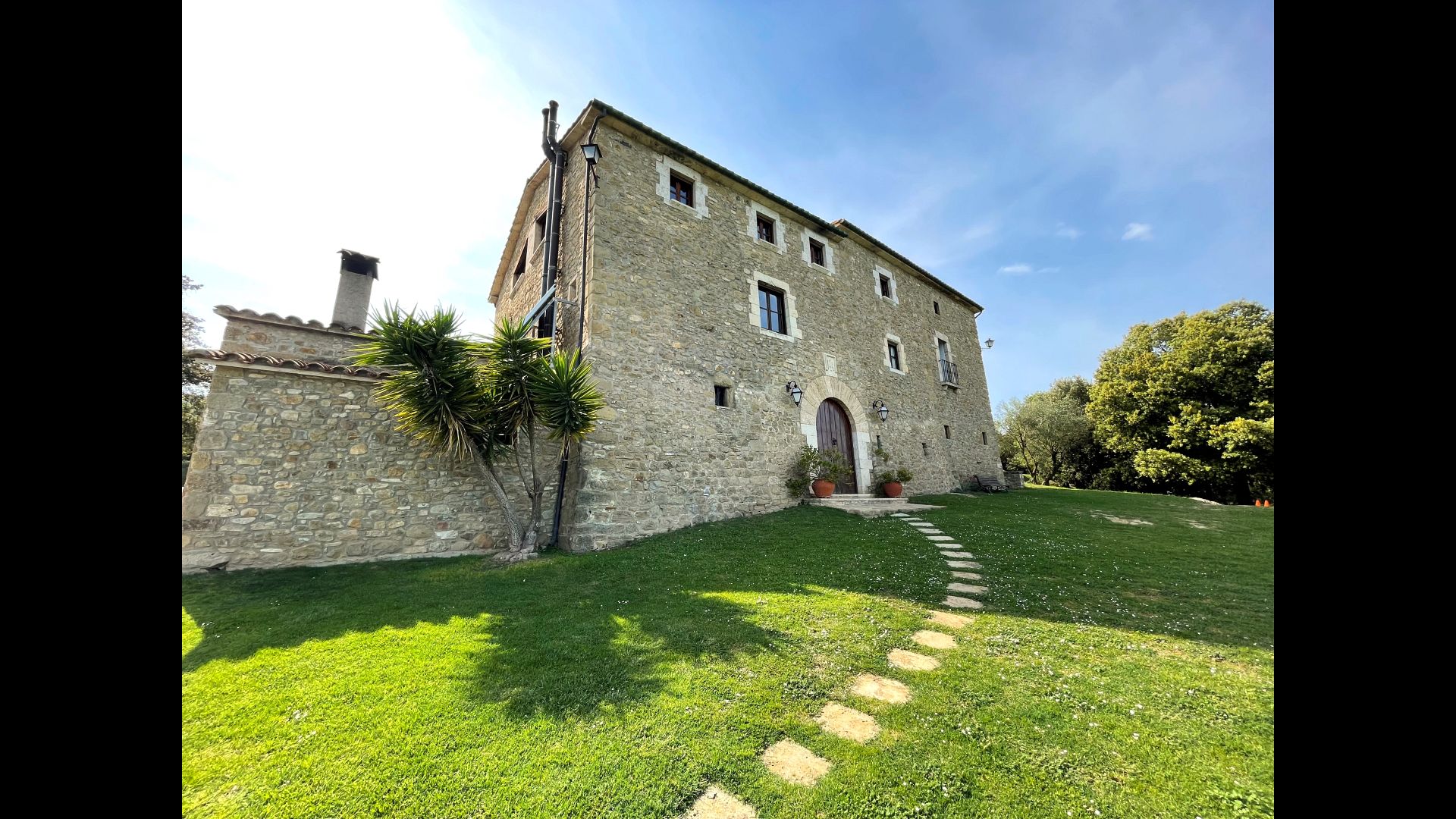 Desde la carretera, siguiendo a lo lejos la orilla del idílico lago de Banyoles, gire a la derecha para conducir cuesta arriba a través de un pequeño bosque hasta llegar a la impresionante entrada frente a la casa. La casa tiene dos edificios, el edificio principal y el edificio lateral también llamado Masover. Debajo del edificio, tiene la gran área de la piscina con tumbonas, o si prefiere la sombra, puede disfrutar de la vida en la gran terraza un nivel por encima del área de la piscina.
