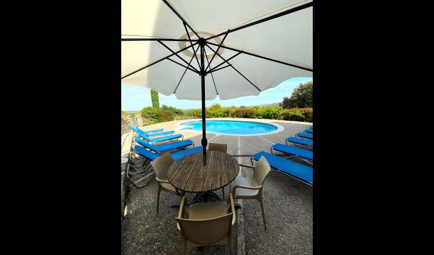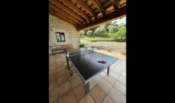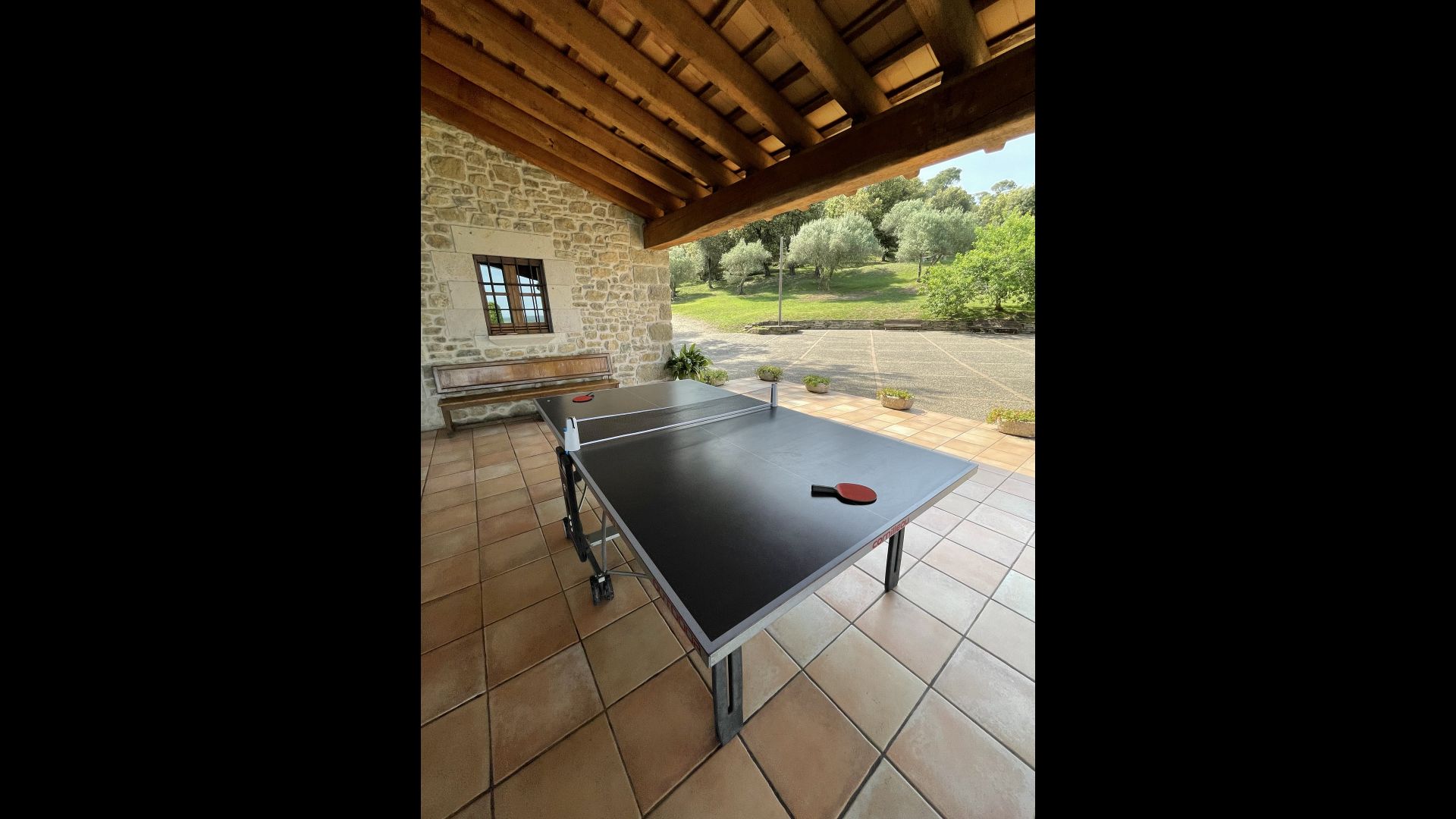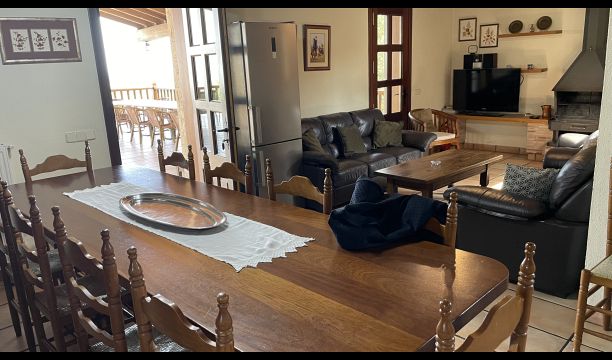 Desde esta parte de la casa, puede ingresar a otra terraza muy acogedora con olivos y una vista muy bonita. También hay una barbacoa. La casa tiene muchas actividades, por ejemplo, hay un campo de fútbol, tenis de mesa e Internet WiFi.