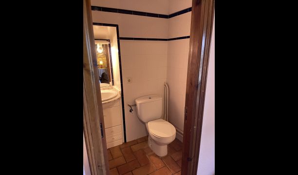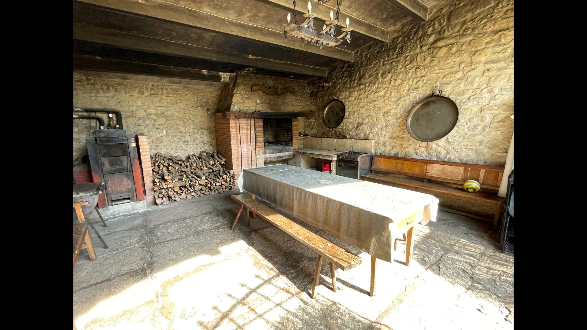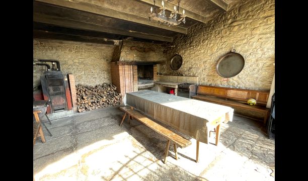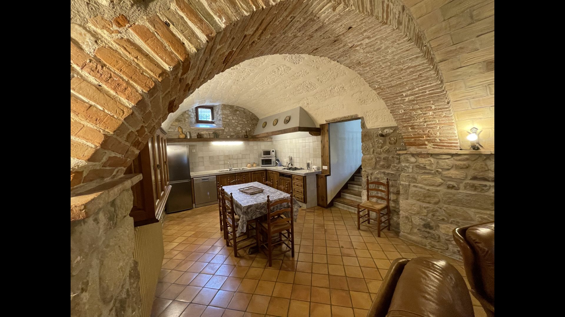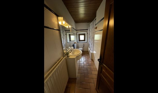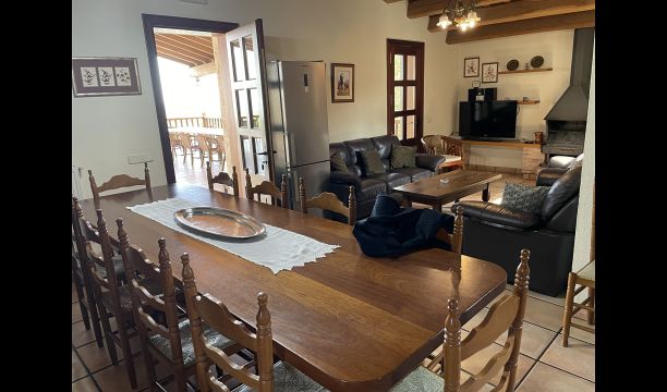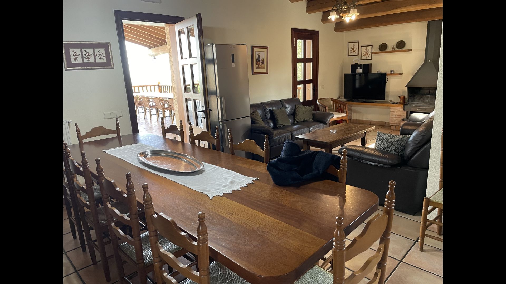 Usted tiene acceso al edificio Masover directamente desde la terraza a una gran sala común con comedor con una gran mesa de comedor, cocina abierta con fogones, horno, microondas, lavavajillas, nevera y congelador. Luego hay una sala de estar con TV y chimenea, y hay un baño para usar arriba y desde la terraza.