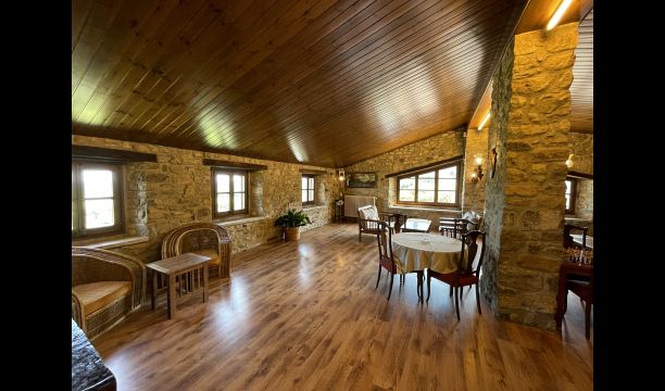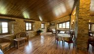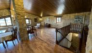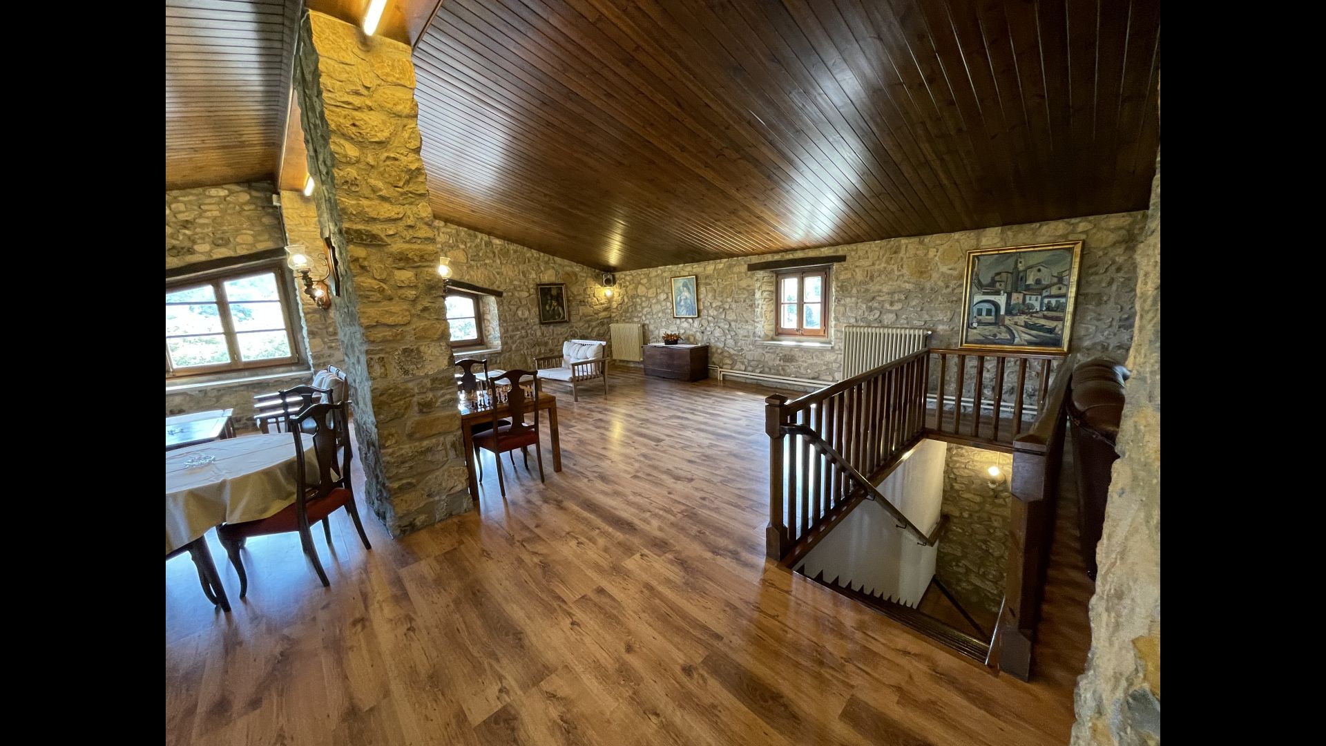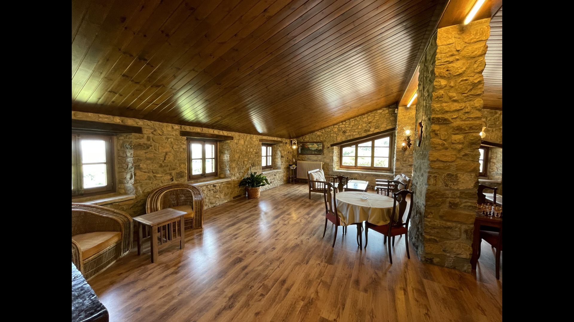 El edificio principal tiene tres partes conectadas. La primera parte tiene un patio acogedor con flores y una mesa y sillas en la terraza. Desde el pequeño hall se accede a una sala común con chimenea en una esquina y cocina con muchos detalles antiguos, por ejemplo, el fregadero de piedra y el refrigerador antiguo que aún funciona, y comodidades modernas, como lavavajillas y microondas. Toda la casa es de alto nivel pero muy histórica y auténtica.