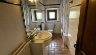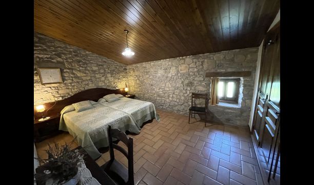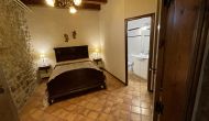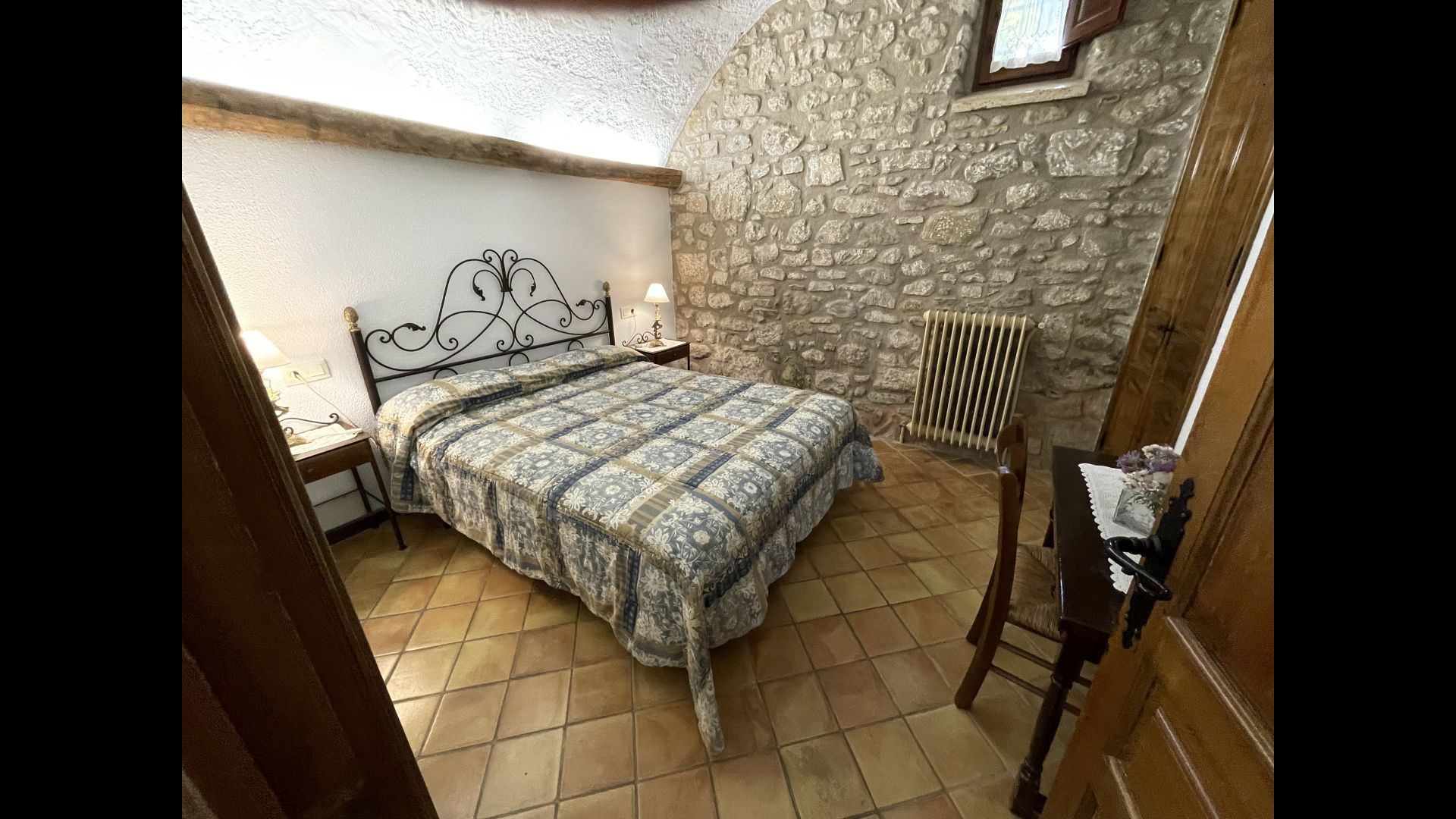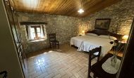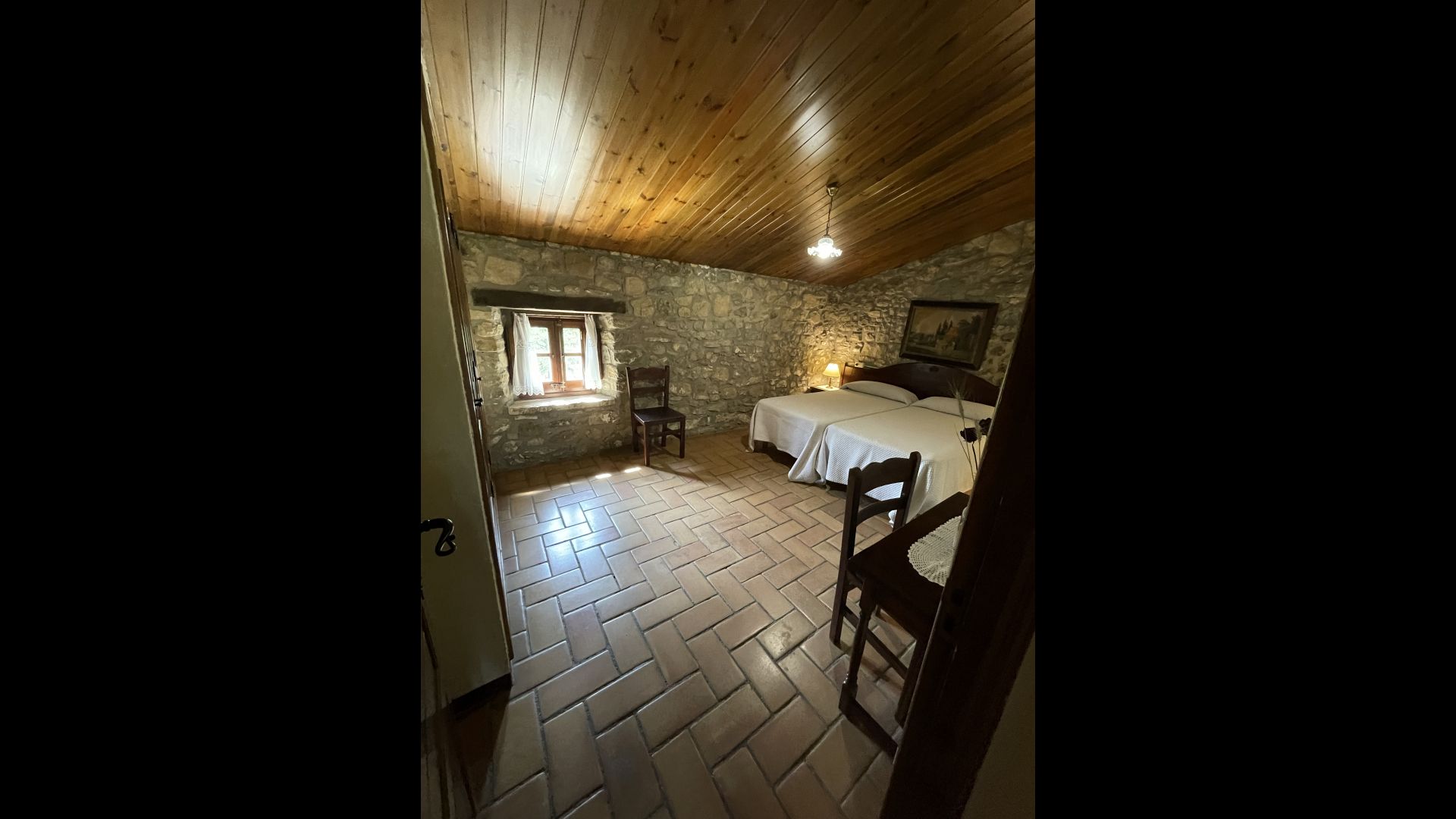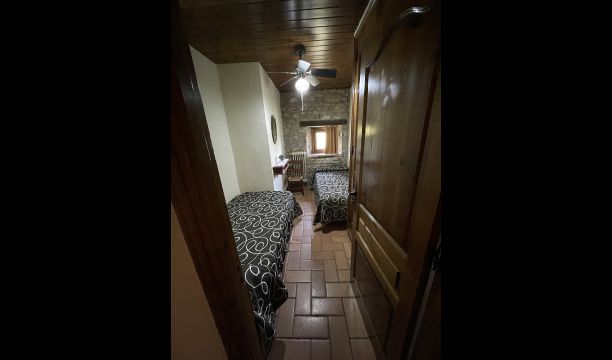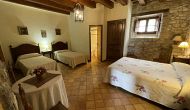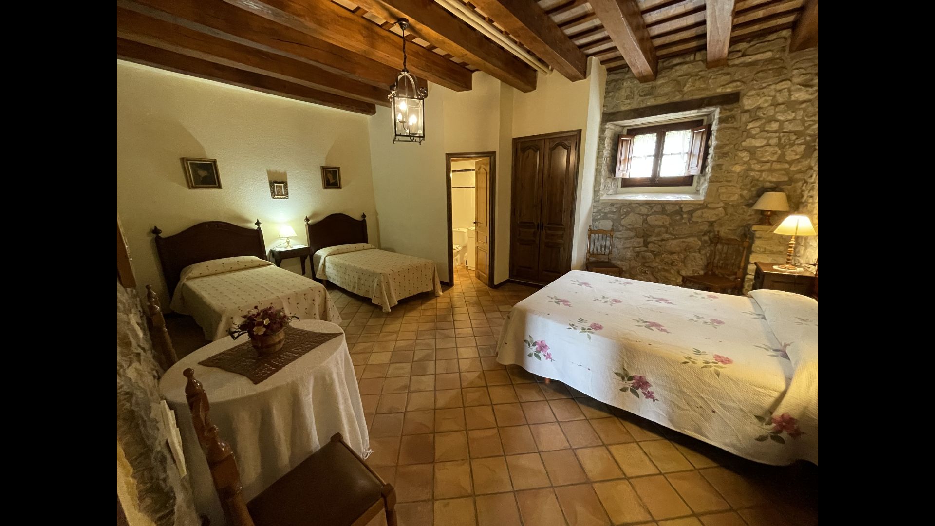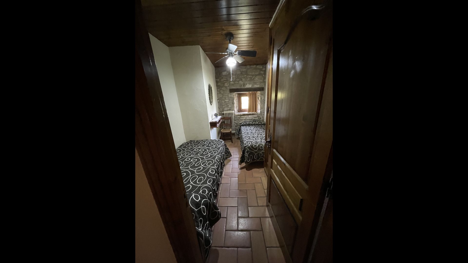 En la planta baja, se encuentran las habitaciones conectadas con un largo pasillo. Hay cuatro amplias habitaciones triples, todas con una cama doble, una cama individual y baño privado. Las gruesas paredes mantienen las habitaciones agradables y frescas durante el verano. En el otro extremo del pasillo, hay otra salida que da acceso directo al área de la piscina.
