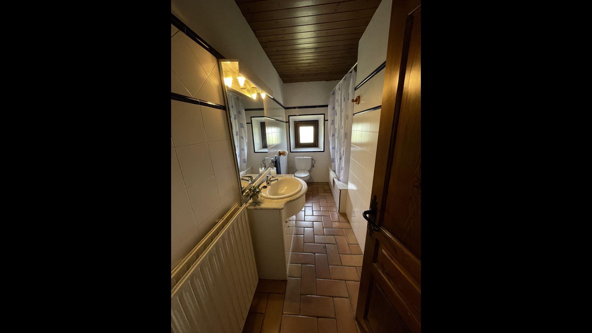 En el primer piso con techo muy alto, hay una sala de estar muy espaciosa con diferentes zonas de estar, algunas con vista y otra con sofás y televisión y equipo de música. Hay cuatro habitaciones más: una gran habitación doble con baño privado y una vista muy bonita, una habitación doble con dos camas individuales, una pequeña habitación doble con 2 camas individuales y un baño con bañera.