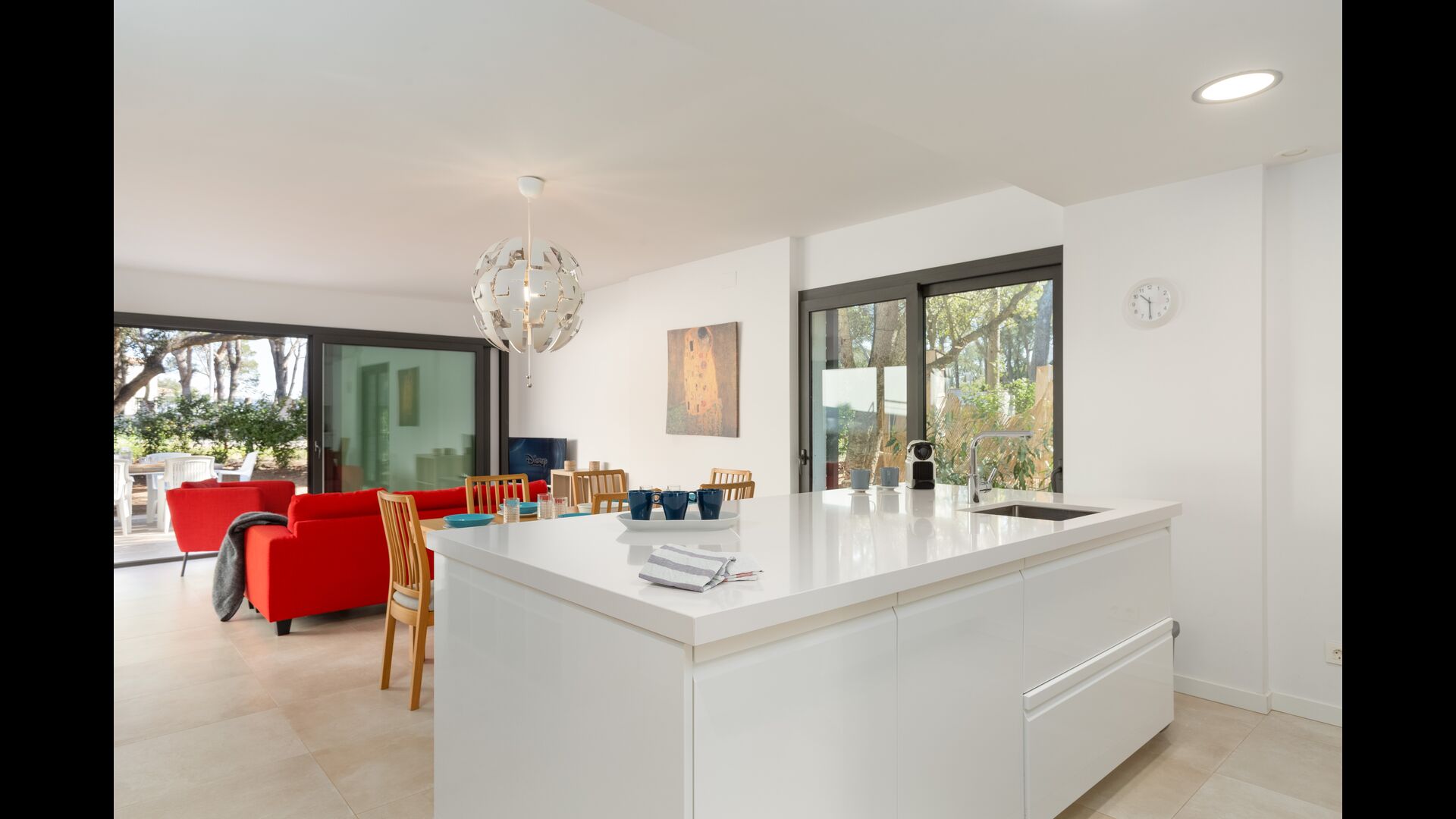 Bresal-moderna es una casa unifamiliar de alto estándar diseñada en estilo contemporáneo. La casa se distribuye en dos niveles. Entramos por la planta principal donde un recibidor tiene acceso directo a una luminosa cocina americana totalmente equipada, bonito comedor y un amplio salón desde donde hay salida a una agradable terraza y zona ajardinada donde disfrutar de la tranquilidad. de la Costa Brava. En esta misma planta también encontramos una habitación doble con baño privado con ducha, aseo de cortesía y zona de lavandería.