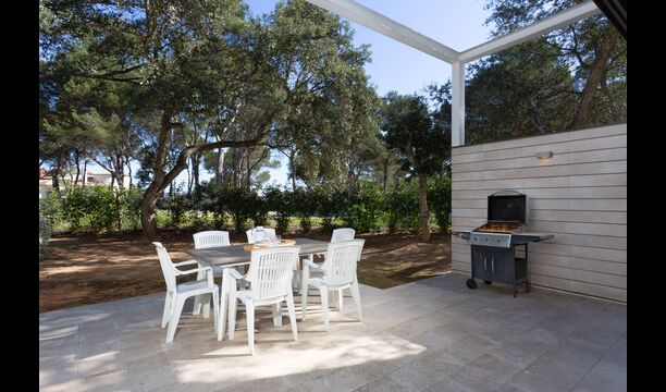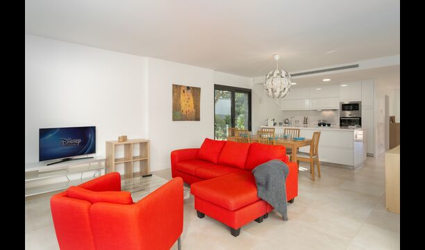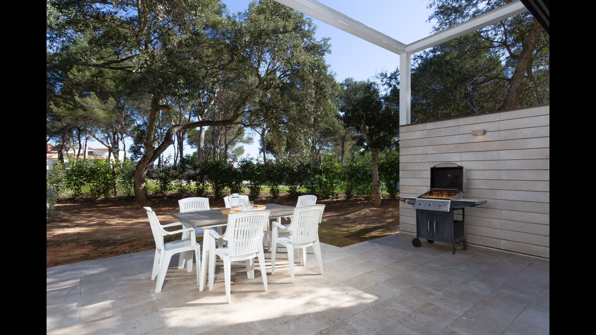 La casa está equipada con sofás, etc. para 4 personas, pero también es posible alojar a más de 4 personas. En cuanto a las instalaciones exteriores, hay dos tumbonas en la terraza superior, que están comunicadas con uno de los dormitorios. Hay varias tumbonas junto a la piscina comunitaria.