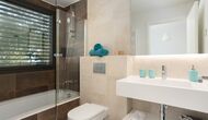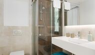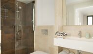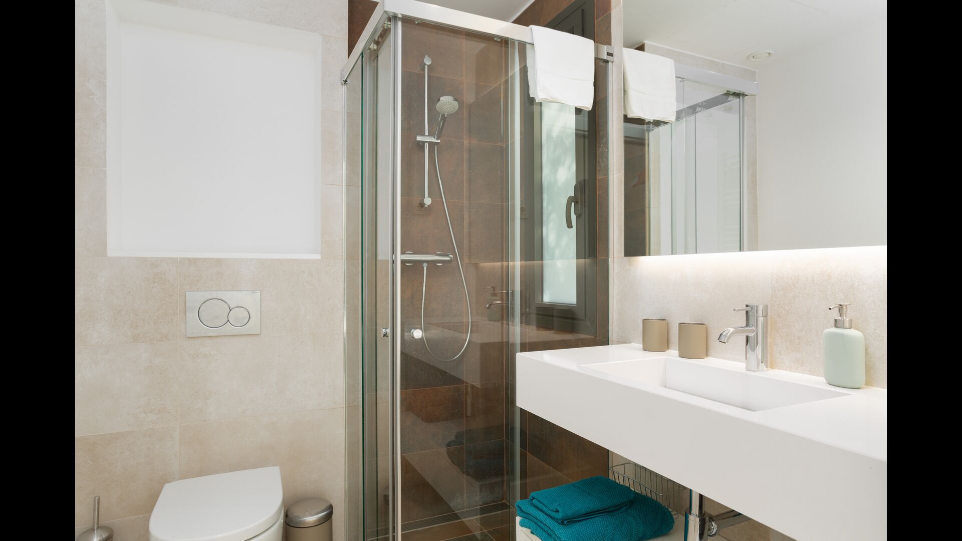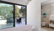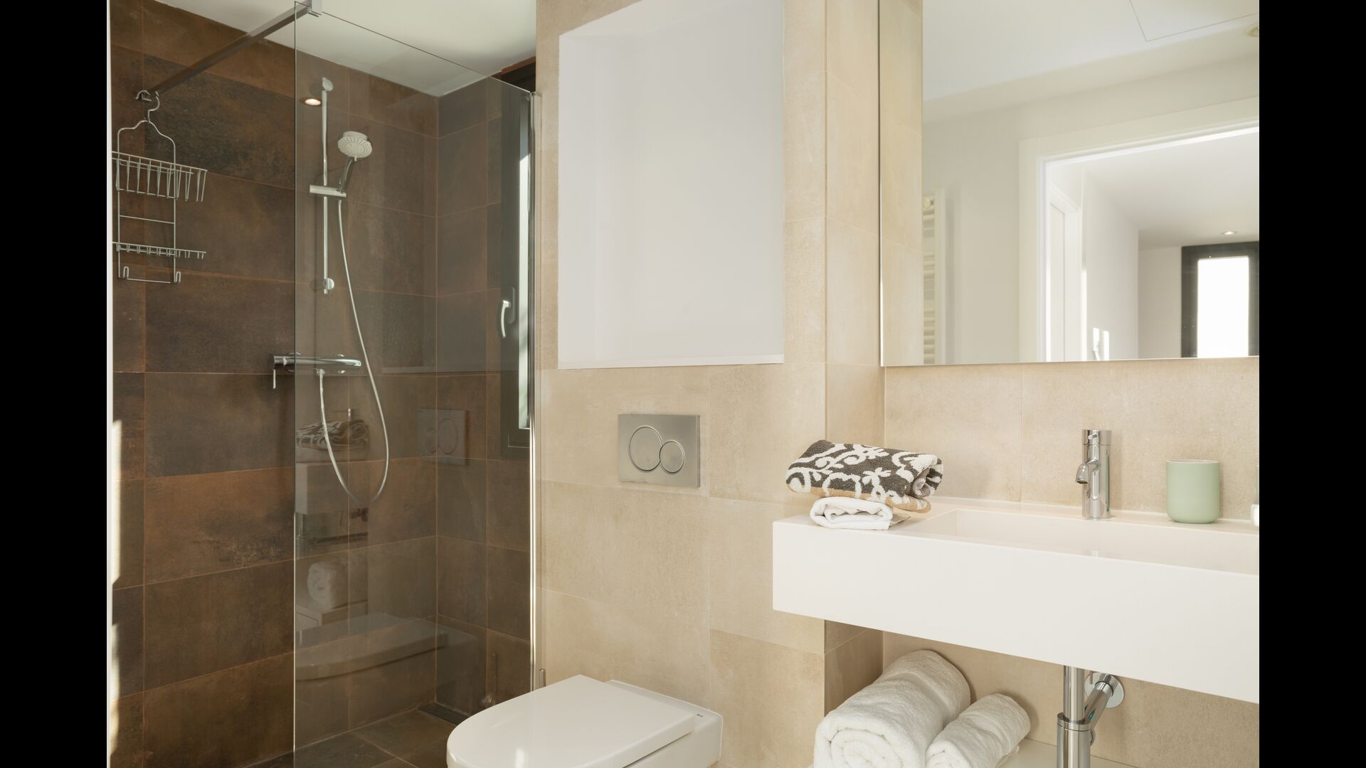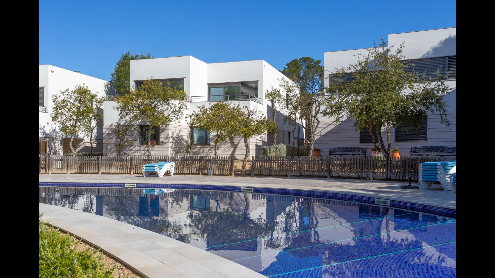 En la planta superior hay dos dormitorios dobles con acceso a una bonita terraza con vistas a la zona comunitaria. Estas dos habitaciones comparten un baño con ducha. Aquí también hay un dormitorio doble en suite con baño con bañera y acceso a una gran terraza con vistas al jardín de la casa.