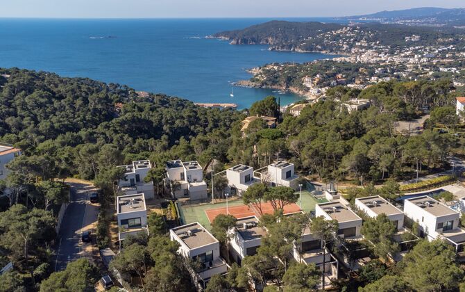 Este complejo de villas modernas está situado en las rocas justo encima de Llafranc y ofrece, además de la ubicación perfecta, terraza y jardín privados, así como piscina y pista de tenis compartidas (¡recuerda las raquetas y las pelotas!).