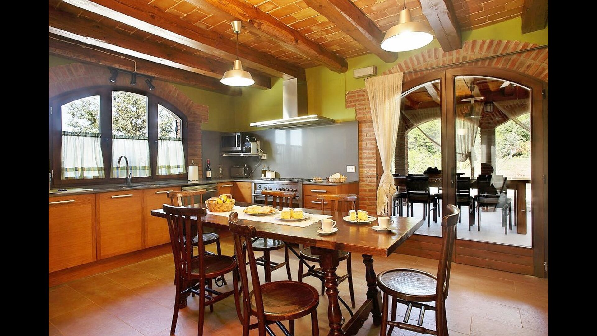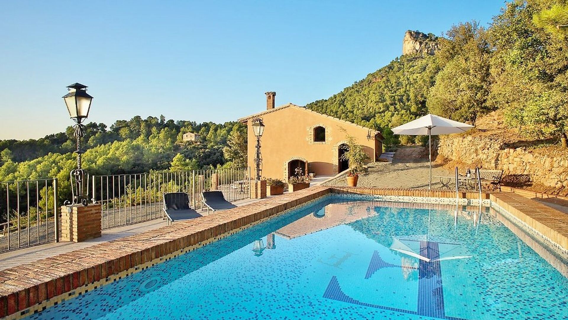 La casa ha sido reformada recientemente y ahora es de alto nivel. A un lado de la casa, tienes la piscina y una mesa redonda frente a la casa con vista al paisaje.