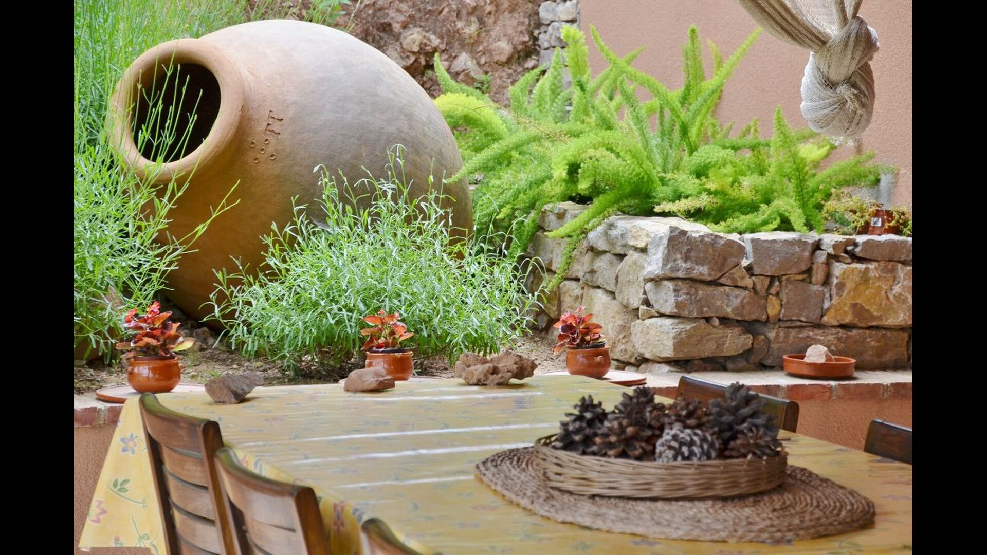 Can de Fontana es un lugar realmente agradable para una o dos familias, relajándose en la terraza con vistas a la piscina y los viñedos. O si quieres hacer algo de ejercicio, simplemente sigue el camino de ripio durante 3 km. al pueblo de Falset, que es un pequeño pueblo animado con todos los servicios e incluso estación de tren con trenes diarios a Tarragona y Barcelona.