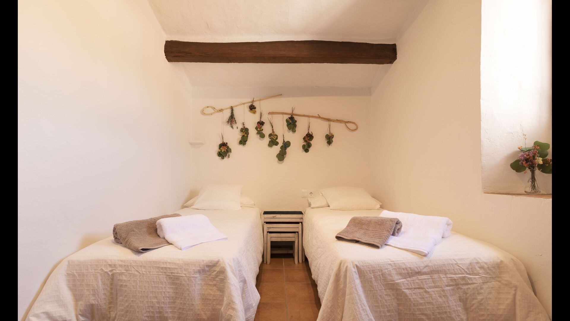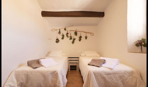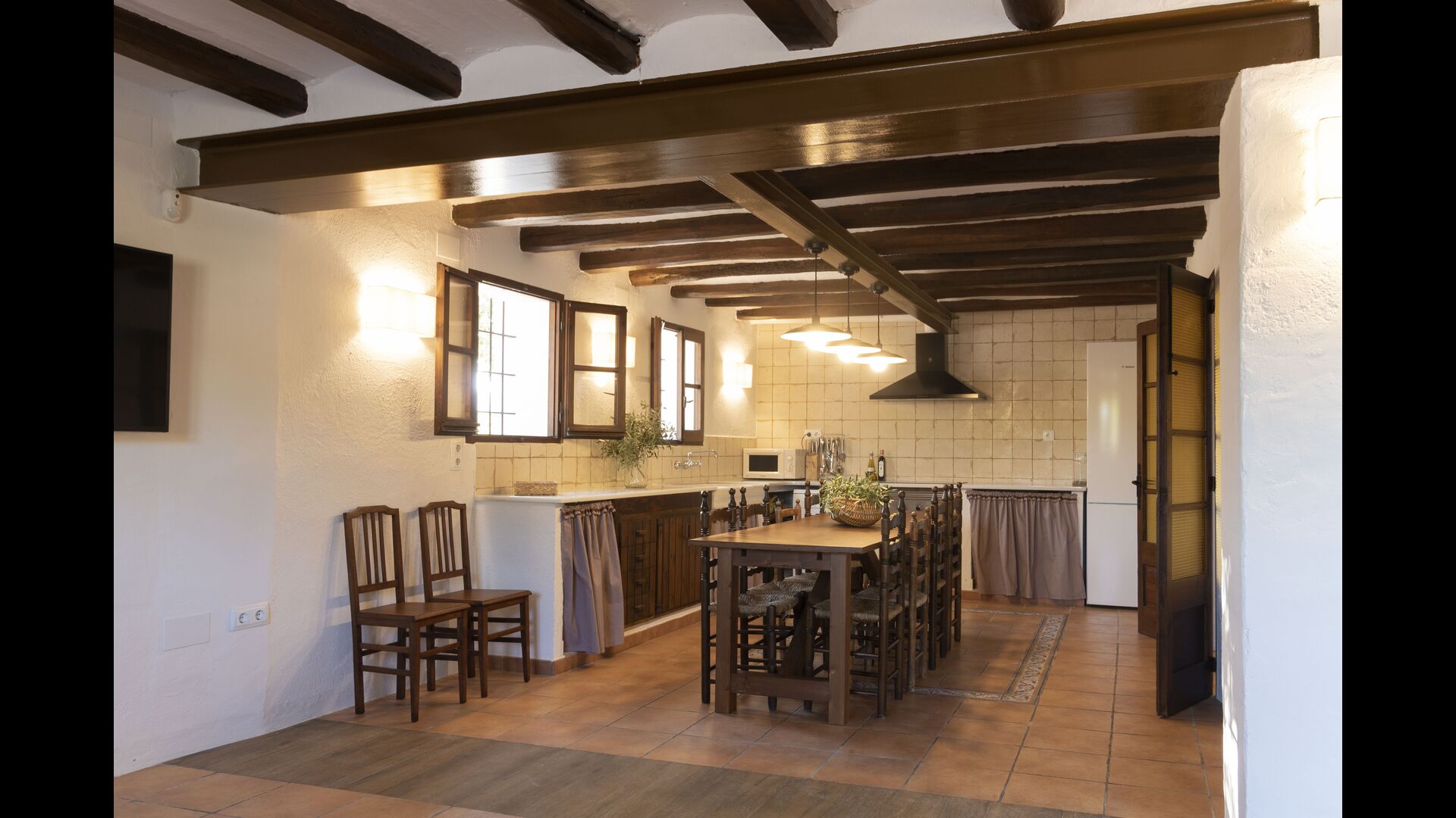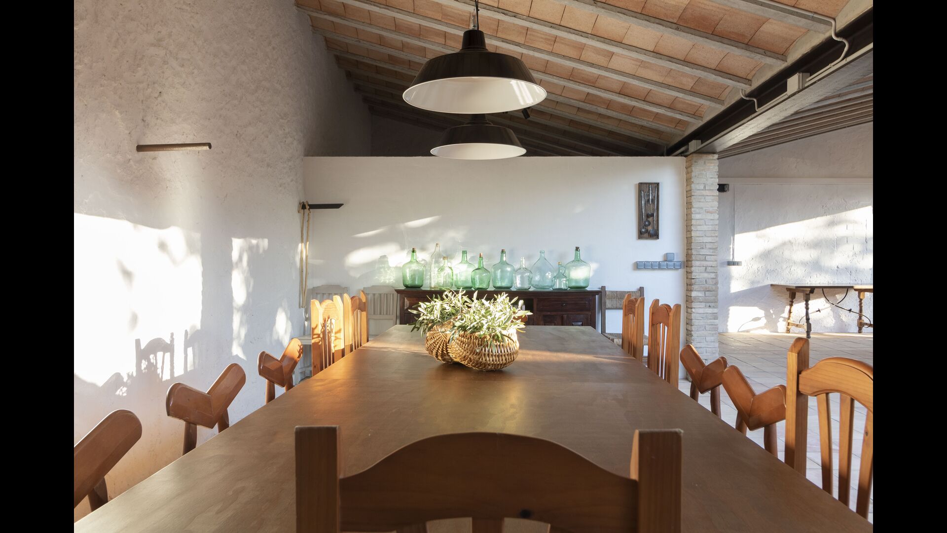 La casa tiene una terraza cubierta, perfecta para desayunar y cenar junto al suave murmullo de las aguas de la piscina, que en sí es bastante grande y viene con algunas tumbonas. Ya sea para refrescarte en la piscina, relajarte en las tumbonas o disfrutar de unas tapas en la terraza exterior, podrás contemplar la maravillosa campiña catalana . Parte de la razón por la que Casa Moma está tan maravillosamente aislada son las 6 hectáreas de bosque y algarrobos, y las 3 hectáreas</strong > de viñedos y olivos que rodean la propiedad.