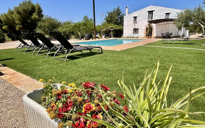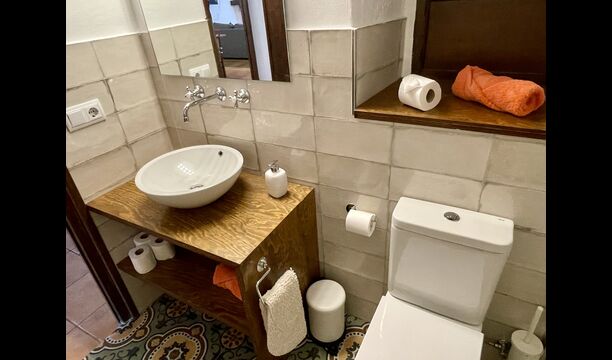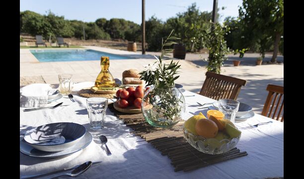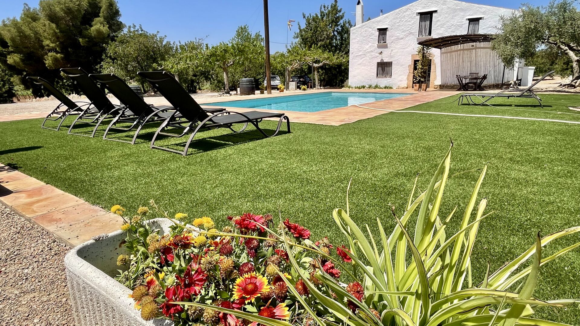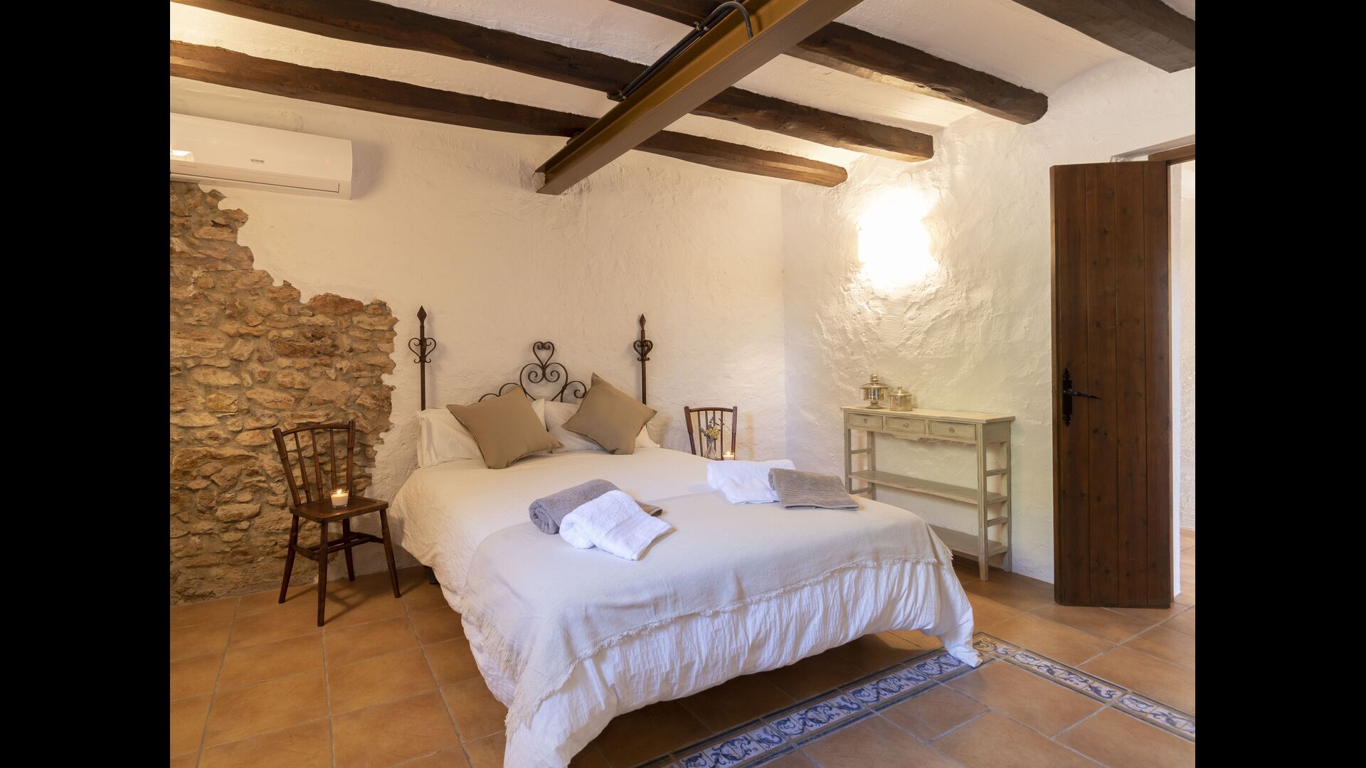 La casa tiene una terraza cubierta, perfecta para desayunar y cenar junto al suave murmullo de las aguas de la piscina, que en sí es bastante grande y viene con algunas tumbonas. Ya sea para refrescarte en la piscina, relajarte en las tumbonas o disfrutar de unas tapas en la terraza exterior, podrás contemplar la maravillosa campiña catalana . Parte de la razón por la que Casa Moma está tan maravillosamente aislada son las 6 hectáreas de bosque y algarrobos, y las 3 hectáreas</strong > de viñedos y olivos que rodean la propiedad.