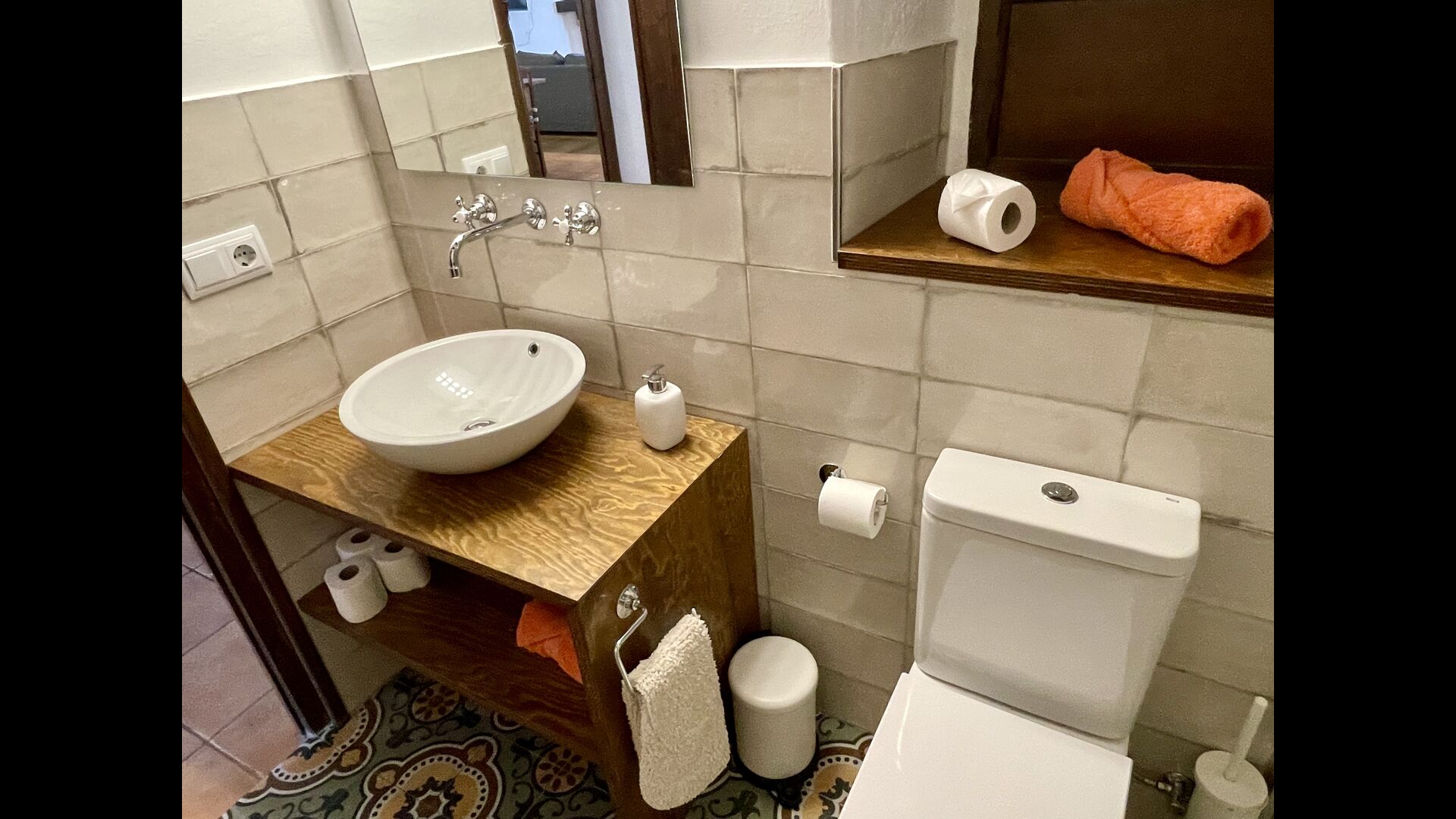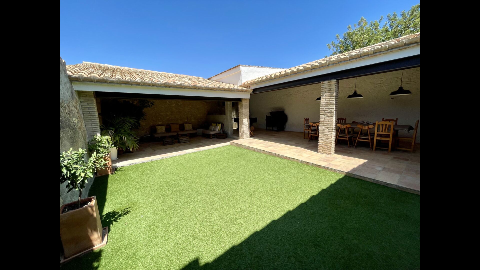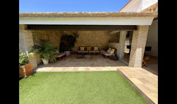La casa también cuenta con un patio interior, flanqueado por un porche adosado a la propia casa; el porche tiene una zona chill-out, con múltiples sillas cómodas y una decoración acogedora, así como un comedor/mesa y un futbolín. Tome el sol en el patio o relájese a la sombra del porche – cenar con amigos o familiares en la mesa!