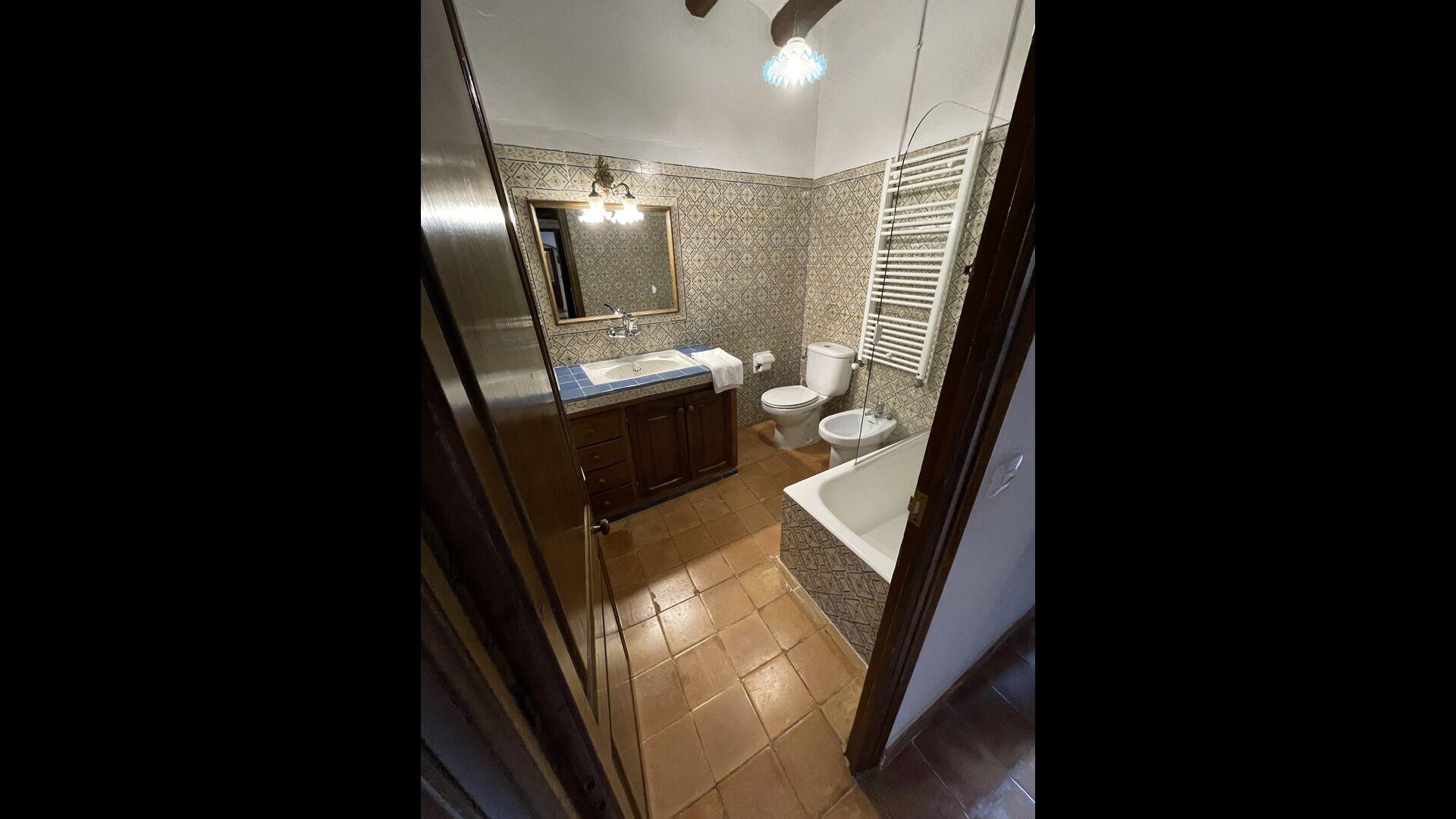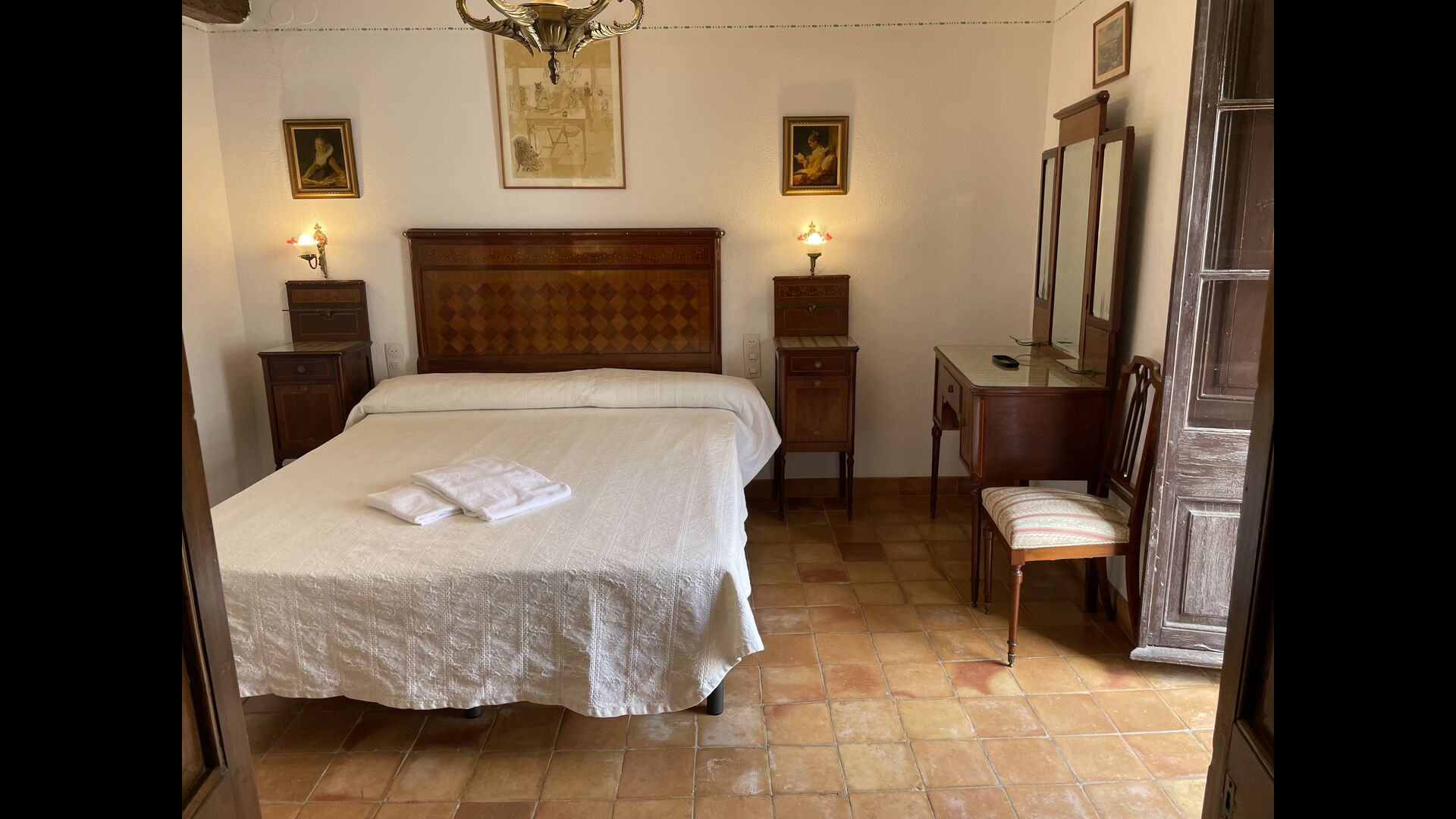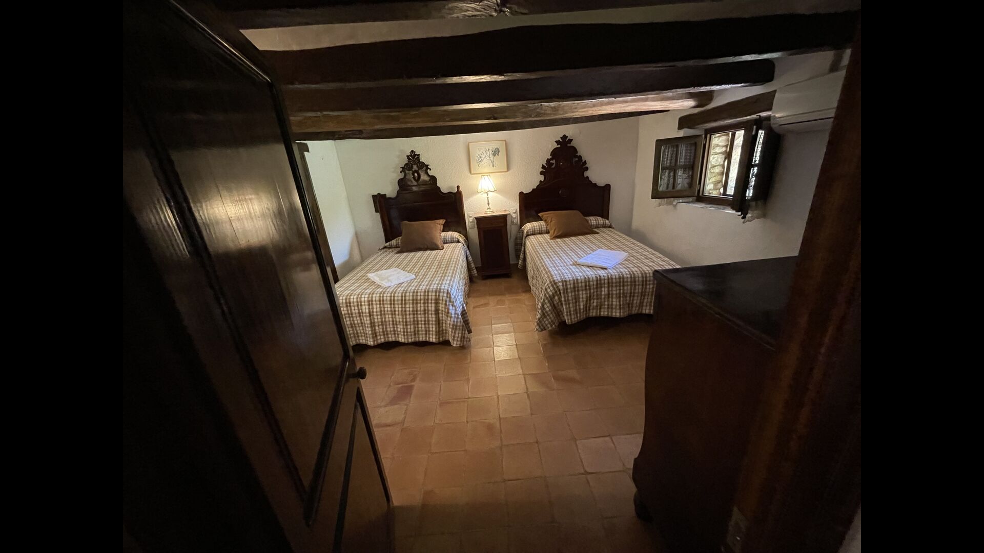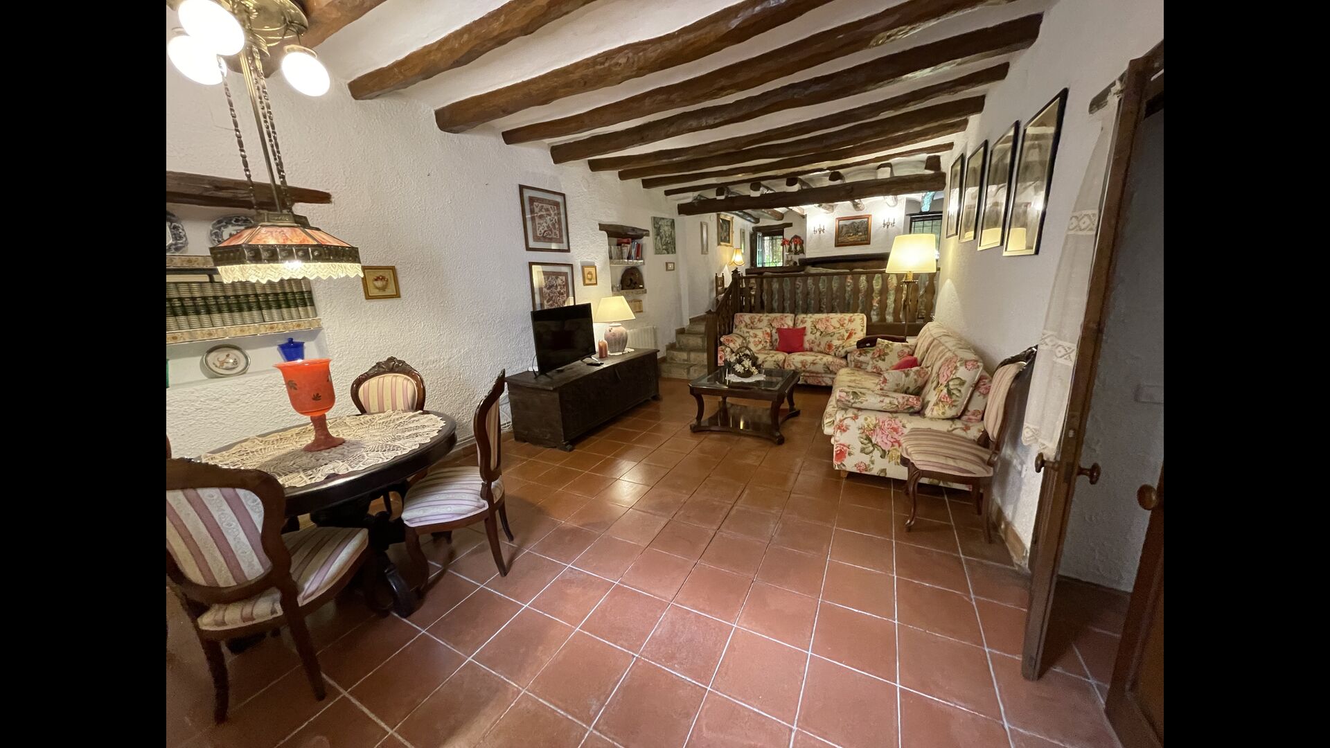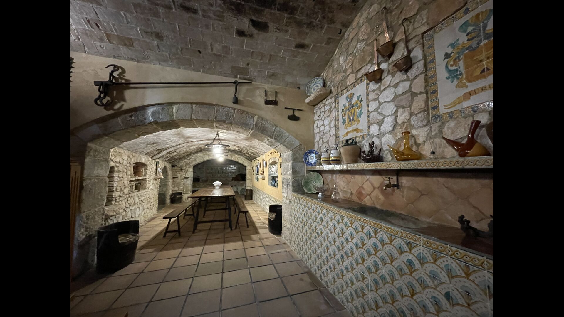 Can Joan tiene cuatro niveles y además la bodega. Para grupos grandes, la planta baja de esta casa es perfecta, ya que habrá asientos para un grupo grande alrededor de la gran mesa de comedor, y una cocina totalmente equipada conectada directamente. Alternativamente, puede comer al aire libre en la terraza, o si prefiere un lugar refrescante para su almuerzo, la bodega, que también ha sido equipada con una mesa de comedor muy grande, está situada en los pisos superiores. Cuatro escalones más arriba, hay un pasillo de conexión con 3 dormitorios, una habitación doble con baño privado, otra habitación doble y una habitación con dos camas individuales que comparten un baño. En el primer piso, hay 5 dormitorios más. Hay un pasillo con sofás y acceso a los dormitorios. Una habitación doble y una habitación con dos camas individuales comparten un baño, y otras 3 habitaciones dobles comparten otro baño.