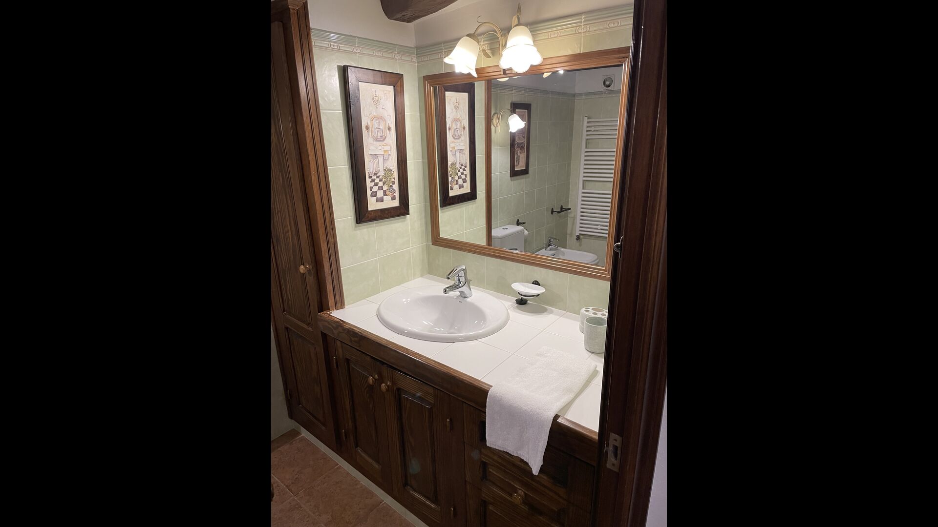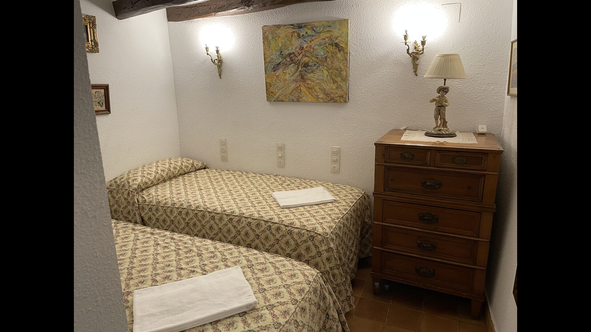 Posible habitación adicional: En el piso superior hay una habitación doble con una cama de matrimonio y un baño. Se puede abrir si se desea, pero puede ser bastante caluroso en verano, ya que está bajo techo y no tiene aire acondicionado. En verano se puede proporcionar un ventilador de suelo.