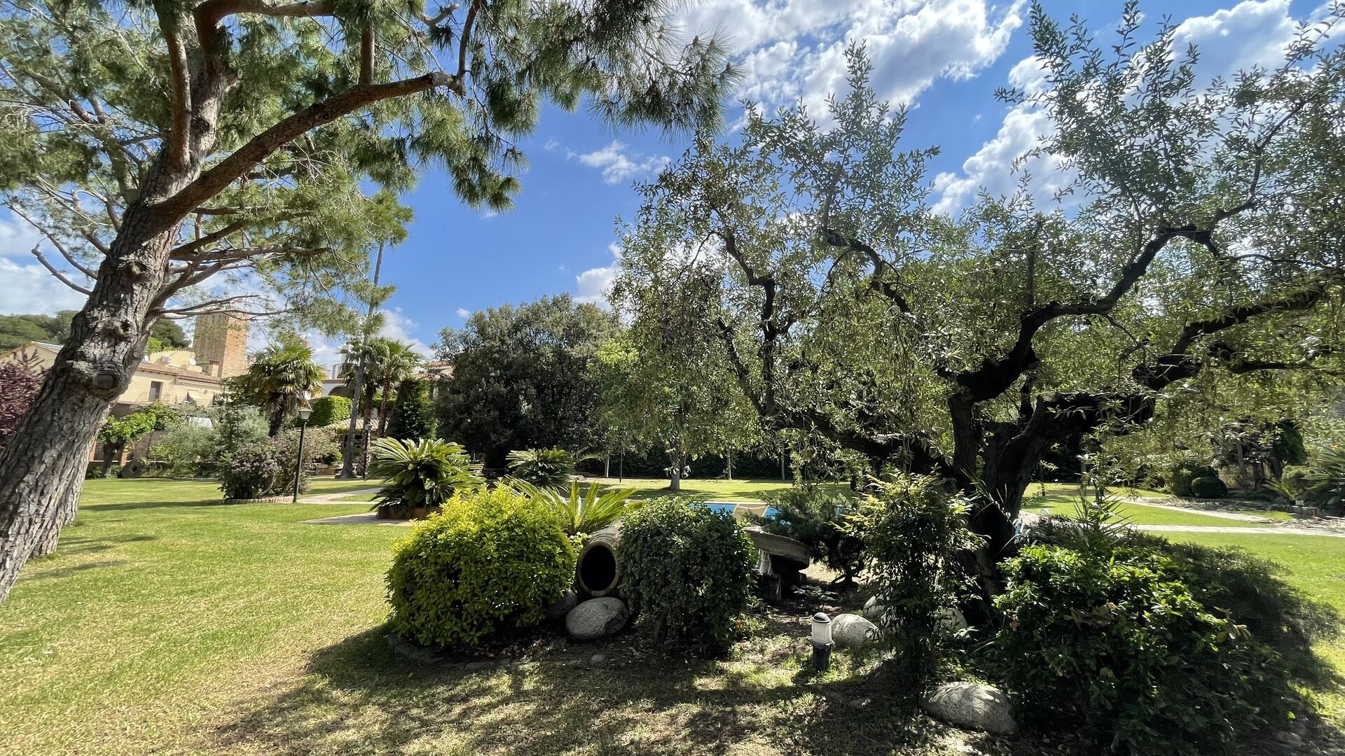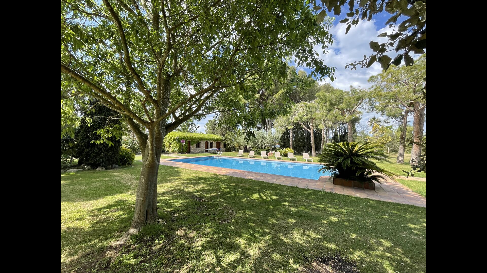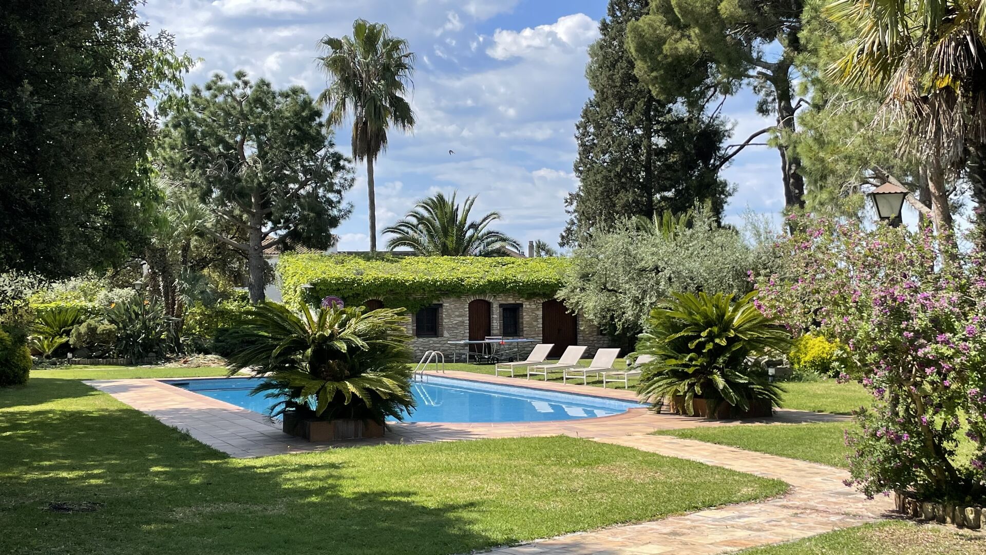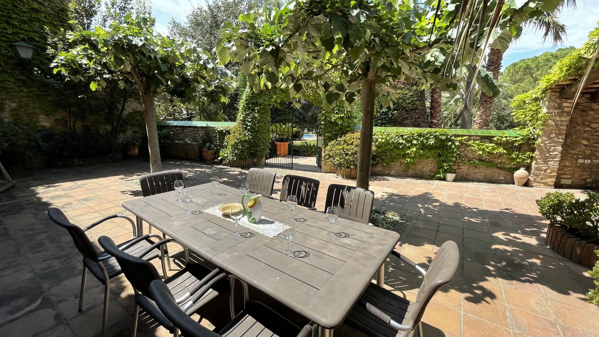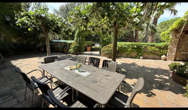 Al alquilar Can Joan, tendrá una casa situada en un gran jardín “parecido a un parque”, conectado con el césped y la zona de la piscina. El jardín es excelente para juegos de pelota y tiene muchos rincones con sombra, y la gran zona de la piscina con una gran piscina de 12 metros x 6 metros es excelente para relajarse y nadar en un cálido día de verano catalán.