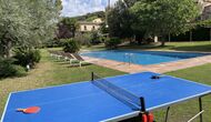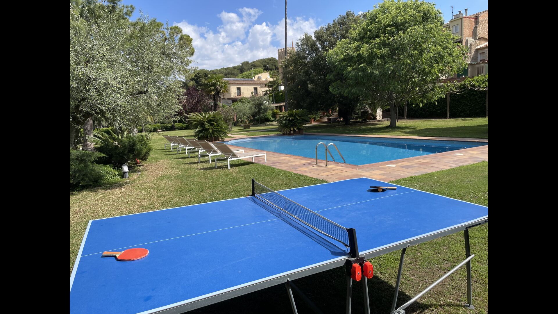 Como entretenimiento, hay una mesa de ping pong y un “billar infantil”. Además, en el jardín hay dos porterías de fútbol, por lo que podrá decidir de una vez quién es el Messi de la familia.