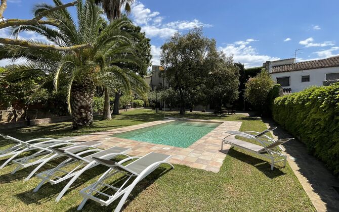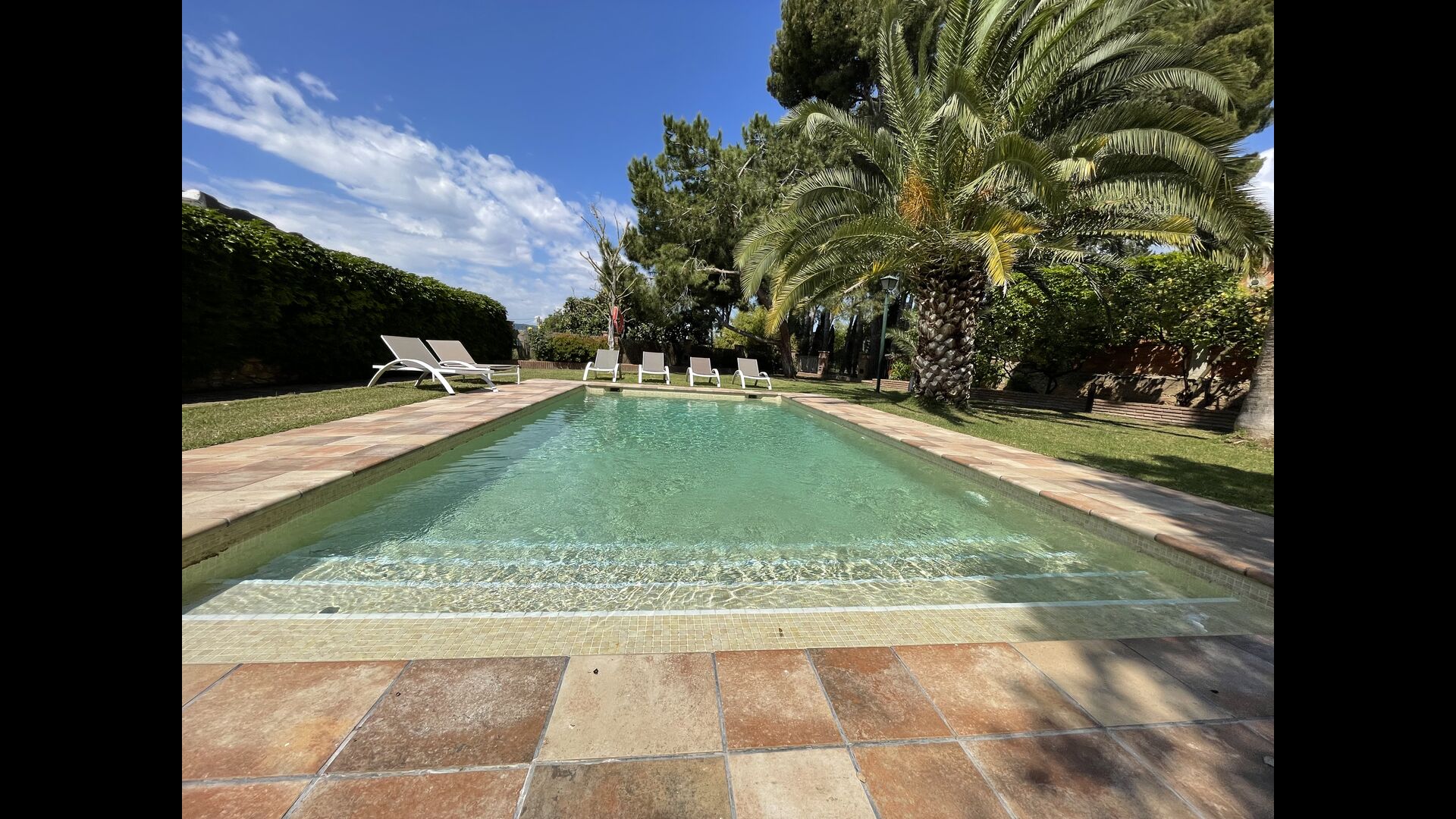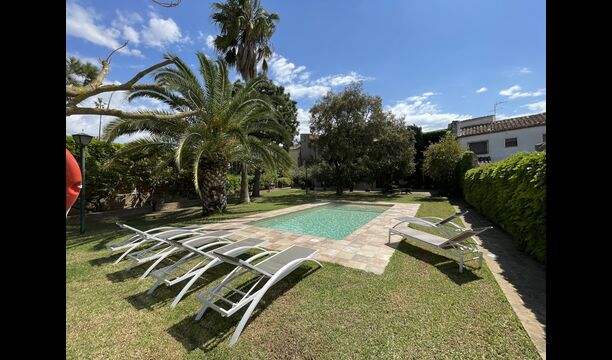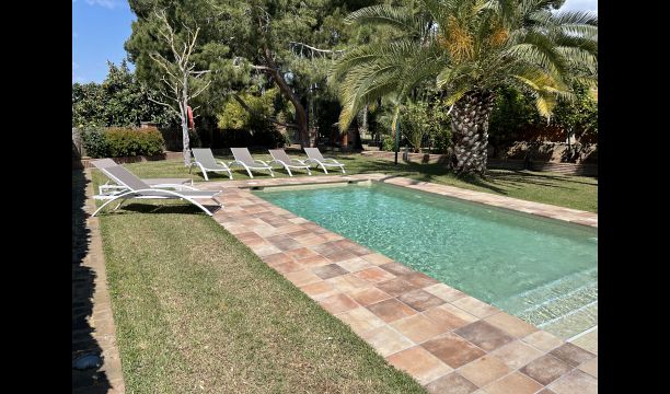 El jardín es grande y muy acogedor con la piscina (8 x 4 metros) en el centro y visible desde la casa y la terraza.