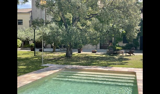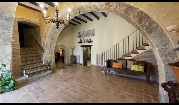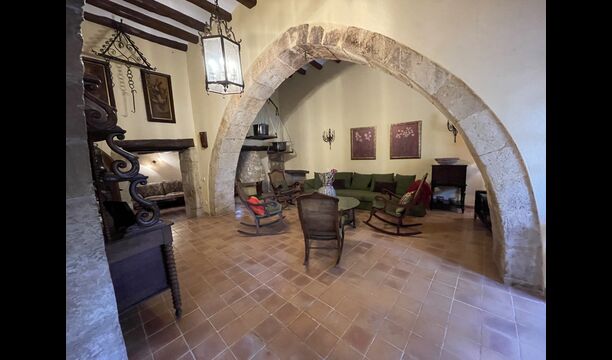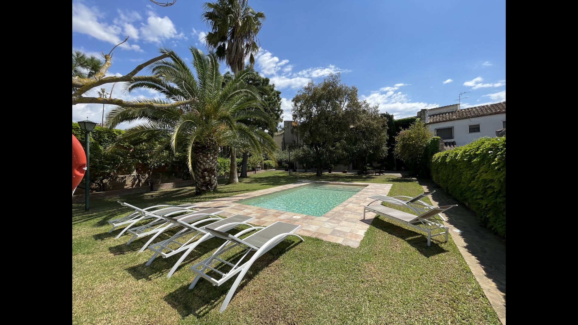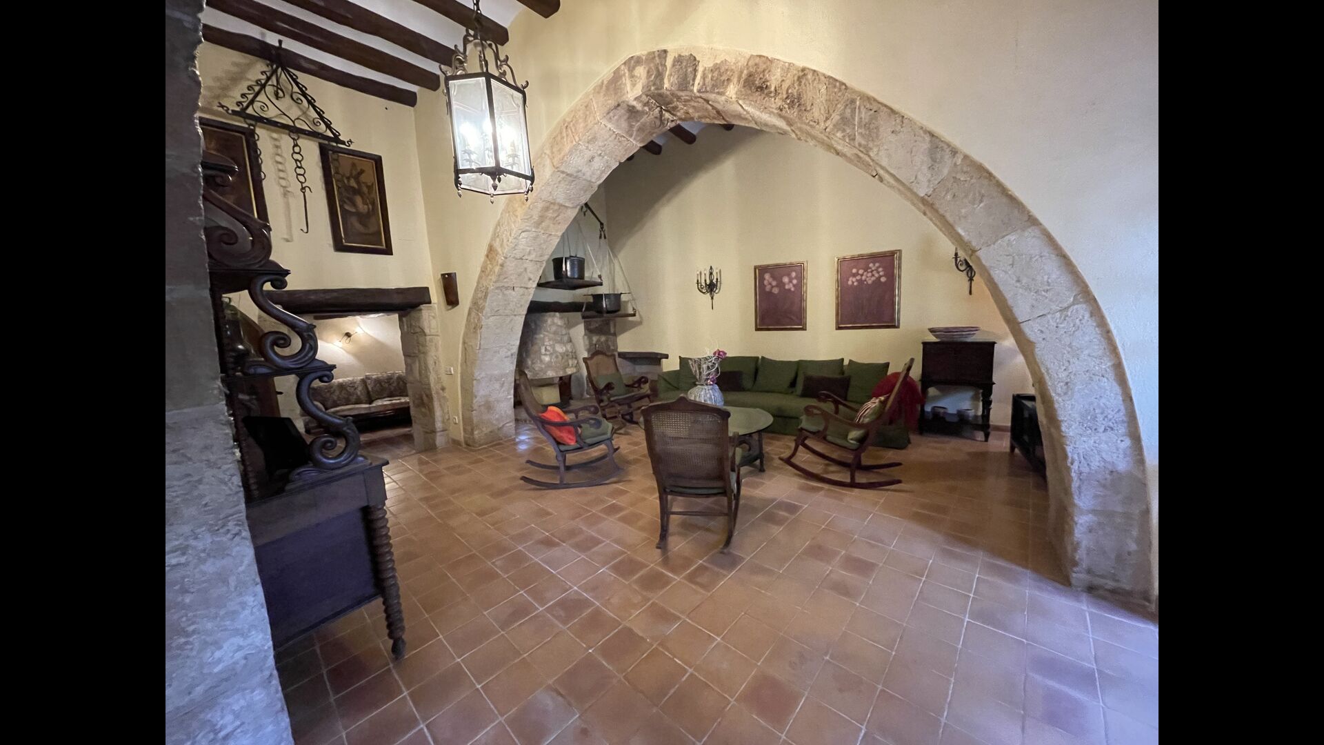 Alójese en esta hermosa e histórica mansión con su gran jardín privado con piscina. Desde la calle del pueblo se accede al gran salón y al otro lado se encuentra el sorprendentemente tranquilo jardín con terraza en conexión directa con la cocina, la piscina y muchos rincones de sombra proporcionados por las palmeras y otros árboles.< /p>
