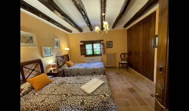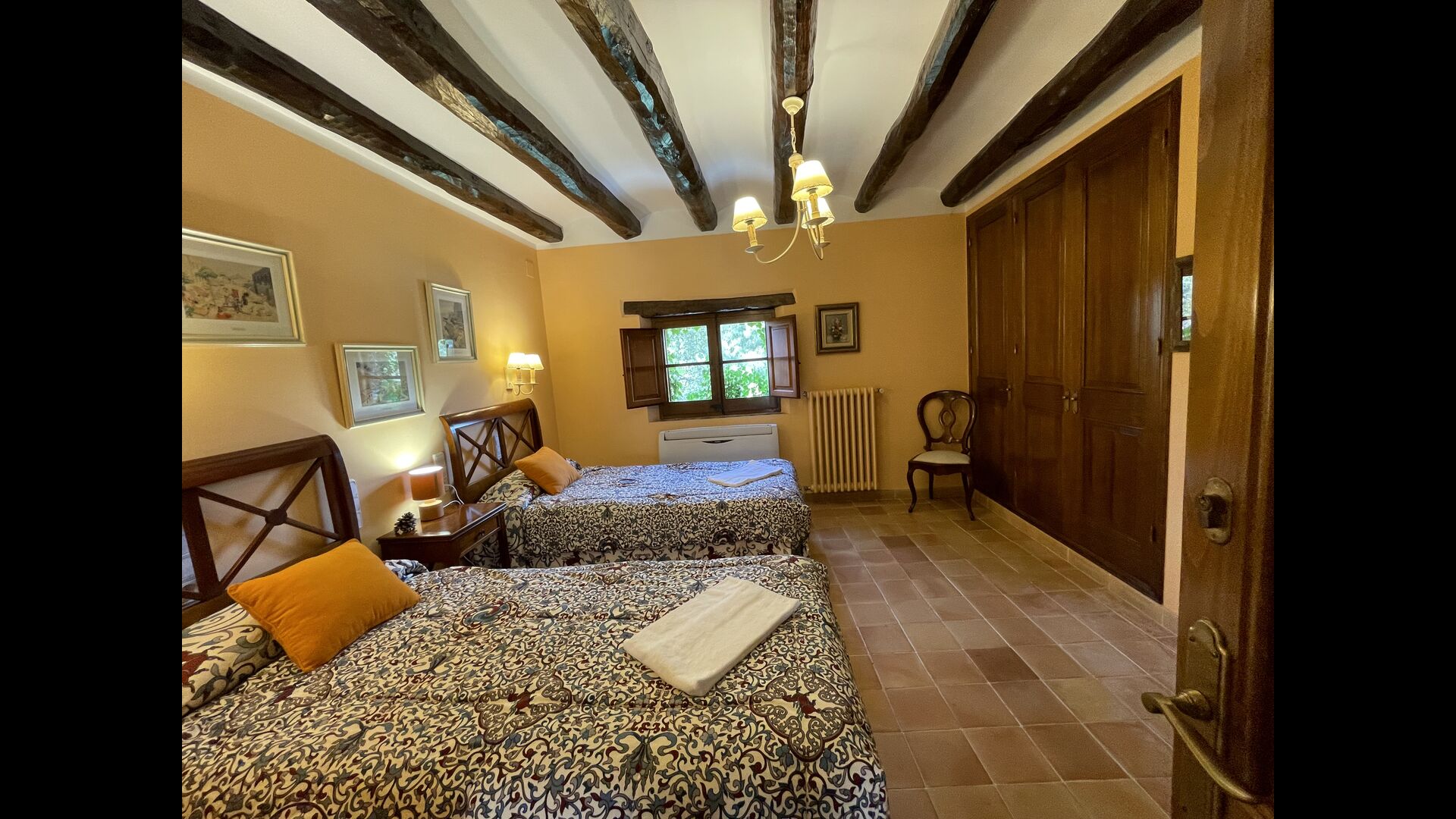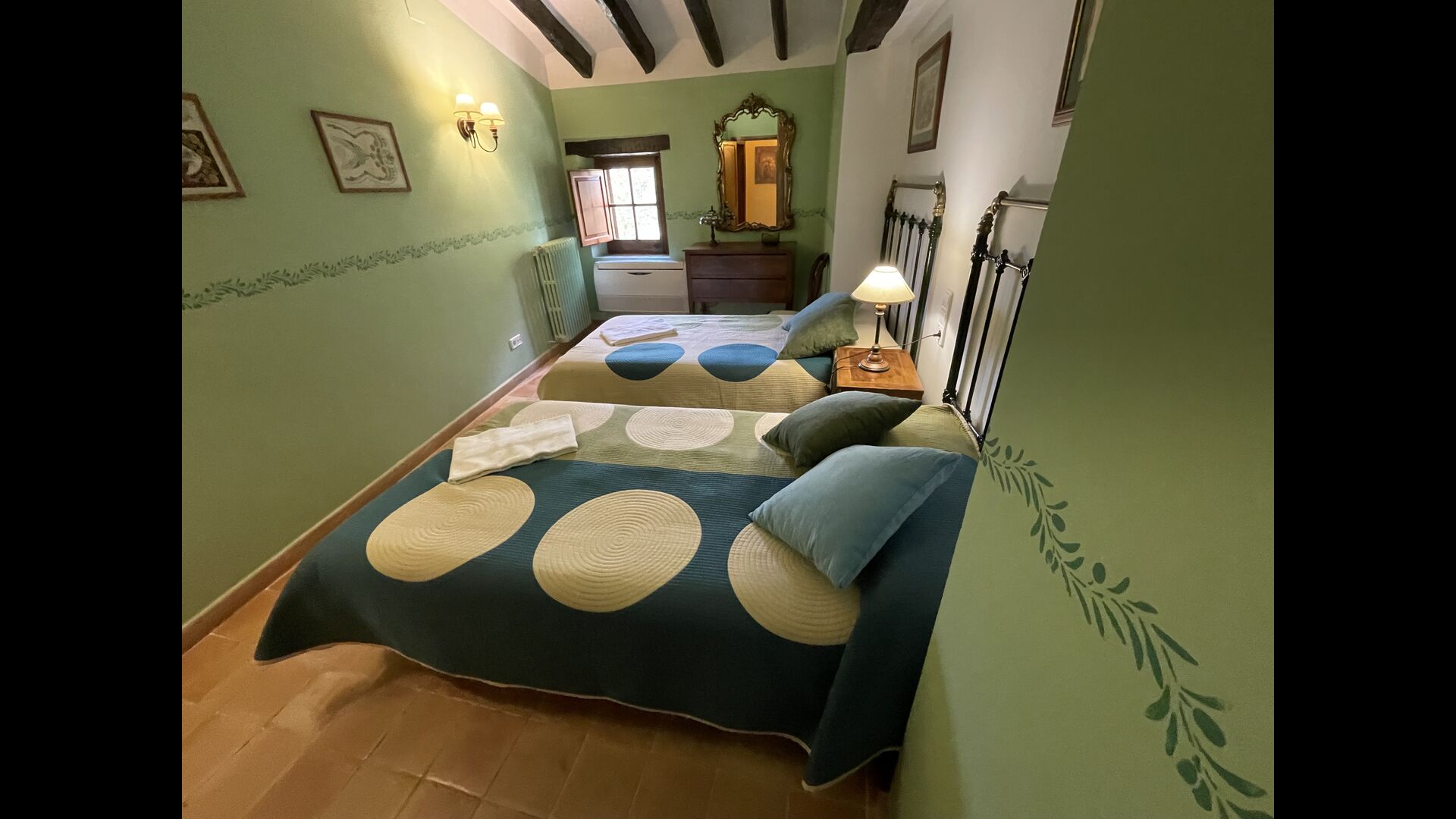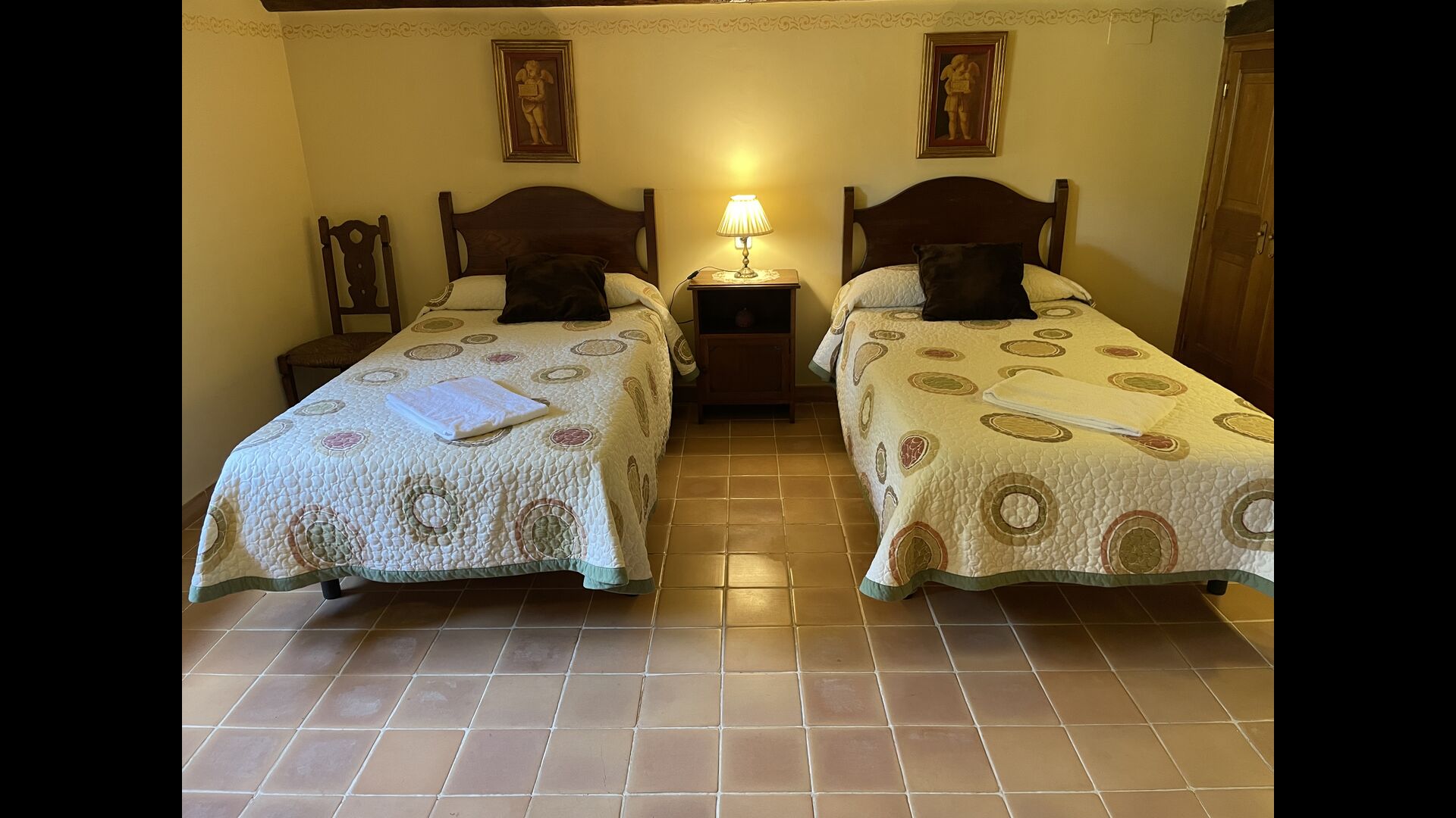 En la primera planta se encuentra una habitación doble con dos camas individuales (y espacio para una cama supletoria) y otro dormitorio con cama de matrimonio. Hay un baño compartido con ducha entre las dos habitaciones.