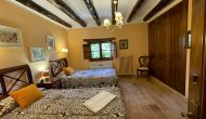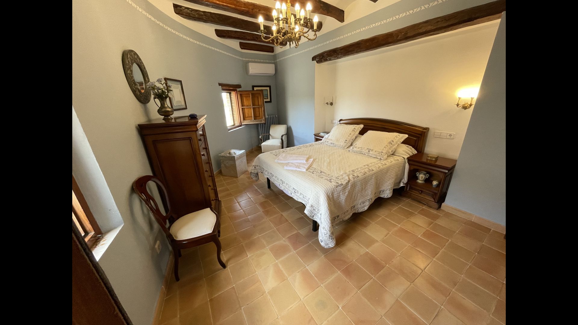 En la segunda planta, encuentras cuatro dormitorios más. Uno de ellos es un dormitorio principal con baño en suite, y luego hay 3 habitaciones dobles más que comparten otro baño. También hay una sala de estar con balcón a la calle del pueblo.