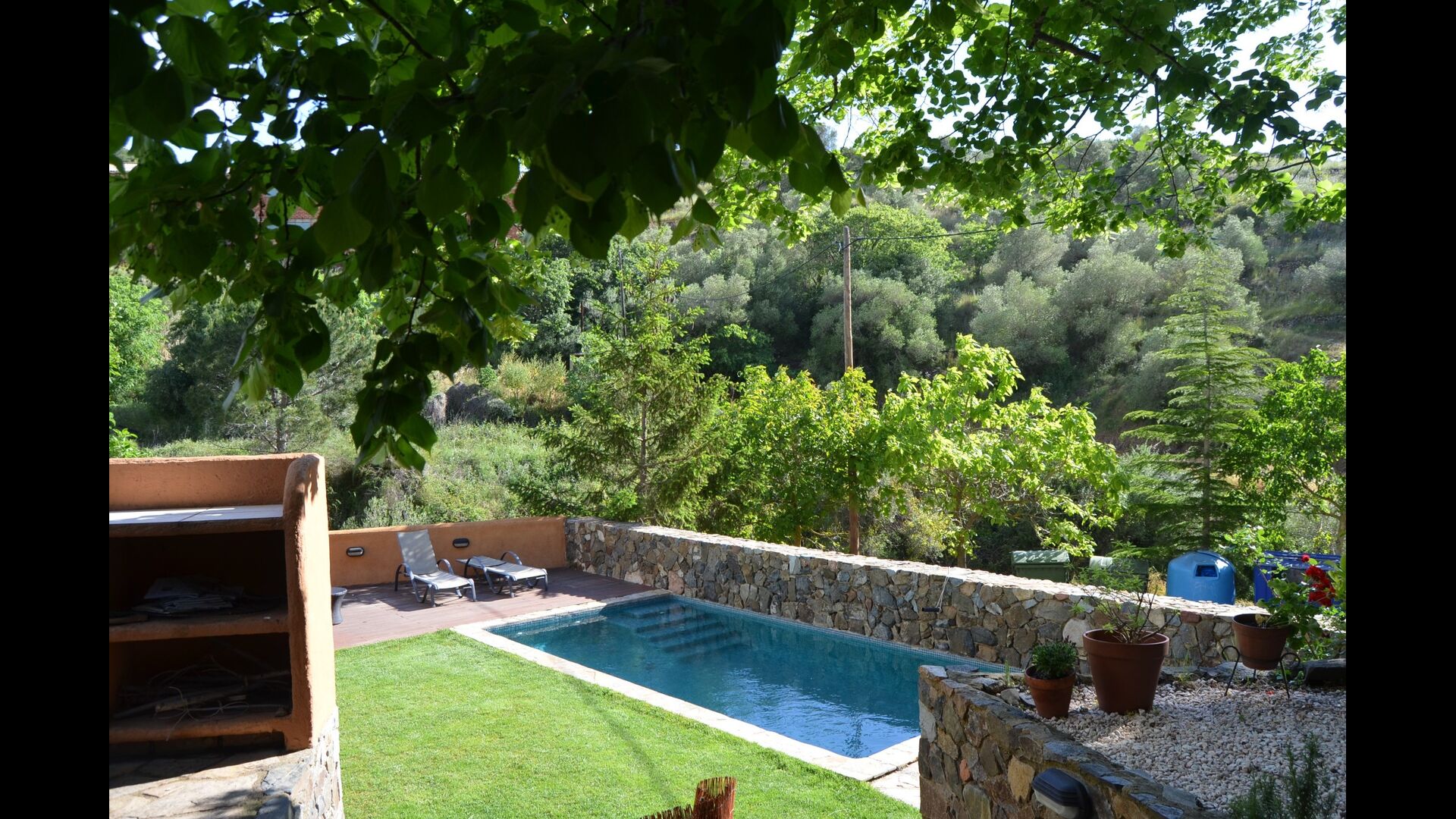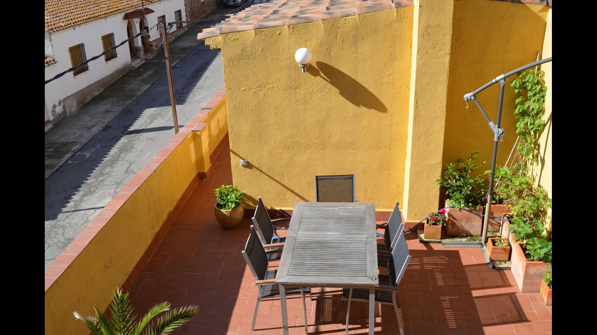 Aunque la casa es una casa unifamiliar, está situada como la última casa del pueblo. Por lo tanto, la casa ofrece muchas oportunidades para pasar las vacaciones al aire libre en el hermoso verano catalán. También hay un par de pinos que brindan sombra y donde puedes disfrutar de la vida en la hamaca. Para los niños hay columpios y tobogán. Debajo, está el jardín con una piscina donde puede refrescarse y los niños pueden jugar. También hay un futbolín. La casa tiene una conexión a Internet WIFI disponible de forma gratuita.