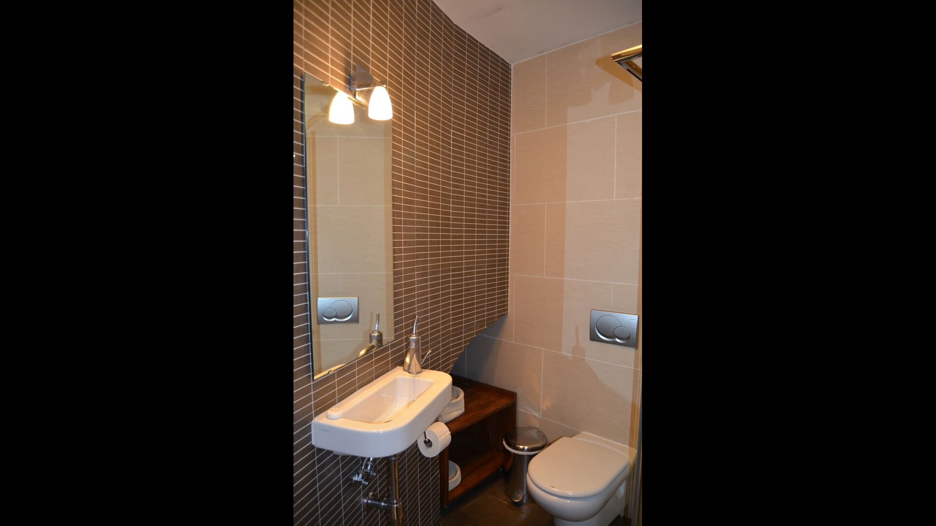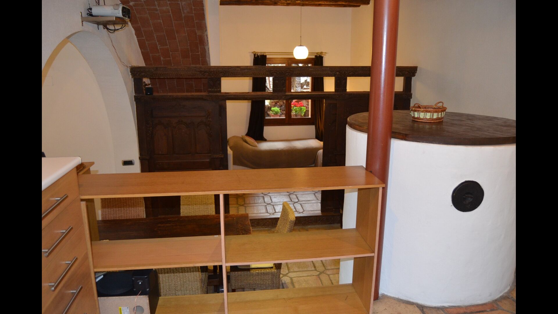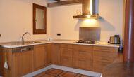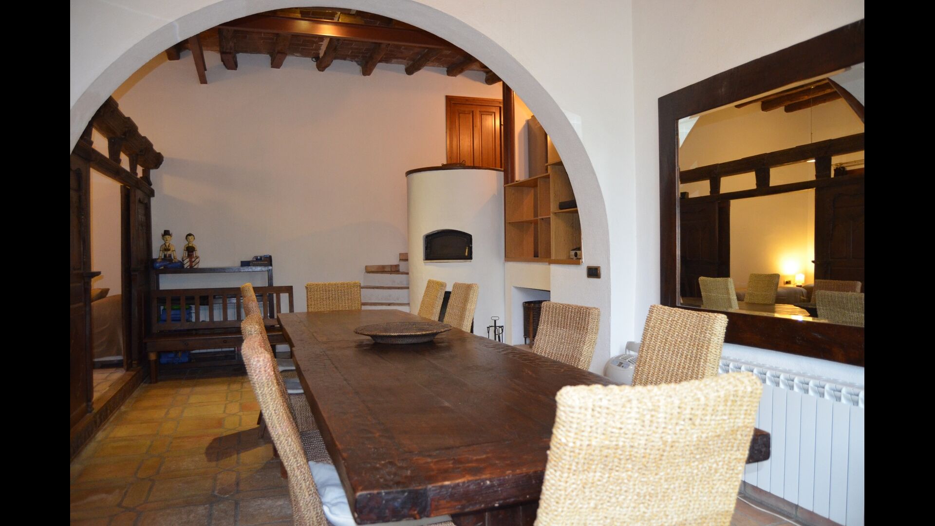La planta baja tiene 2 habitaciones dobles, un baño y un gran comedor o sala de reuniones con espacio para 15 personas, una estufa de mampostería y una cocina abierta con acceso al jardín. Esta sala cuenta con un proyector y equipo de homecinema. Una de las habitaciones tiene una inspiración oriental y se cierra con una puerta corredera de madera original, bellamente tallada en Indonesia.