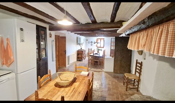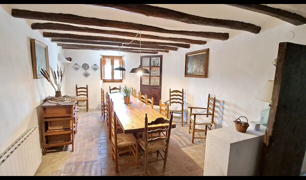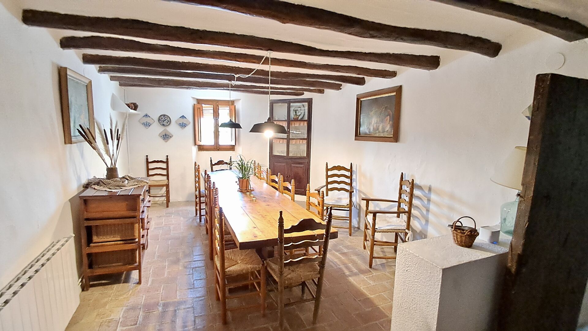 El  La cocina está equipada con todas las comodidades modernas como lavavajillas, microondas, cafetera, etc. La cocina ha sido restaurada al estilo auténtico. El comedor está conectado con la cocina. Casa Mas del Pi tiene tres plantas y la cocina se encuentra en la planta baja, por lo que es útil cuando quieres comer al aire libre.