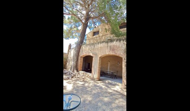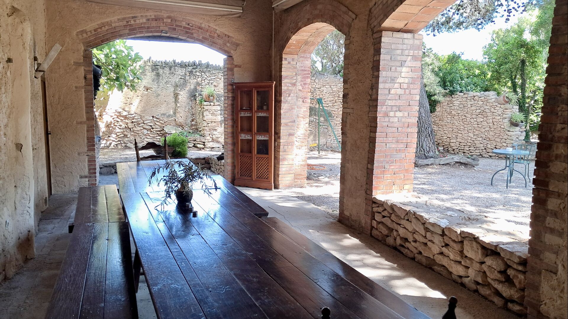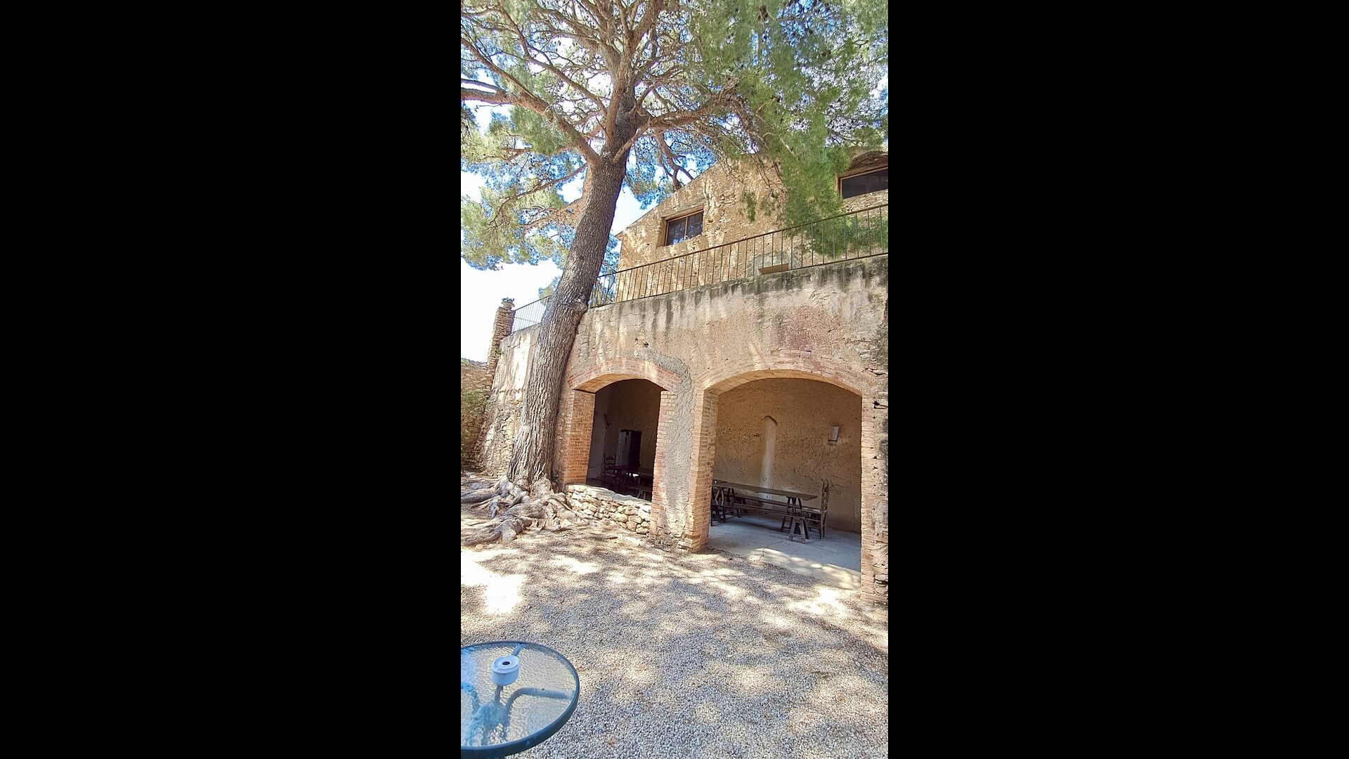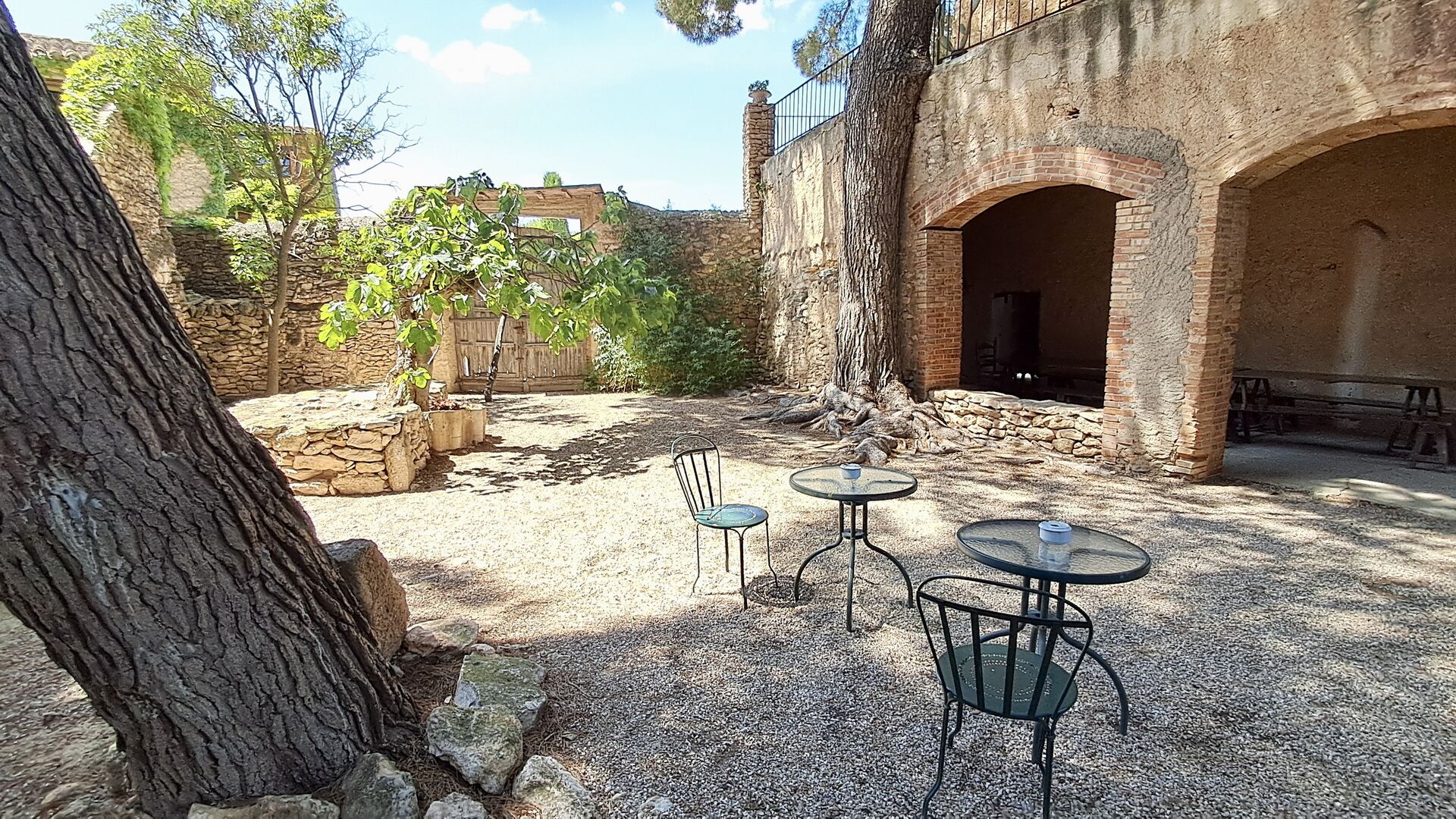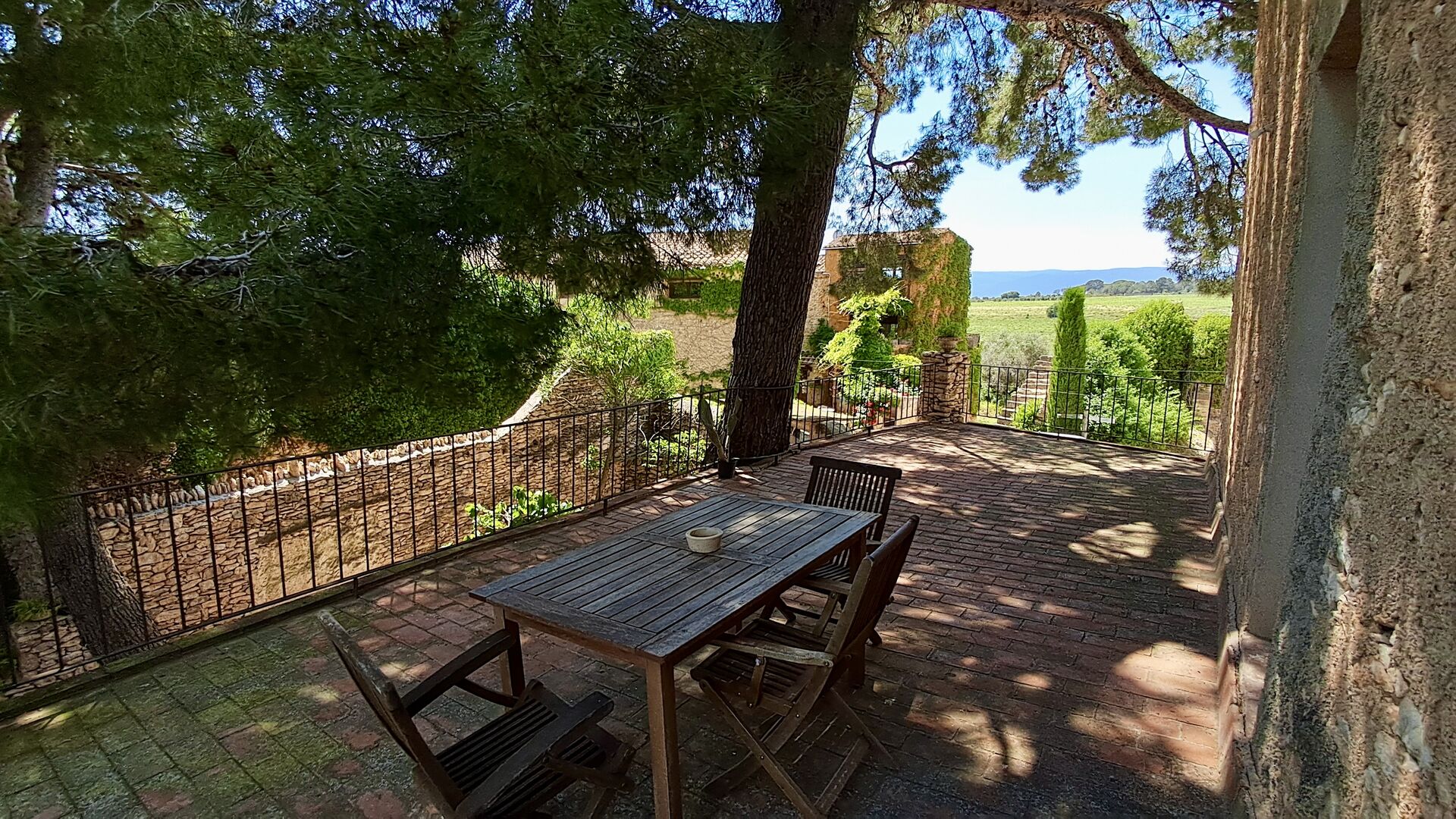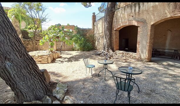La casa tiene un patio clásico catalán cerrado, con algunas mesas y también hay una gran terraza cubierta con barbacoa. Que esté cubierto será de gran beneficio en esos calurosos días de verano en los que se agradece un poco de sombra. También se conserva un lavabo antiguo con bonitos azulejos en la terraza, lo que a su vez crea un ambiente catalán único y auténtico. En la segunda planta también hay otra terraza y en la casa hay un pocas terrazas francesas.
