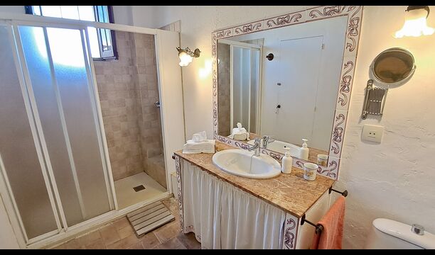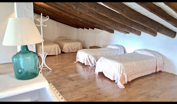 Casa del Pi cuenta con un amplio y tradicional salón y5 amplios dormitorios. Todas las habitaciones son únicas y, nuevamente, aquí se cuida cada detalle. El tamaño de las habitaciones es ideal cuando estás fuera como un grupo grande porque hay espacio y un gran ambiente si deseas descansar un poco de vez en cuando. También hay 3 bonitos baños y un aseo para invitados en la casa.