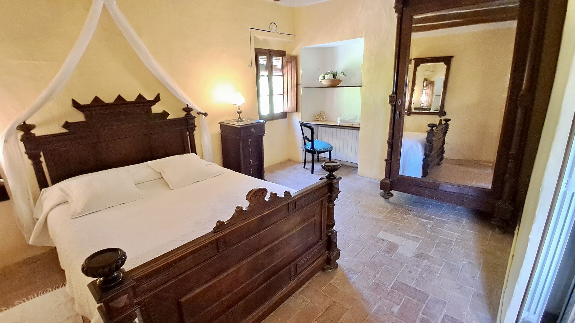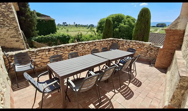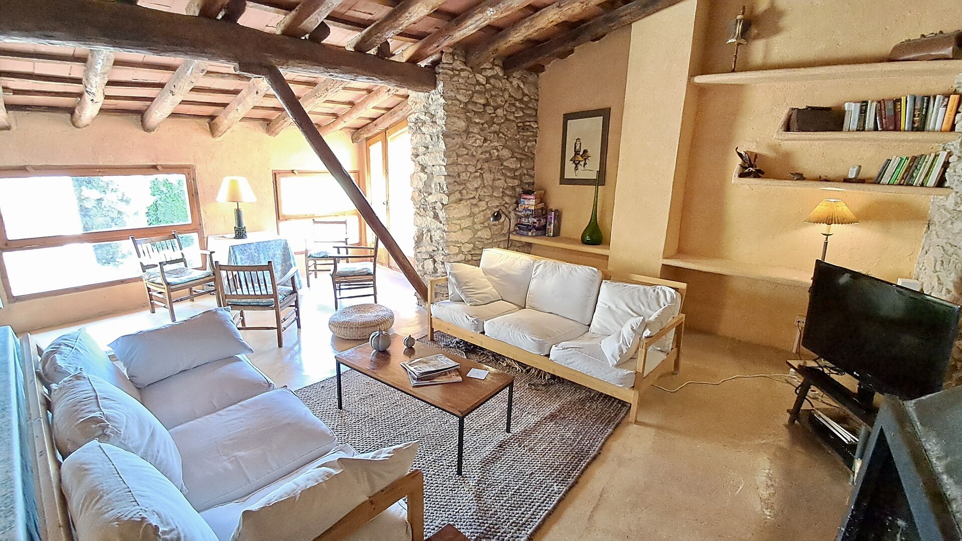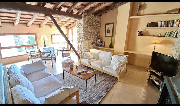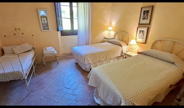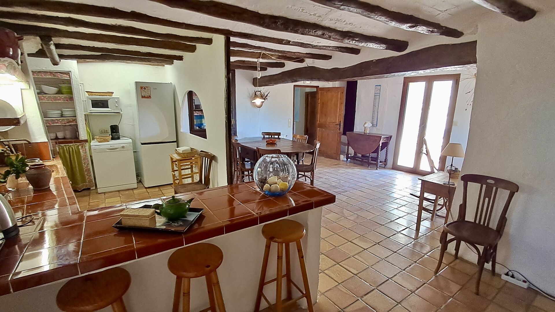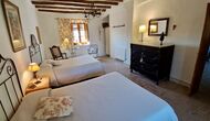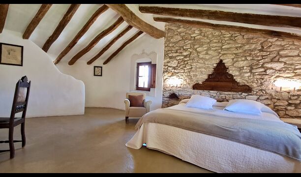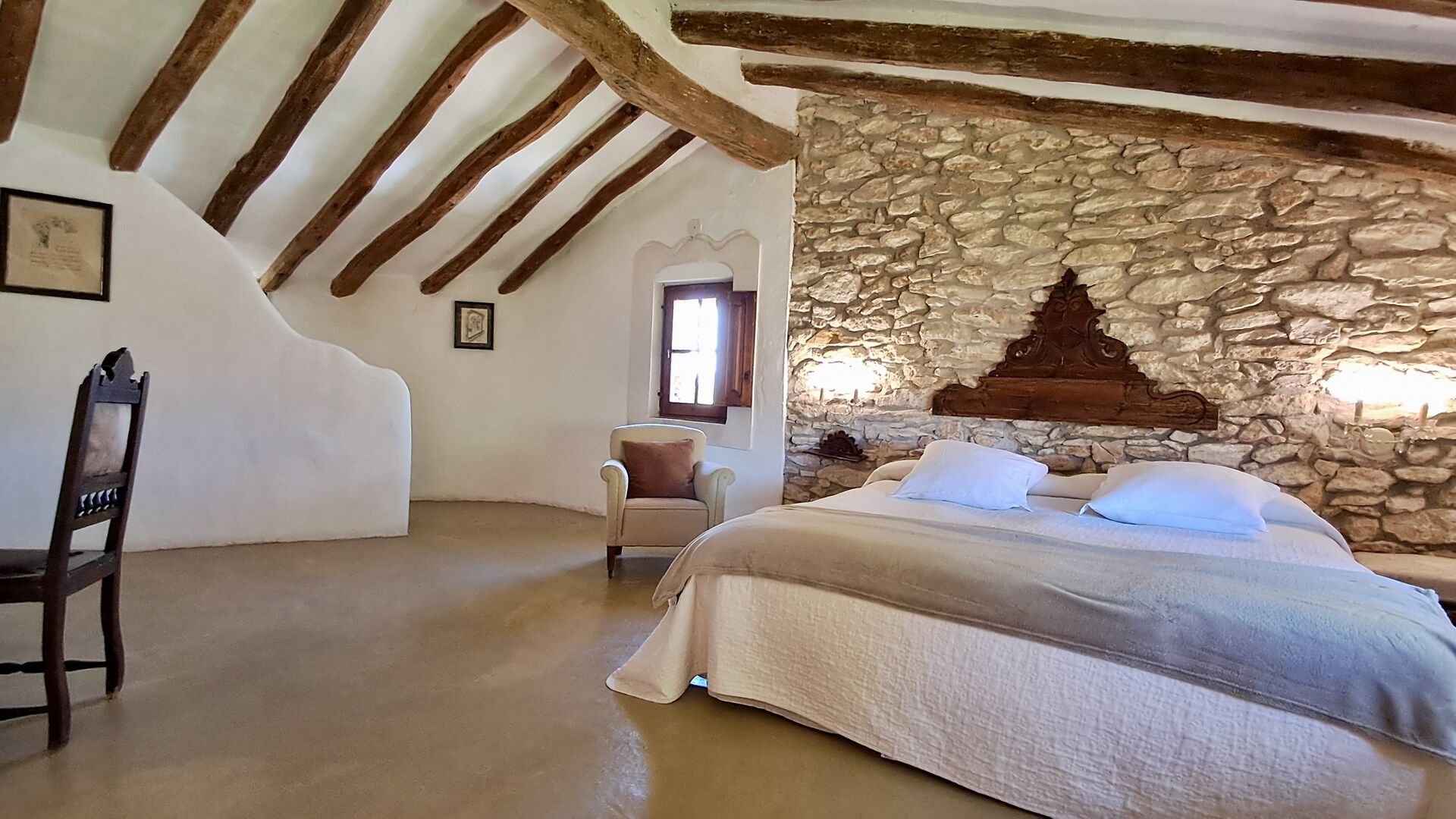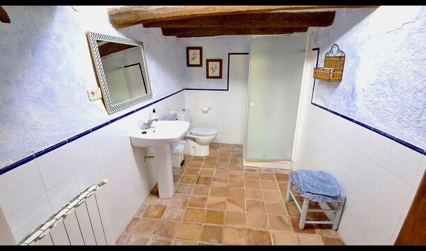 En el primer piso, se encuentra la cocina y el comedor abierto con acceso a una espaciosa terraza en el primer piso con excelente vista y una barbacoa. Aquí, todos pueden comer afuera, disfrutando de las cálidas noches catalanas. Además, hay 3 habitaciones grandes y muy espaciosas. Todos tienen un diseño diferente, pero todos tienen un alto nivel y un aspecto auténtico. Uno tiene una cama doble, uno tiene dos camas individuales y el tercero tiene dos camas dobles, por lo que es posible dormir 4 personas si es necesario. También en esta planta, hay un baño totalmente equipado. La cocina es como el resto de la casa de alta calidad, y tiene al mismo tiempo muebles rústicos y auténticos.