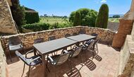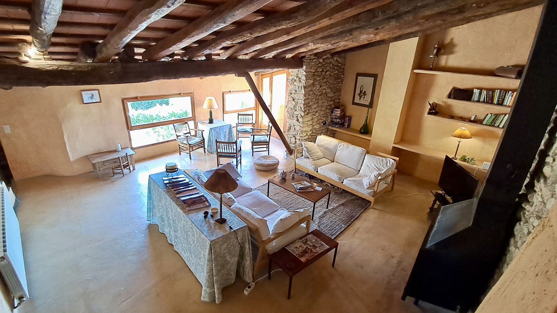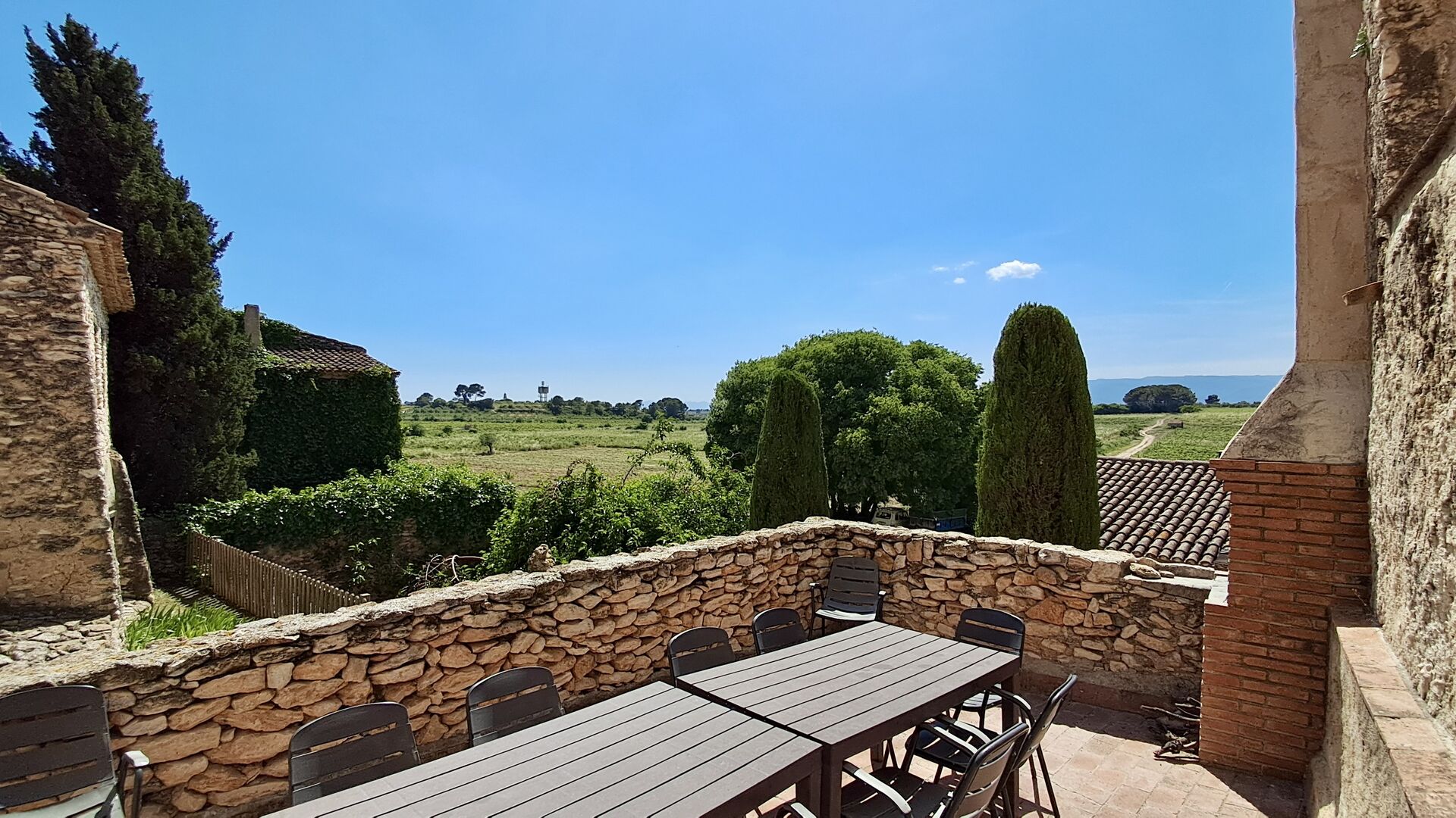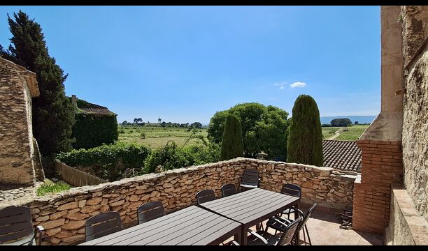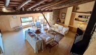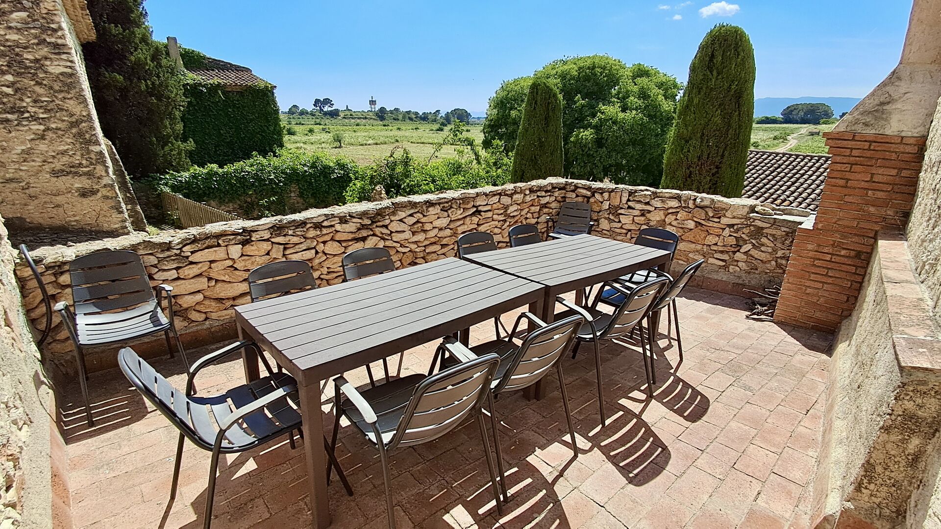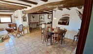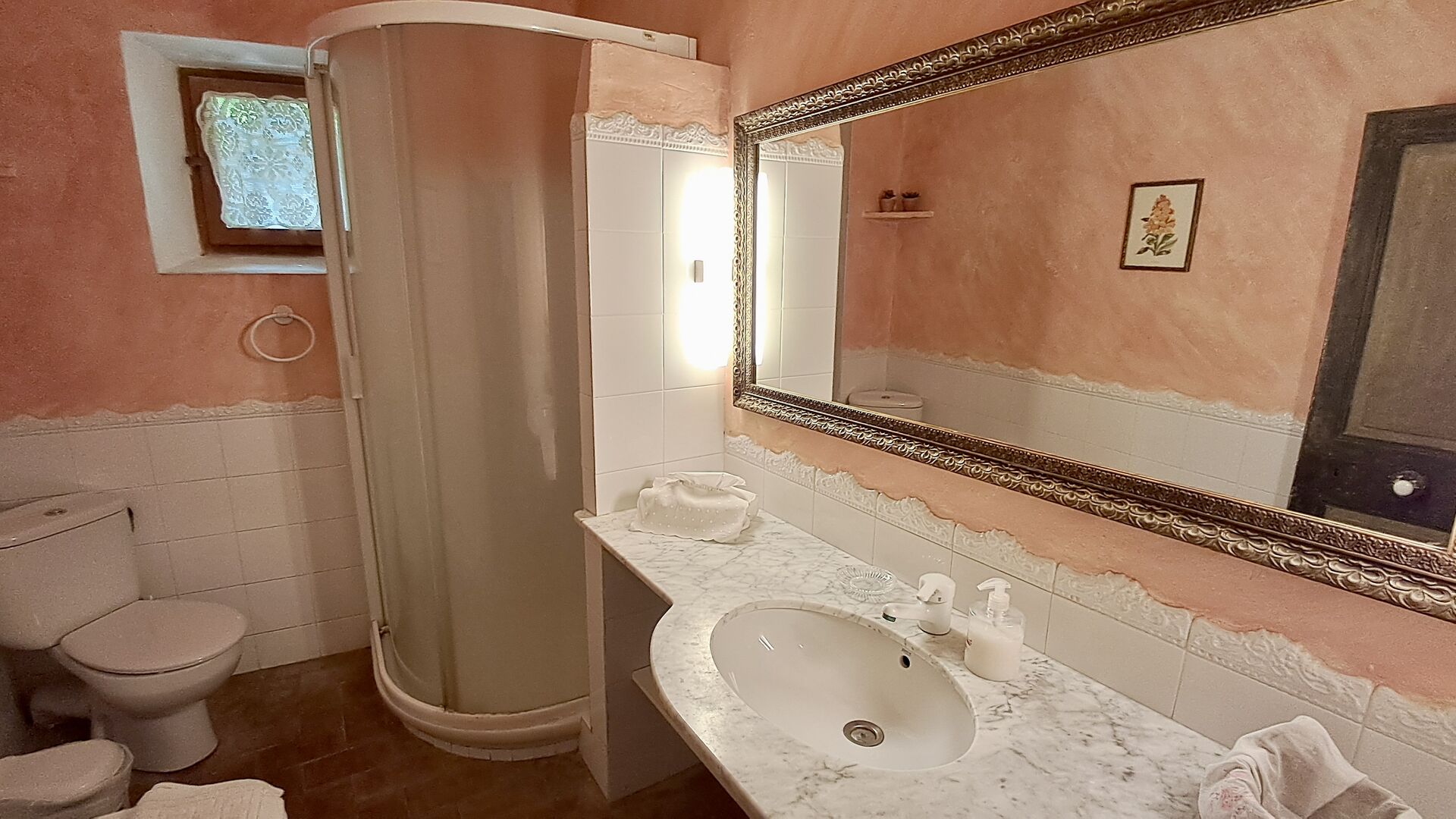 En el primer piso, se encuentra la cocina y el comedor abierto con acceso a una espaciosa terraza en el primer piso con excelente vista y una barbacoa. Aquí, todos pueden comer afuera, disfrutando de las cálidas noches catalanas. Además, hay 3 habitaciones grandes y muy espaciosas. Todos tienen un diseño diferente, pero todos tienen un alto nivel y un aspecto auténtico. Uno tiene una cama doble, uno tiene dos camas individuales y el tercero tiene dos camas dobles, por lo que es posible dormir 4 personas si es necesario. También en esta planta, hay un baño totalmente equipado. La cocina es como el resto de la casa de alta calidad, y tiene al mismo tiempo muebles rústicos y auténticos.