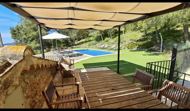 Para llegar a la piscina, debe cruzar una pequeña carretera que solo usan usted y los propietarios, y luego subir por detrás de la casa. Se instala sobre la casa, lo que hace que la vista sea aún mejor. La piscina es un éxito seguro para los niños que seguramente pasarán mucho tiempo en ella.
