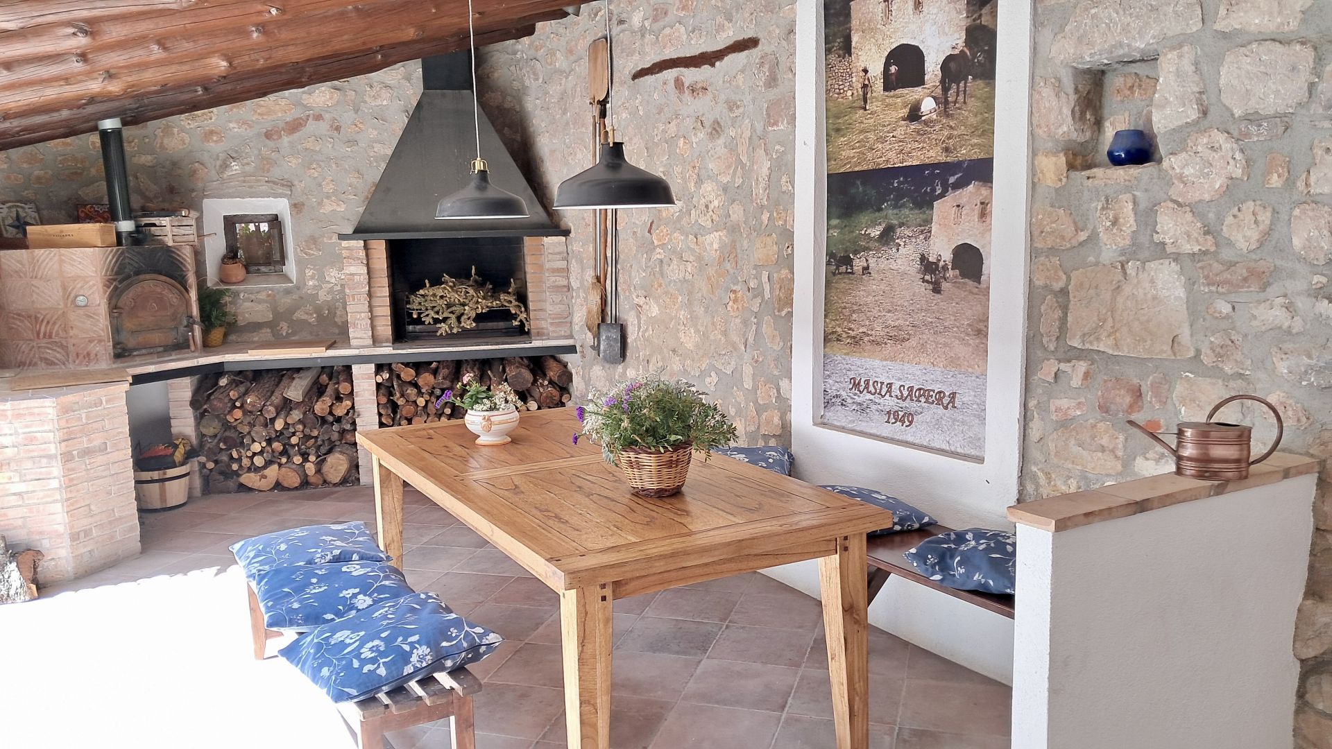 Desde la cocina se accede a un acogedor jardín, donde se puede disfrutar de la comida casera en el exterior. También hay una parrilla de barbacoa en el jardín, por lo que es posible cocinar su comida afuera. El jardín está muy bien cuidado y equipado con tumbonas, por lo que se puede disfrutar plenamente del sol catalán. Sin embargo, si el sol es demasiado, hay una mesa acogedora a la sombra debajo de un gran árbol en el jardín. En todas partes del jardín se puede disfrutar de la hermosa vista sobre los campos de vino.