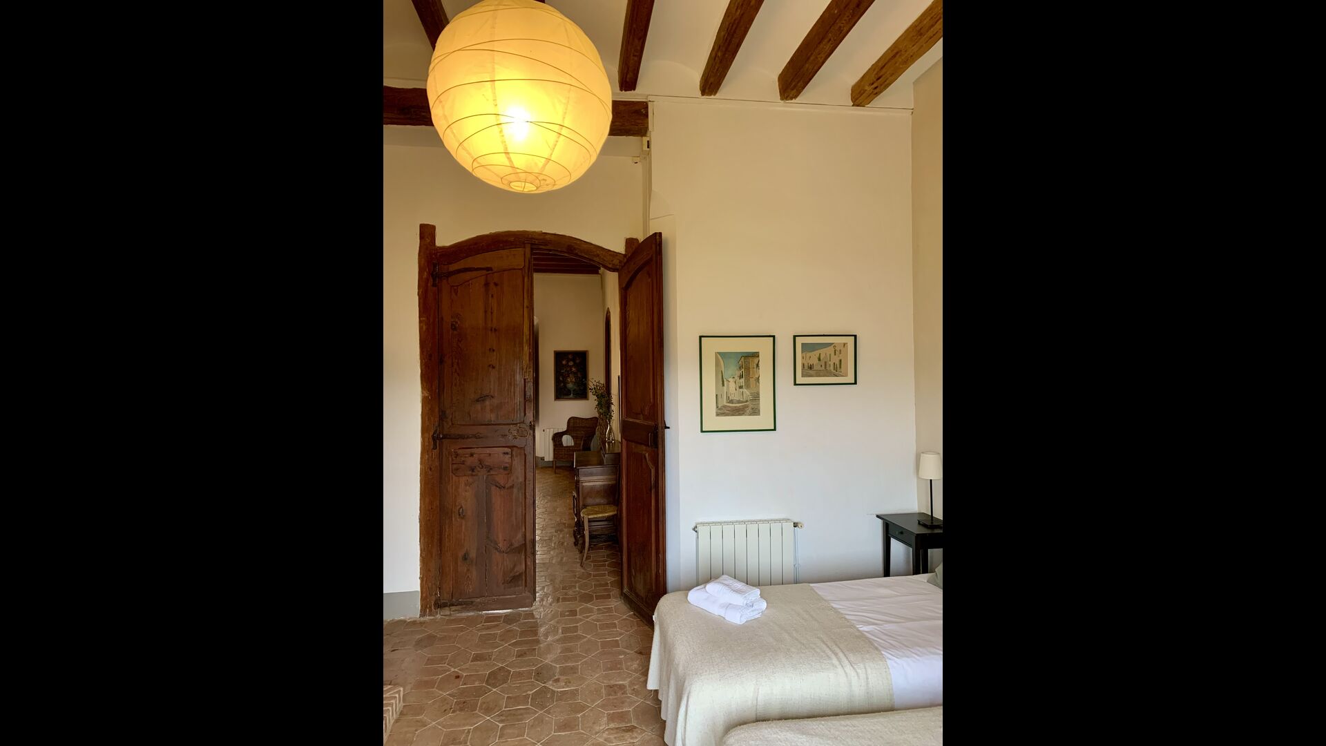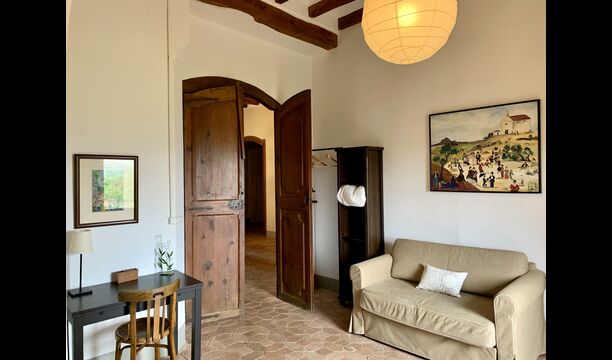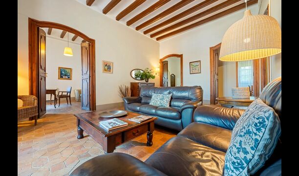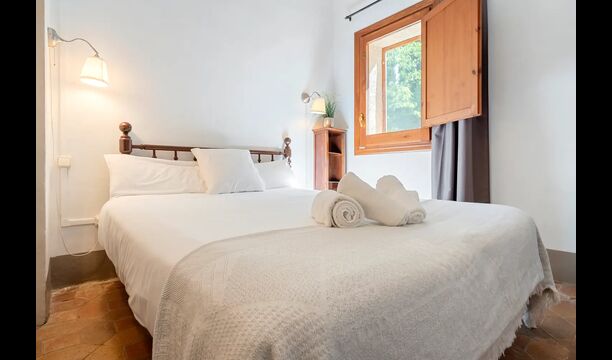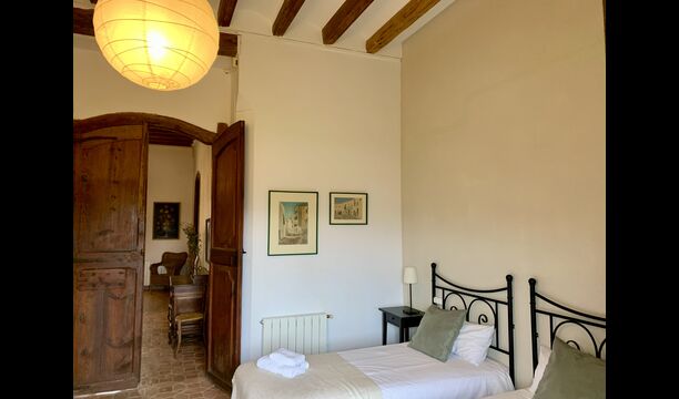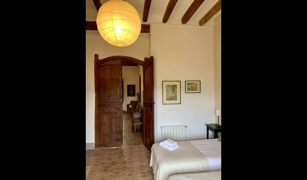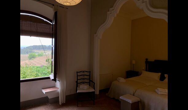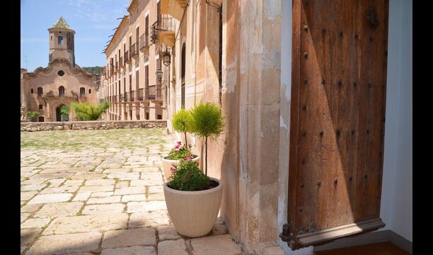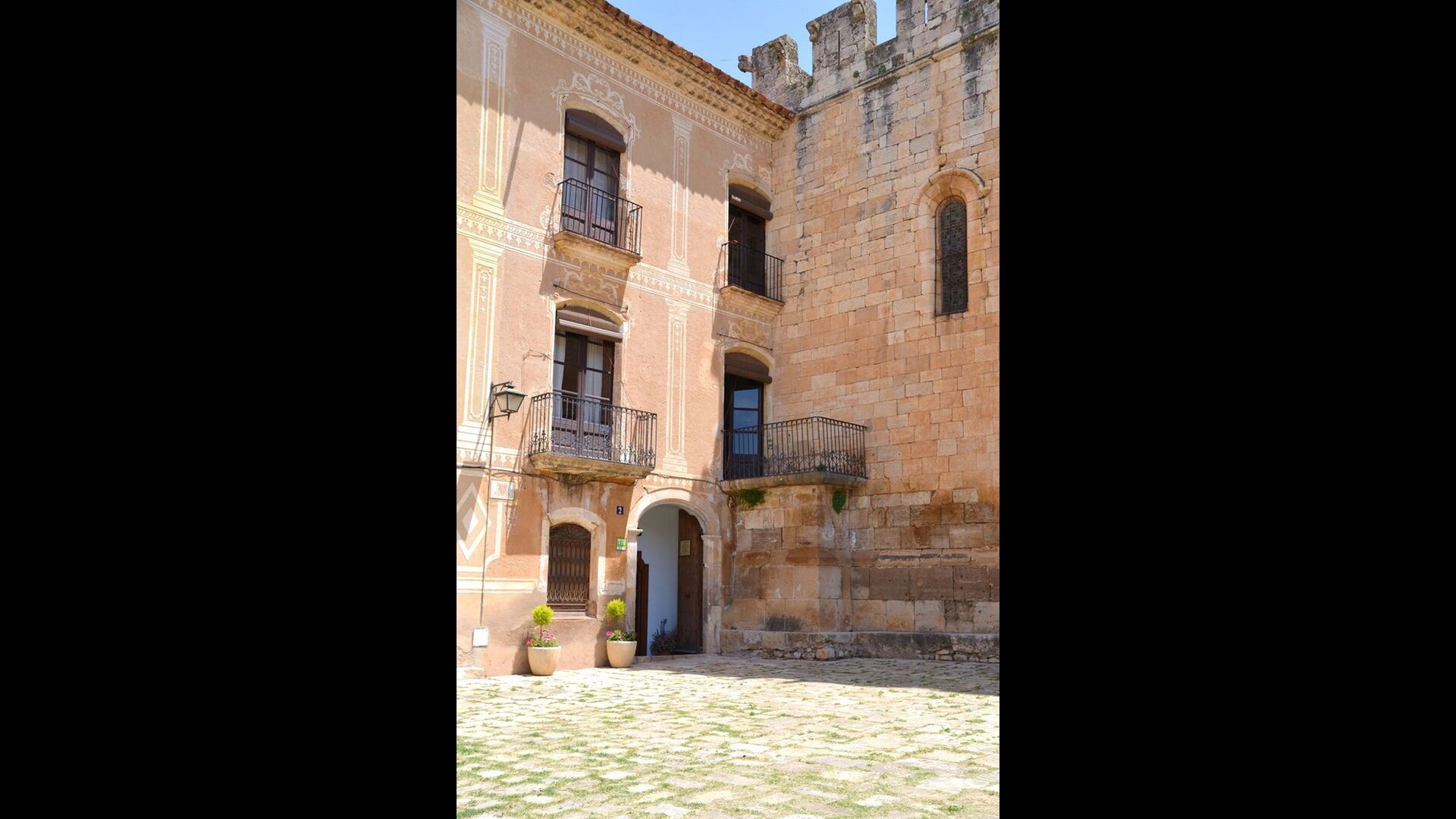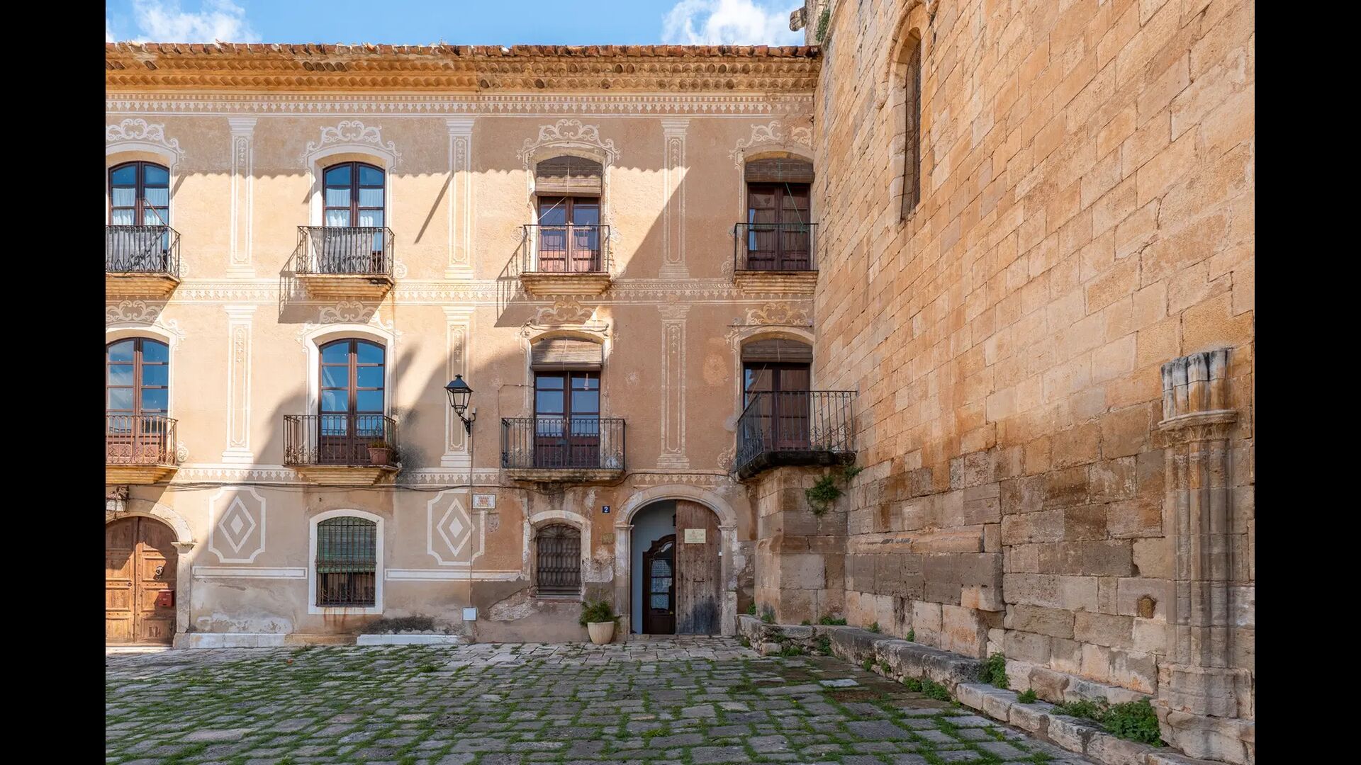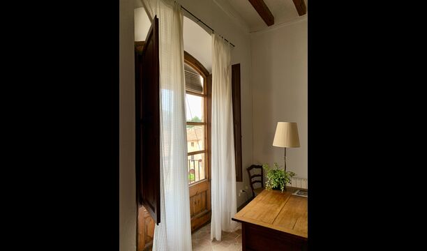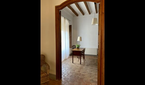 Un alojamiento único en un sitio y entorno singulares.- Disfrutar de un edificio construido en el siglo XVIII, de agradables proporciones y simetría, de habitaciones amplias con alcoba, con balcones y ventanas de grandes dimensiones y visión panorámica, así como de techos envigados y techados de baldosa que forman los típicos pavimentos de Santes Creus.