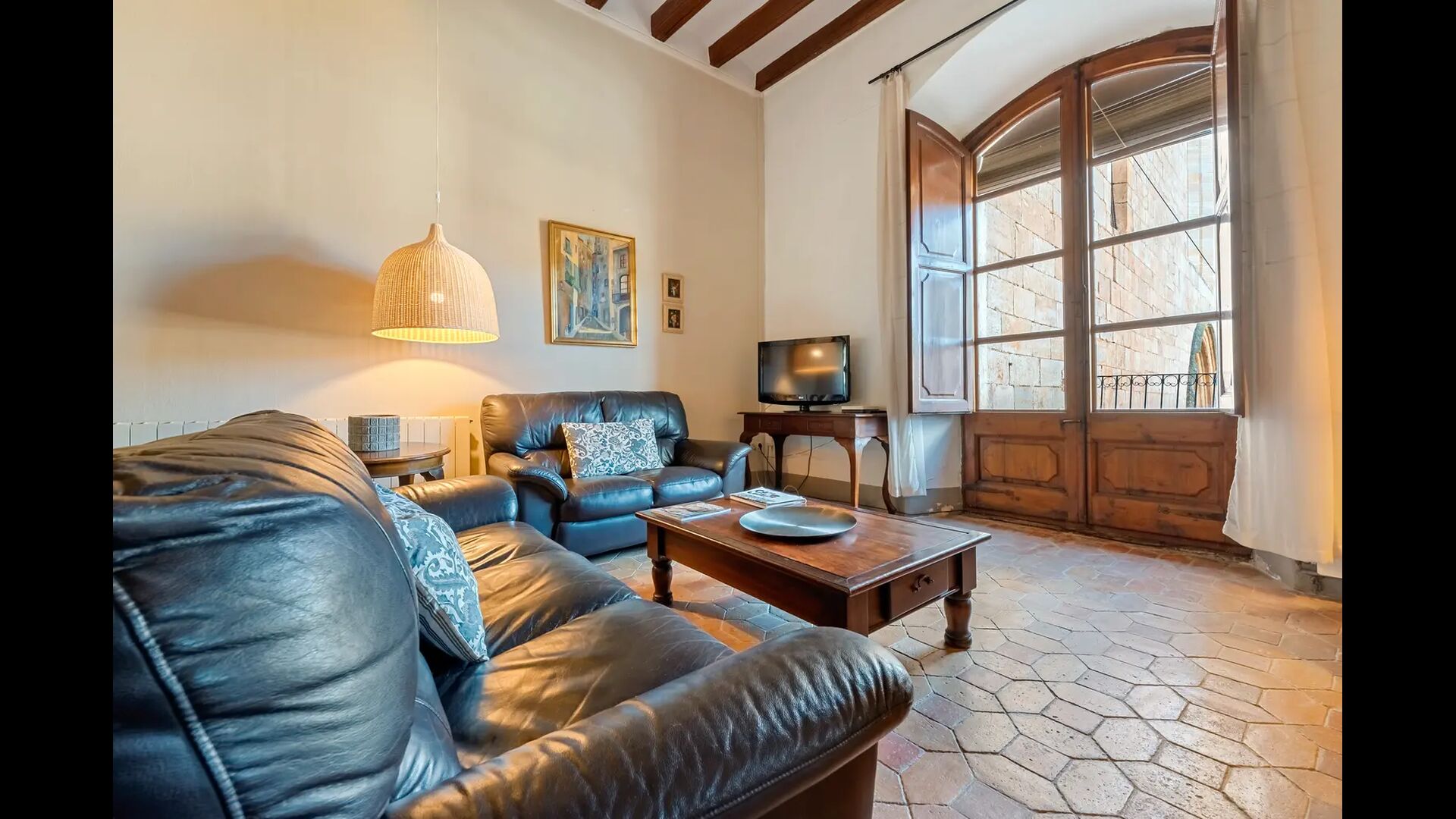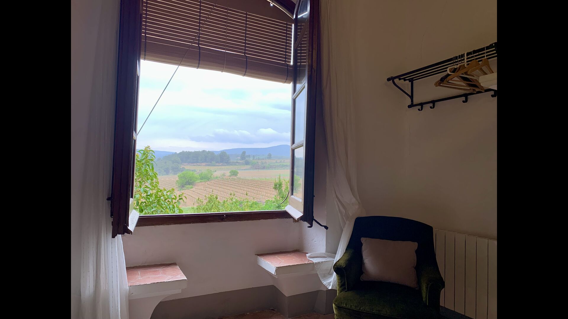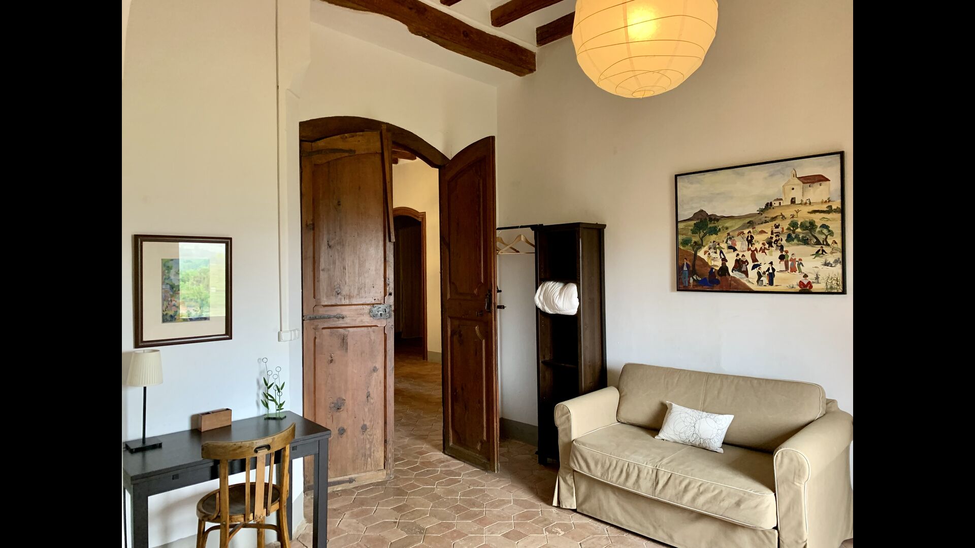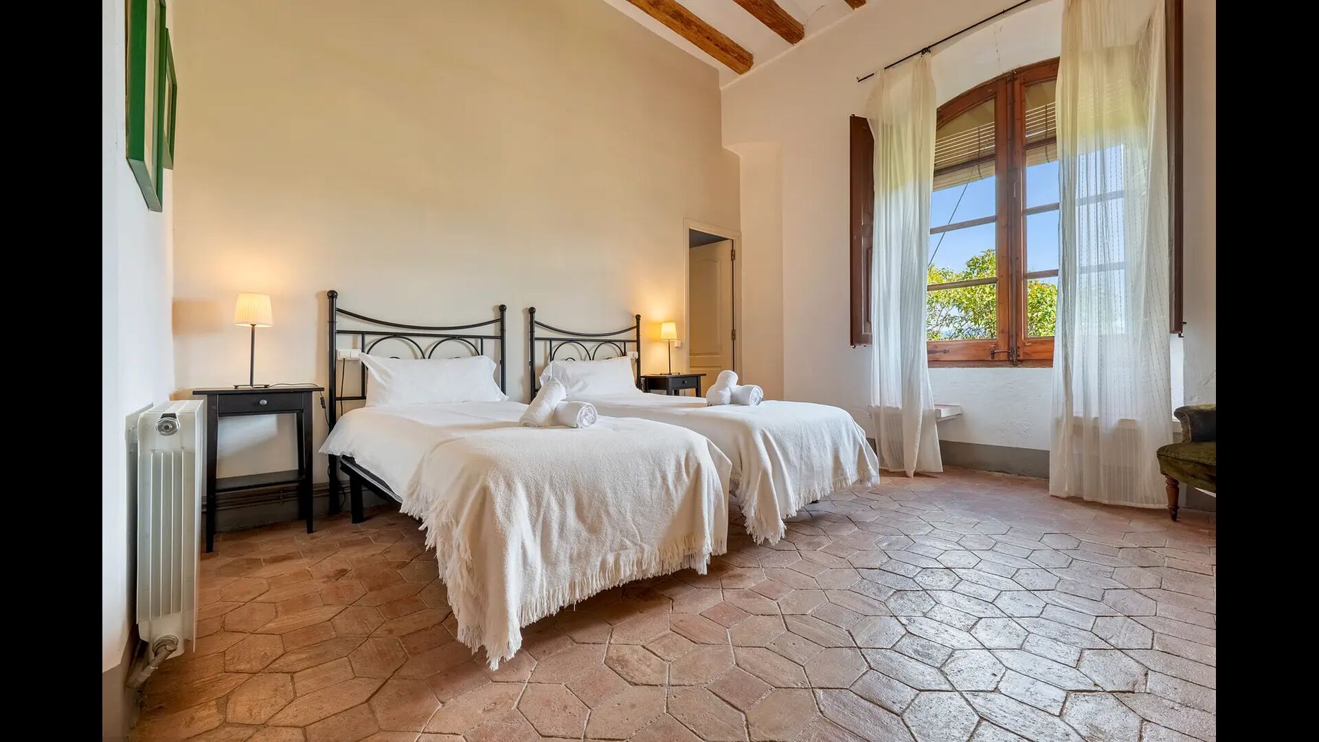 Un alojamiento único en un sitio y entorno singulares.- Disfrutar de un edificio construido en el siglo XVIII, de agradables proporciones y simetría, de habitaciones amplias con alcoba, con balcones y ventanas de grandes dimensiones y visión panorámica, así como de techos envigados y techados de baldosa que forman los típicos pavimentos de Santes Creus.