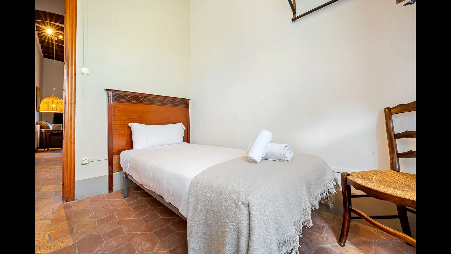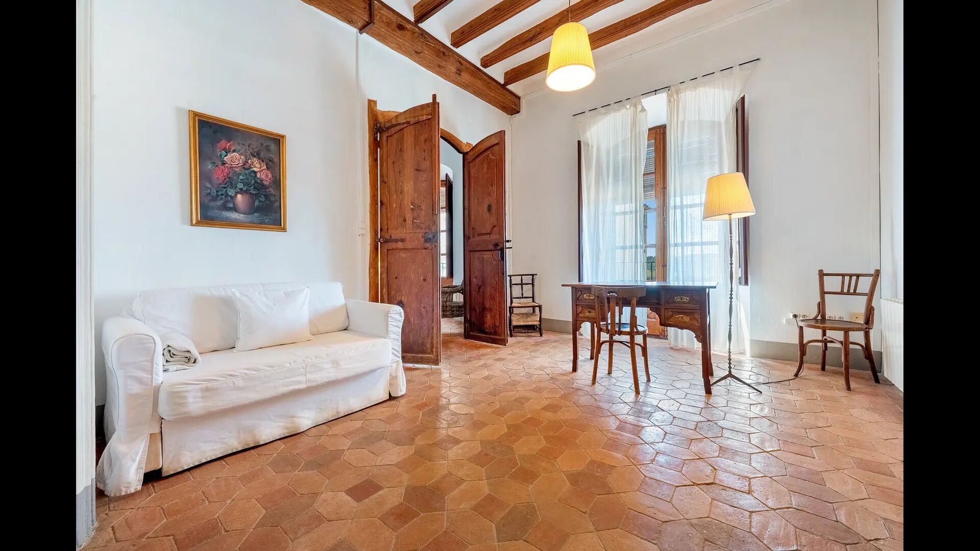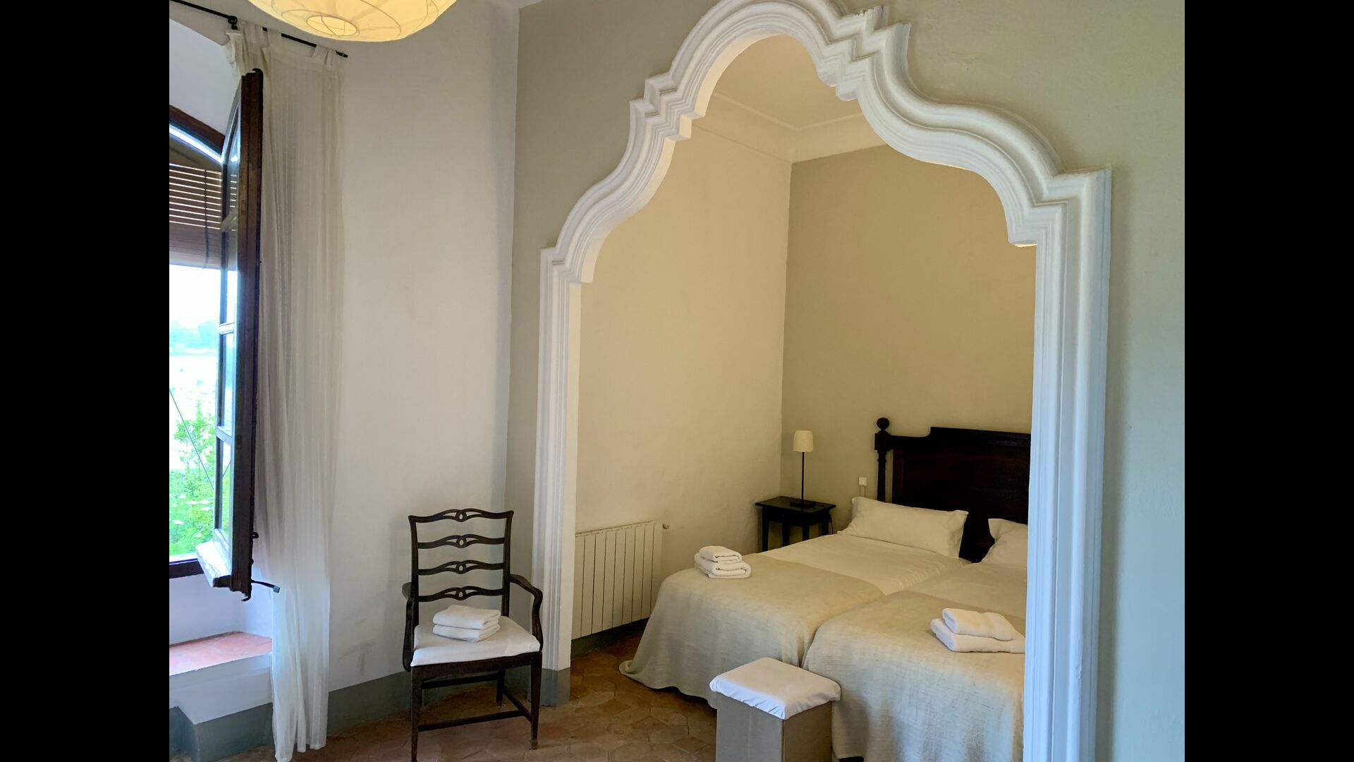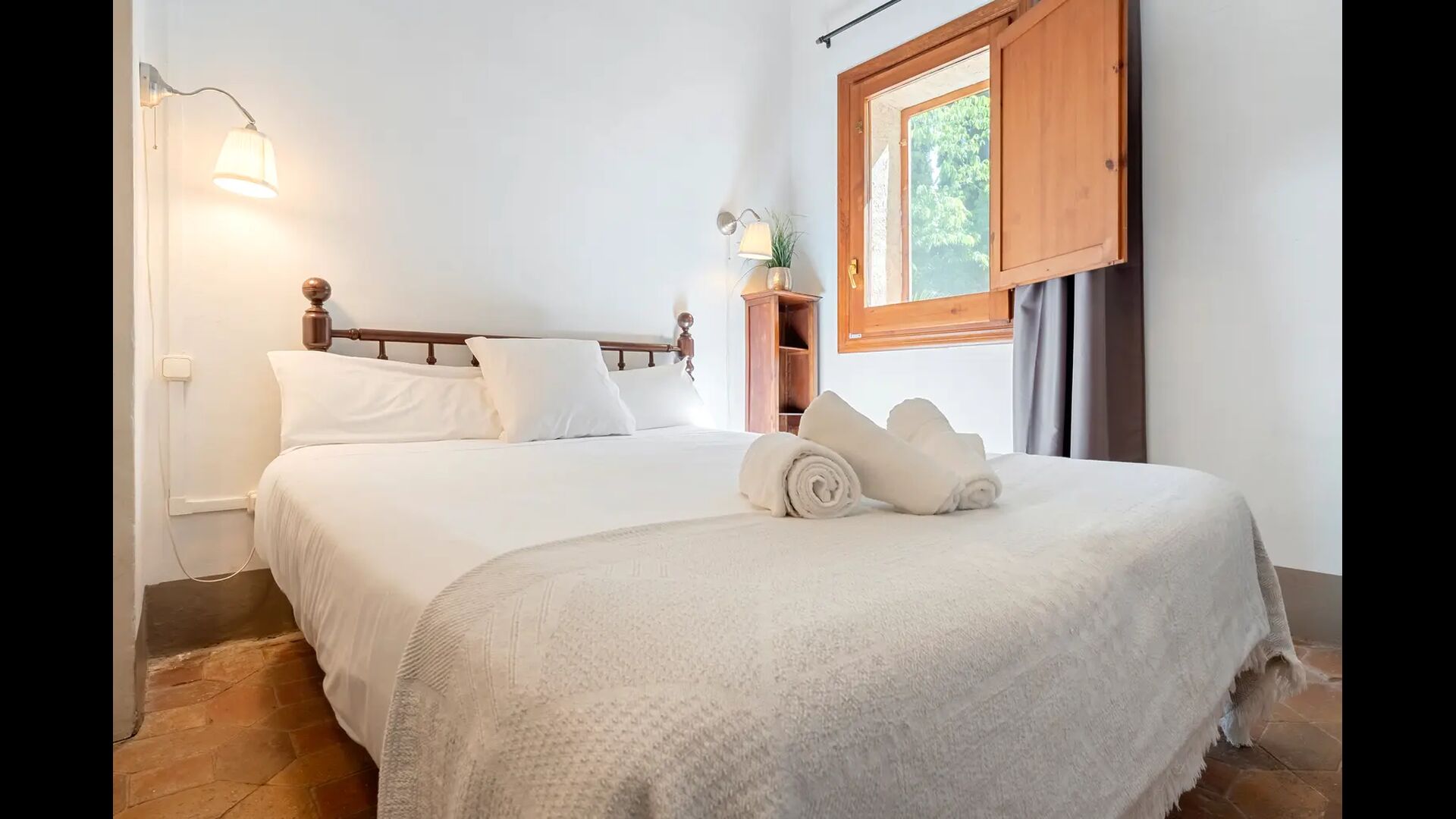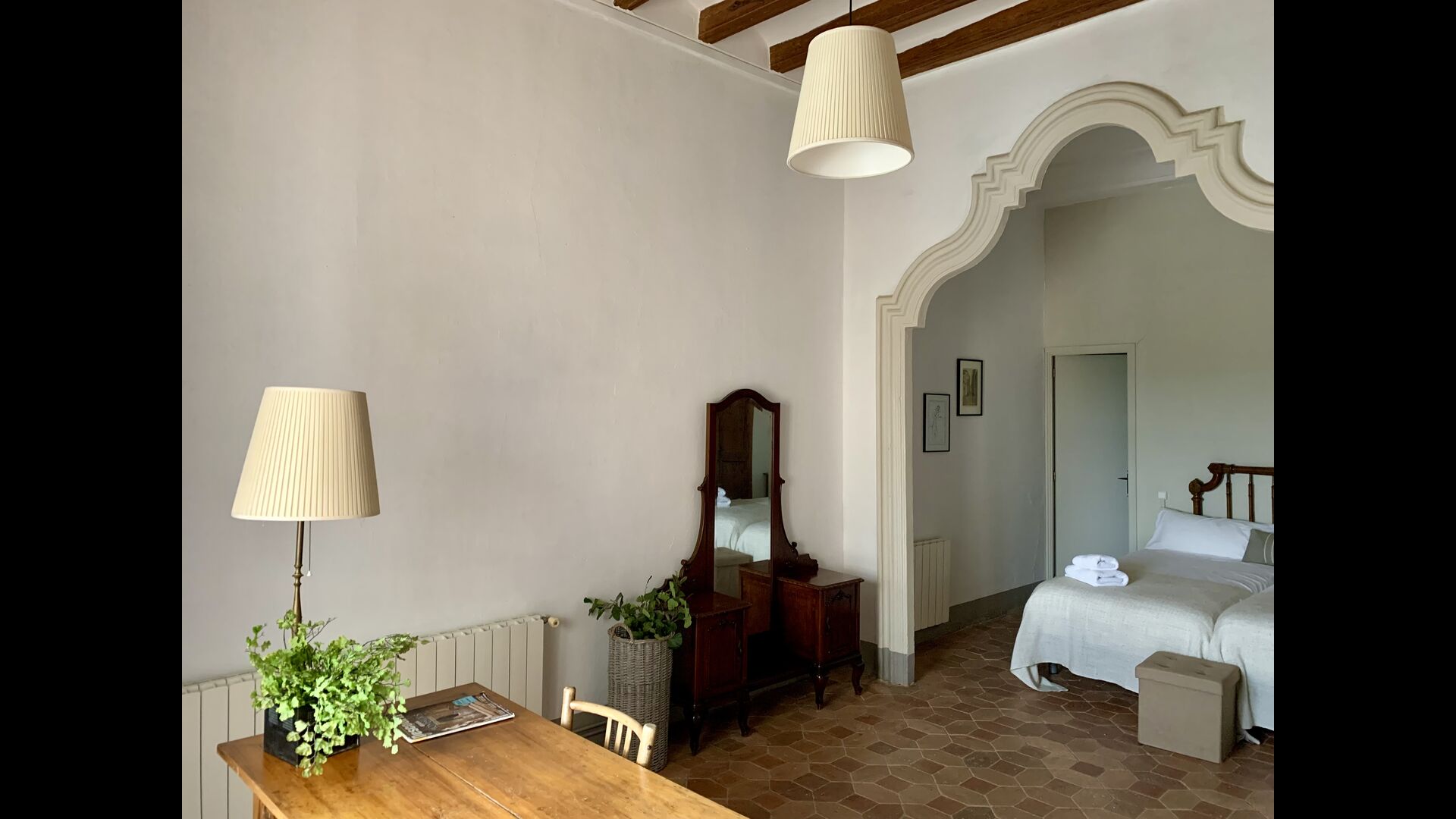 Un alojamiento único en un sitio y entorno singulares.- Disfrutar de un edificio construido en el siglo XVIII, de agradables proporciones y simetría, de habitaciones amplias con alcoba, con balcones y ventanas de grandes dimensiones y visión panorámica, así como de techos envigados y techados de baldosa que forman los típicos pavimentos de Santes Creus.