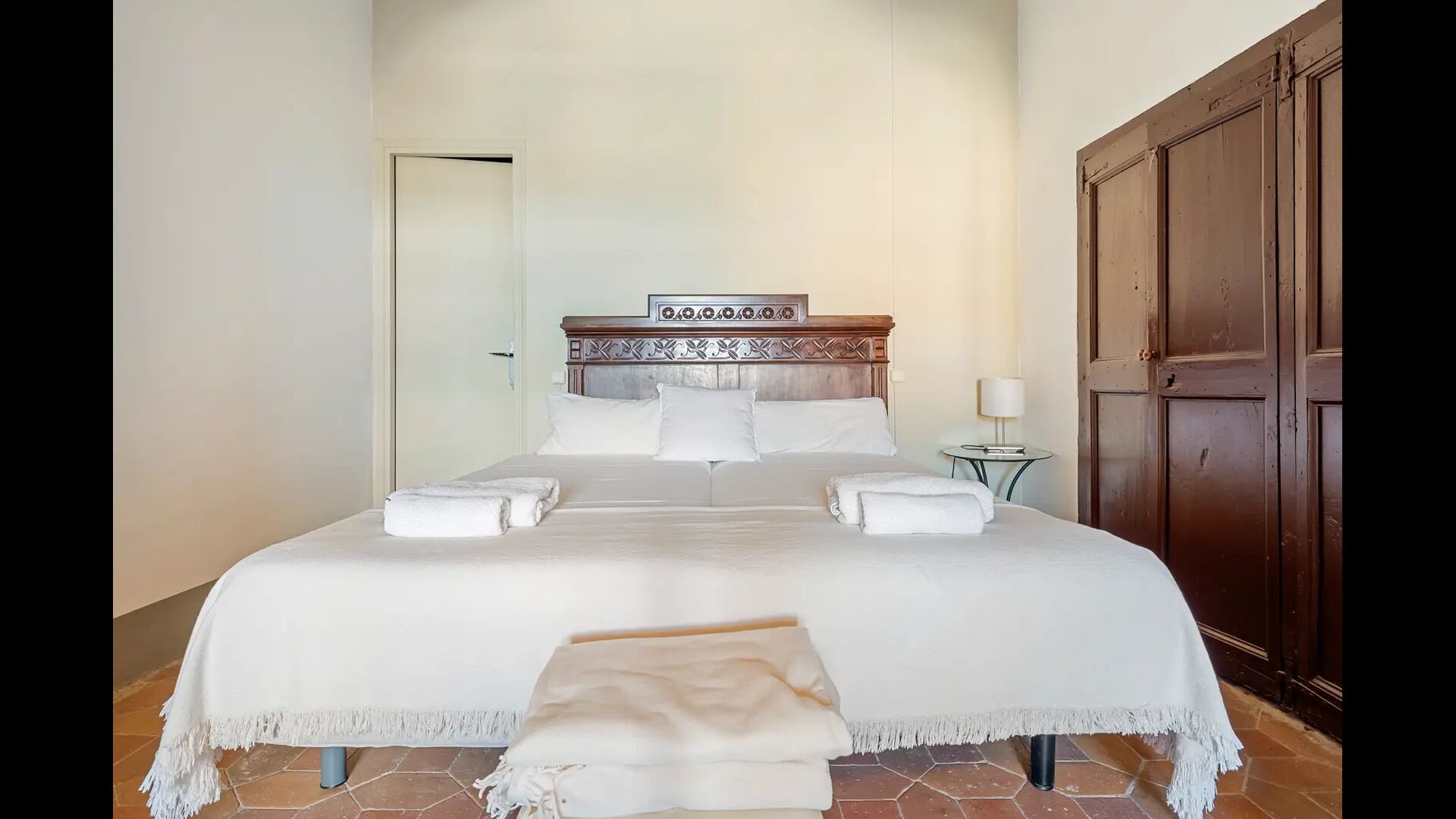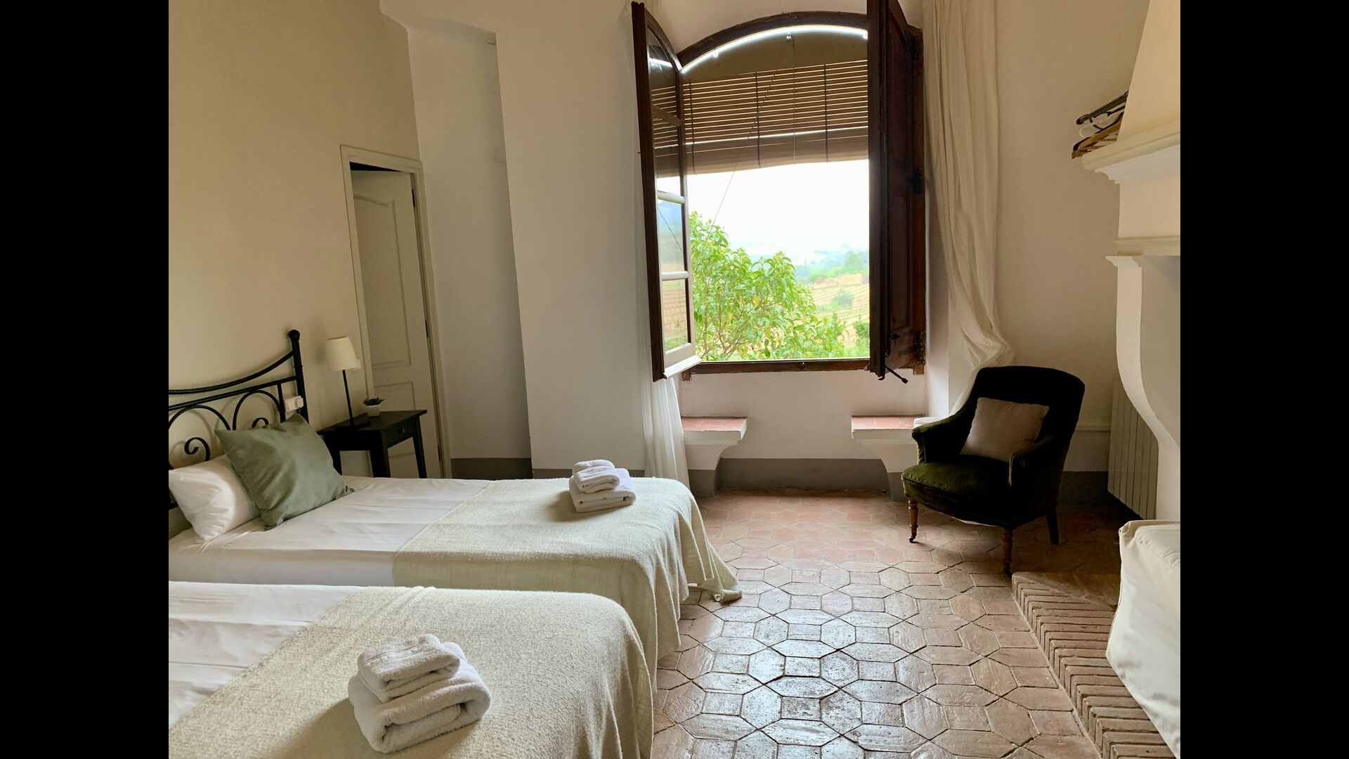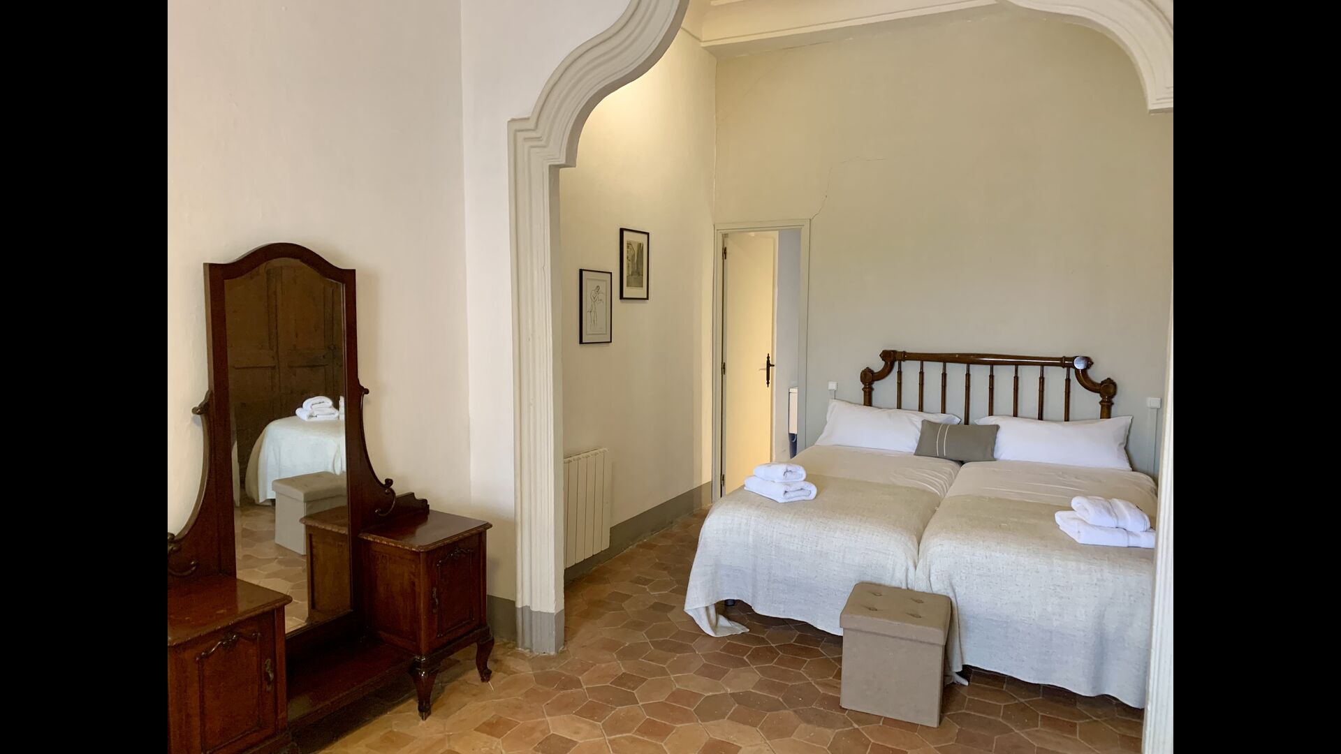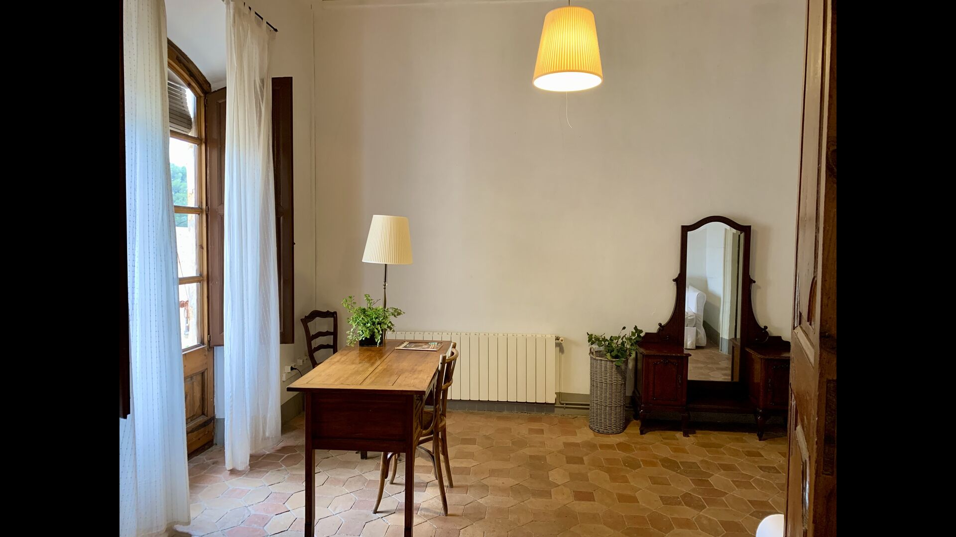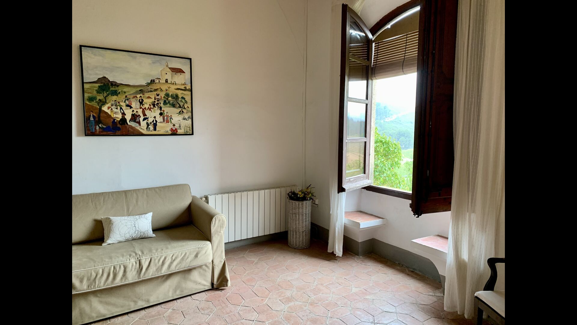 Un alojamiento único en un sitio y entorno singulares.- Disfrutar de un edificio construido en el siglo XVIII, de agradables proporciones y simetría, de habitaciones amplias con alcoba, con balcones y ventanas de grandes dimensiones y visión panorámica, así como de techos envigados y techados de baldosa que forman los típicos pavimentos de Santes Creus.
