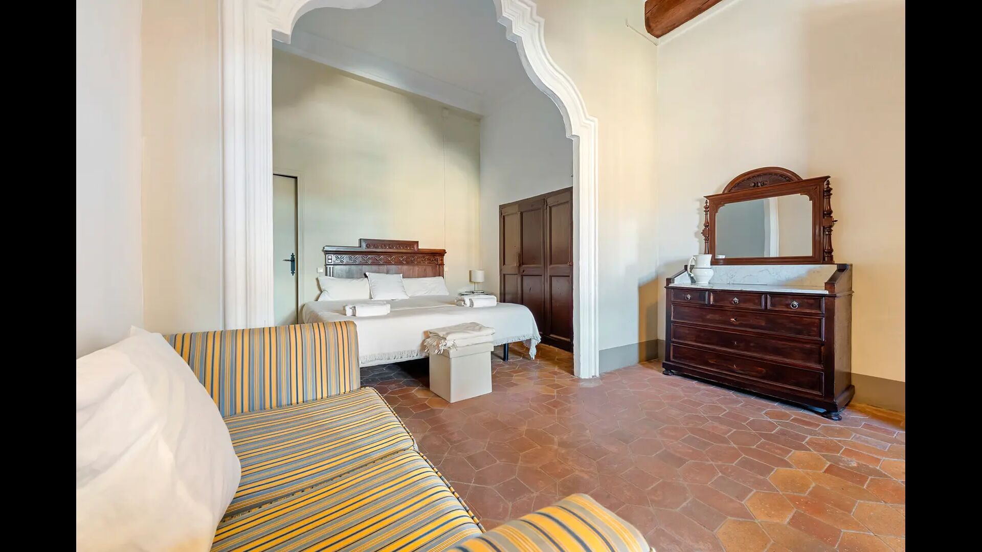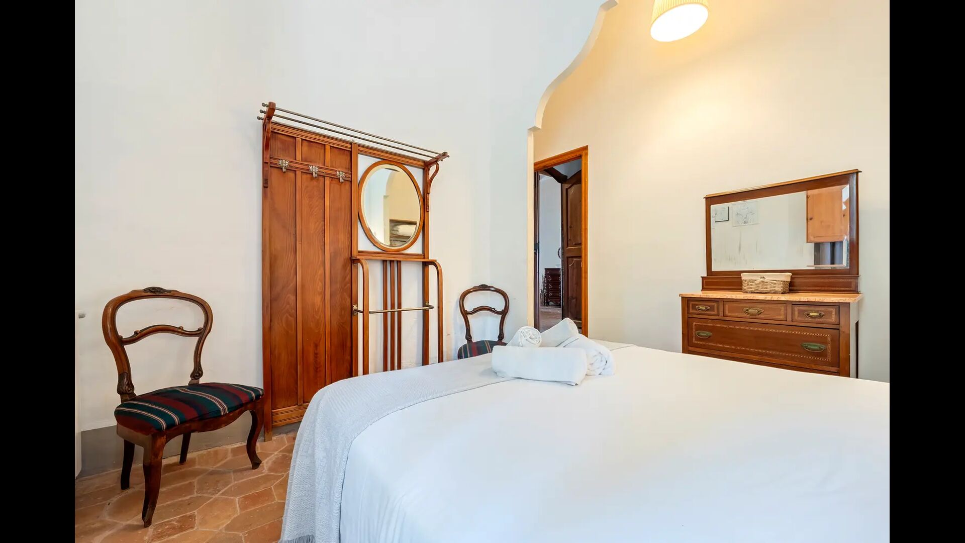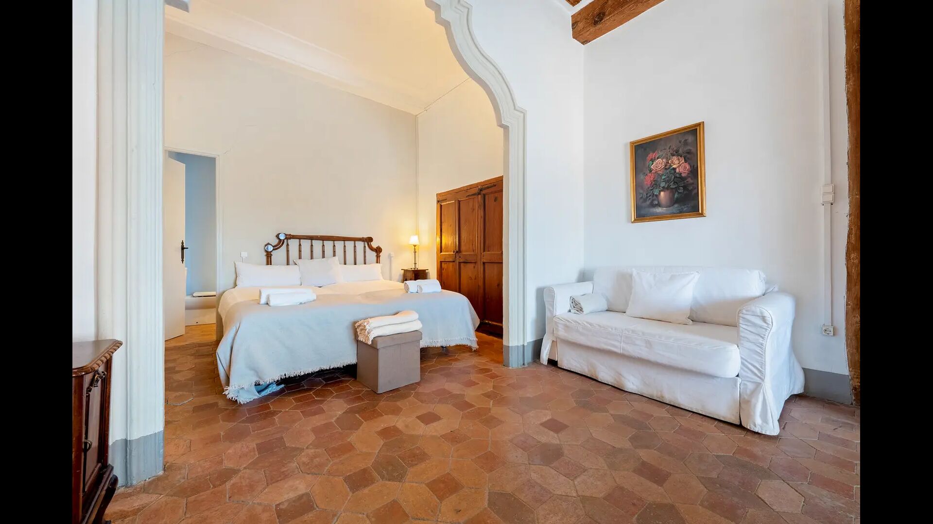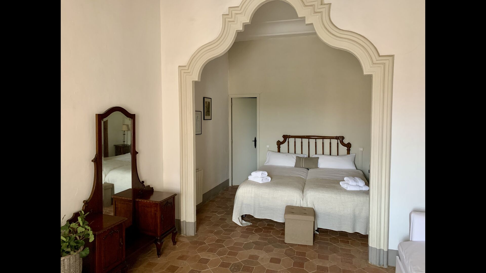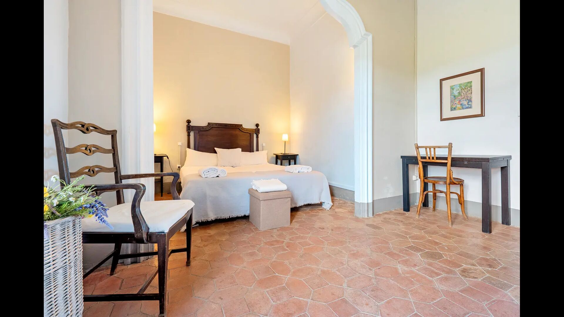 Un alojamiento único en un sitio y entorno singulares.- Disfrutar de un edificio construido en el siglo XVIII, de agradables proporciones y simetría, de habitaciones amplias con alcoba, con balcones y ventanas de grandes dimensiones y visión panorámica, así como de techos envigados y techados de baldosa que forman los típicos pavimentos de Santes Creus.
